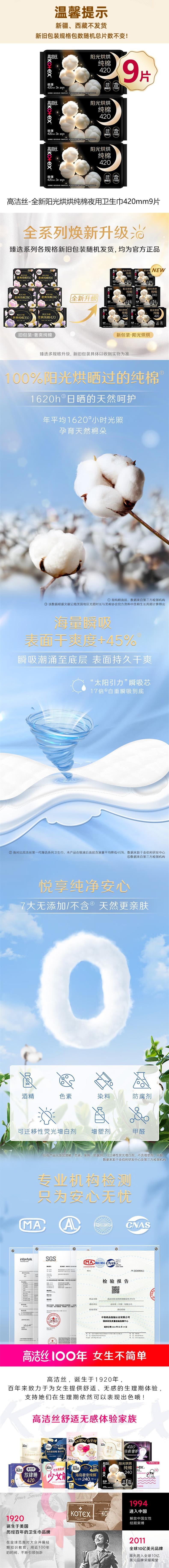 高洁丝 全新阳光烘烘纯棉夜用卫生巾420mm3片*3包 JGS0HY3P3B