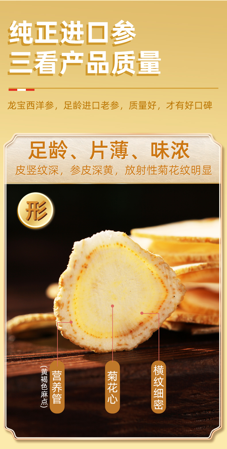 【粉丝特惠】进口西洋参切片50g 大片主根 手工切片