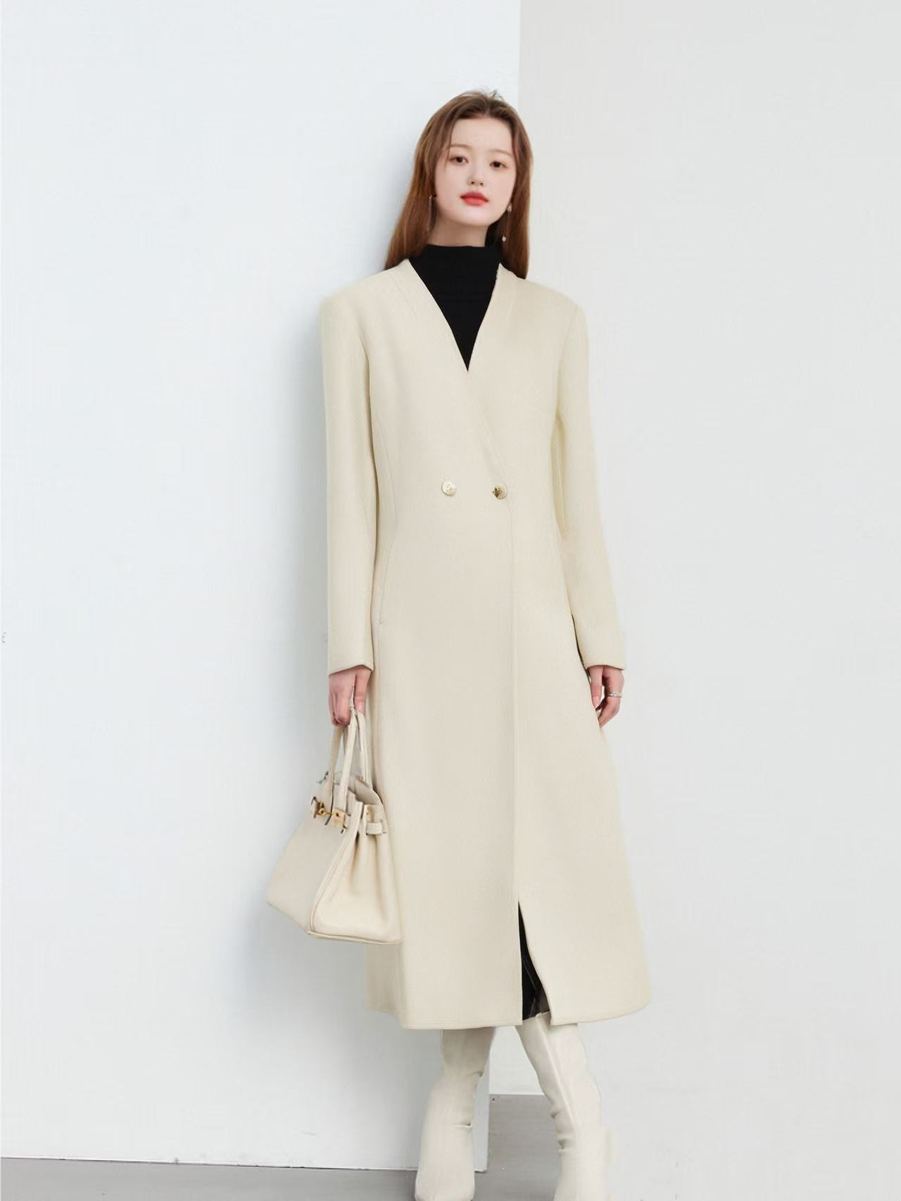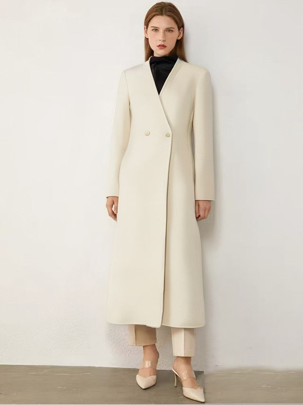 【高端系列】(微脏)手工定制001款100%羊毛长款修身双面尼大衣-喜出