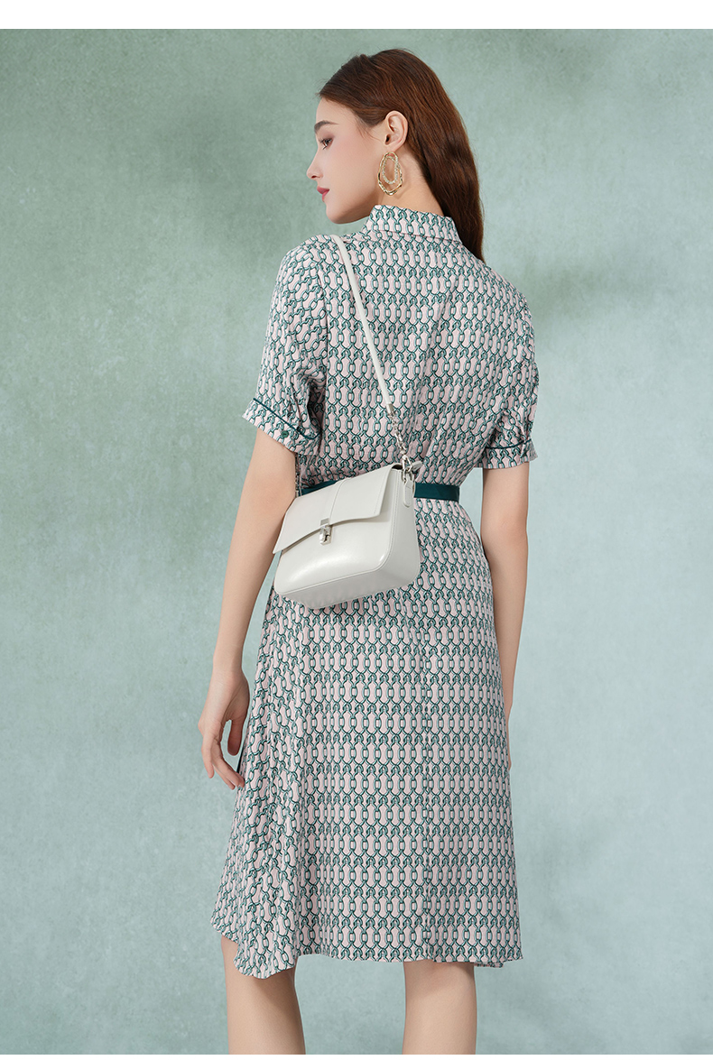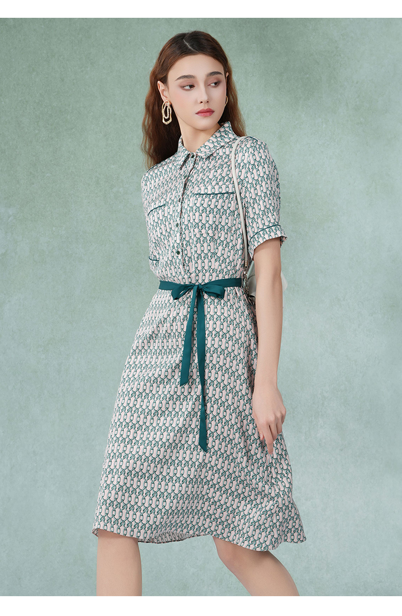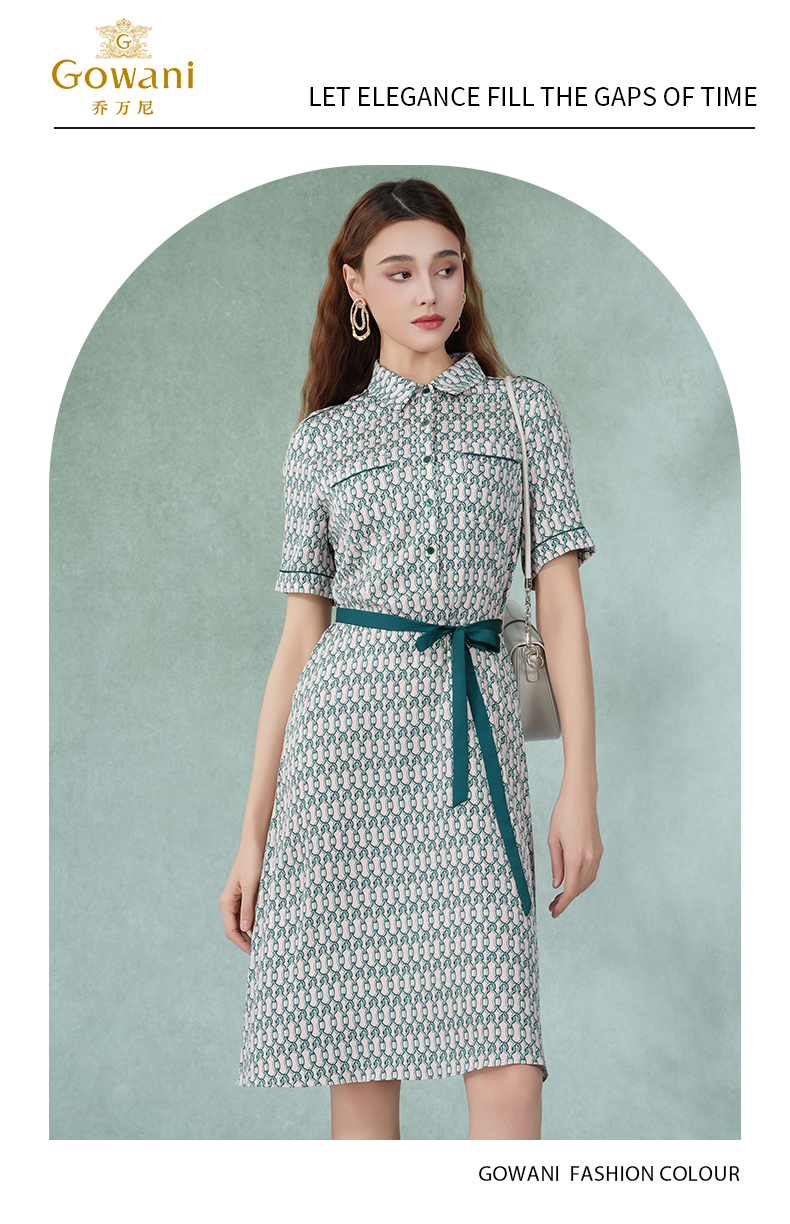乔万尼真丝收腰长款连衣裙夏法式绿色长裙EI2E871