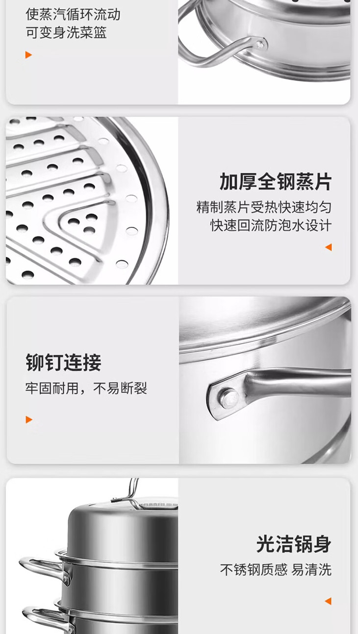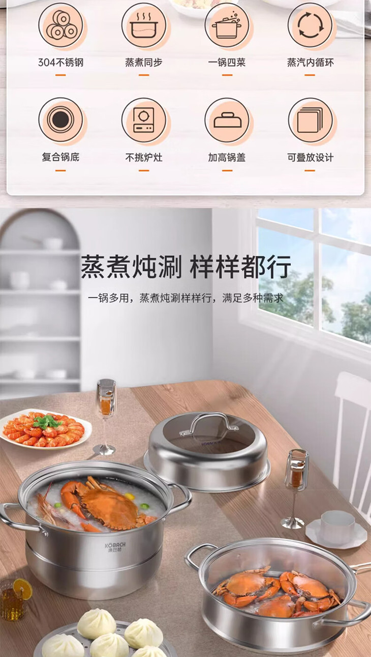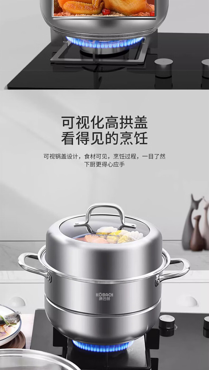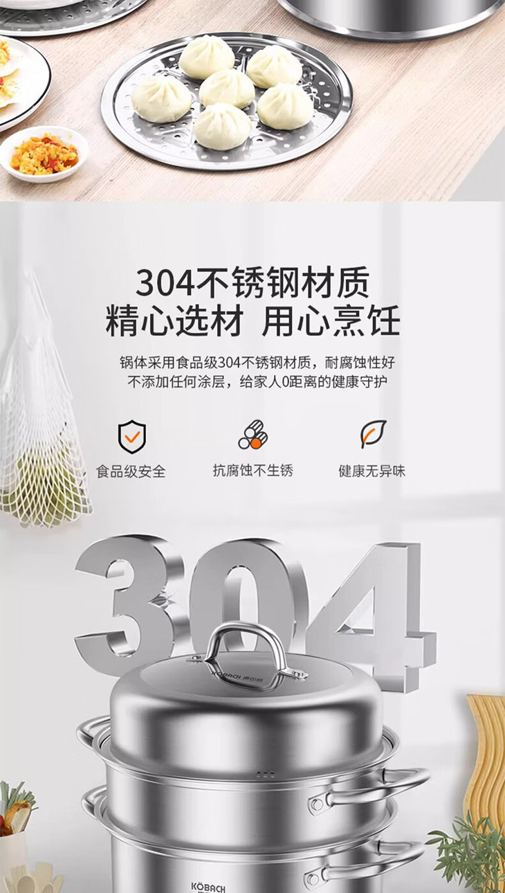康巴赫-304不锈钢加厚三层蒸锅32cm大容量蒸包子蒸鱼家用锅电磁炉燃气KBH32TB1