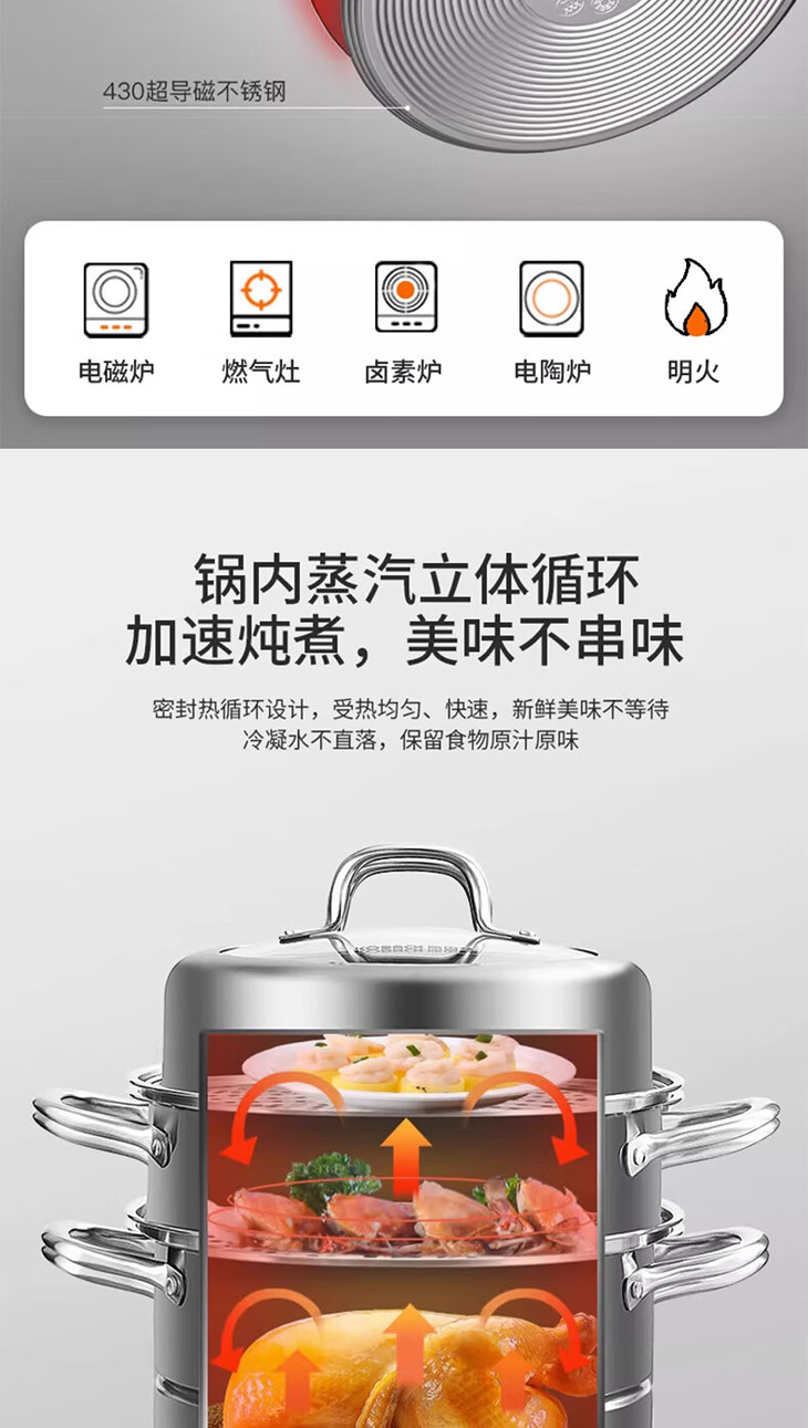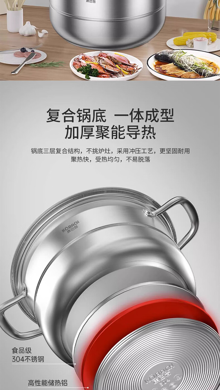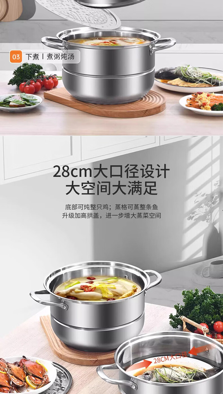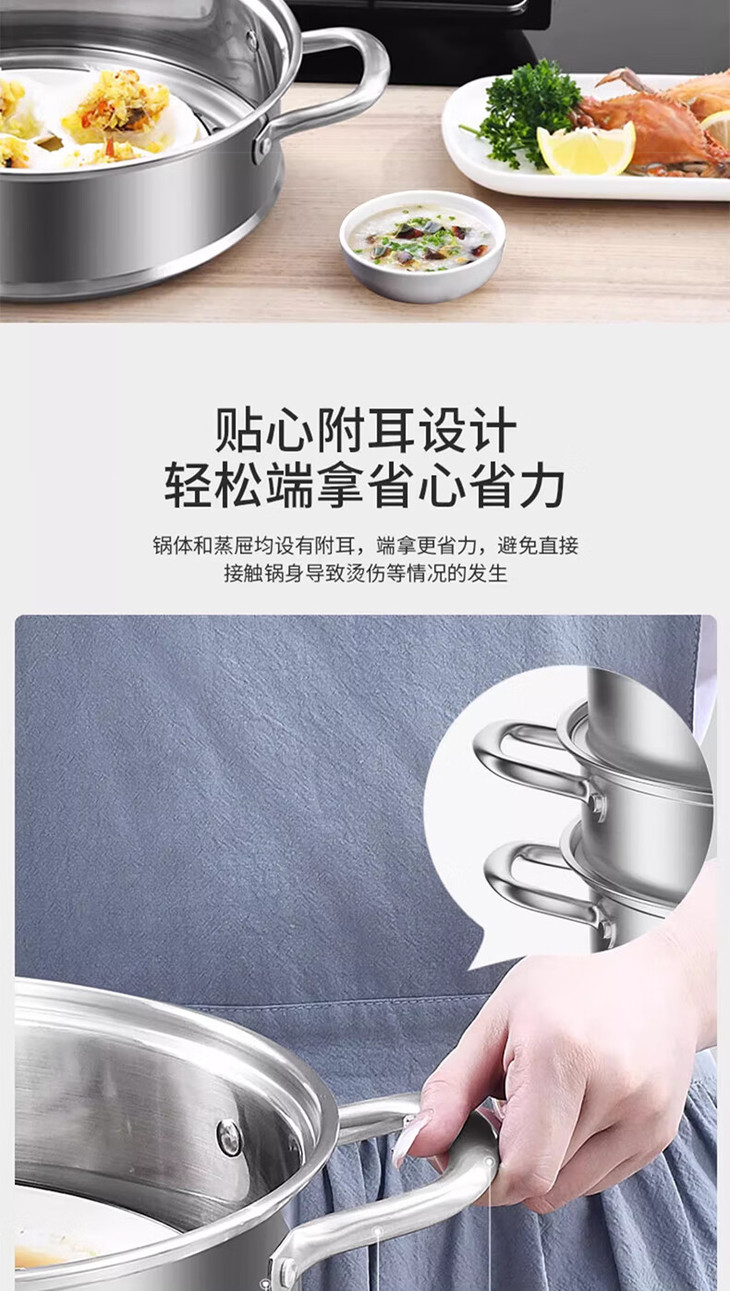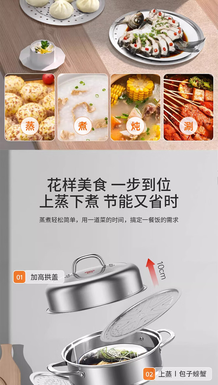 康巴赫-304不锈钢加厚三层蒸锅32cm大容量蒸包子蒸鱼家用锅电磁炉燃气KBH32TB1