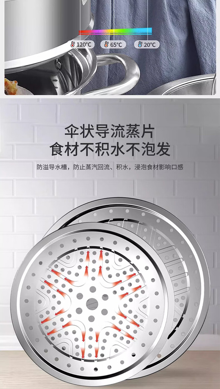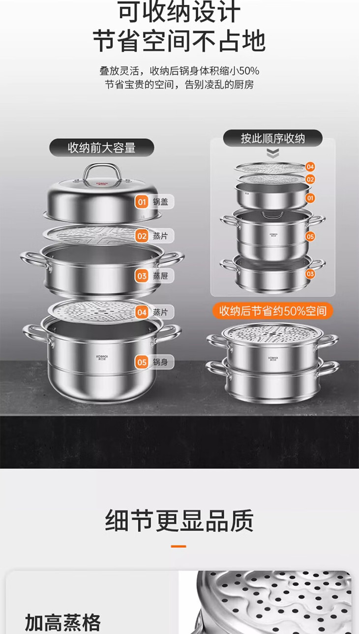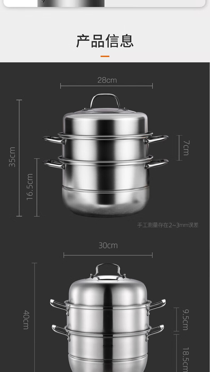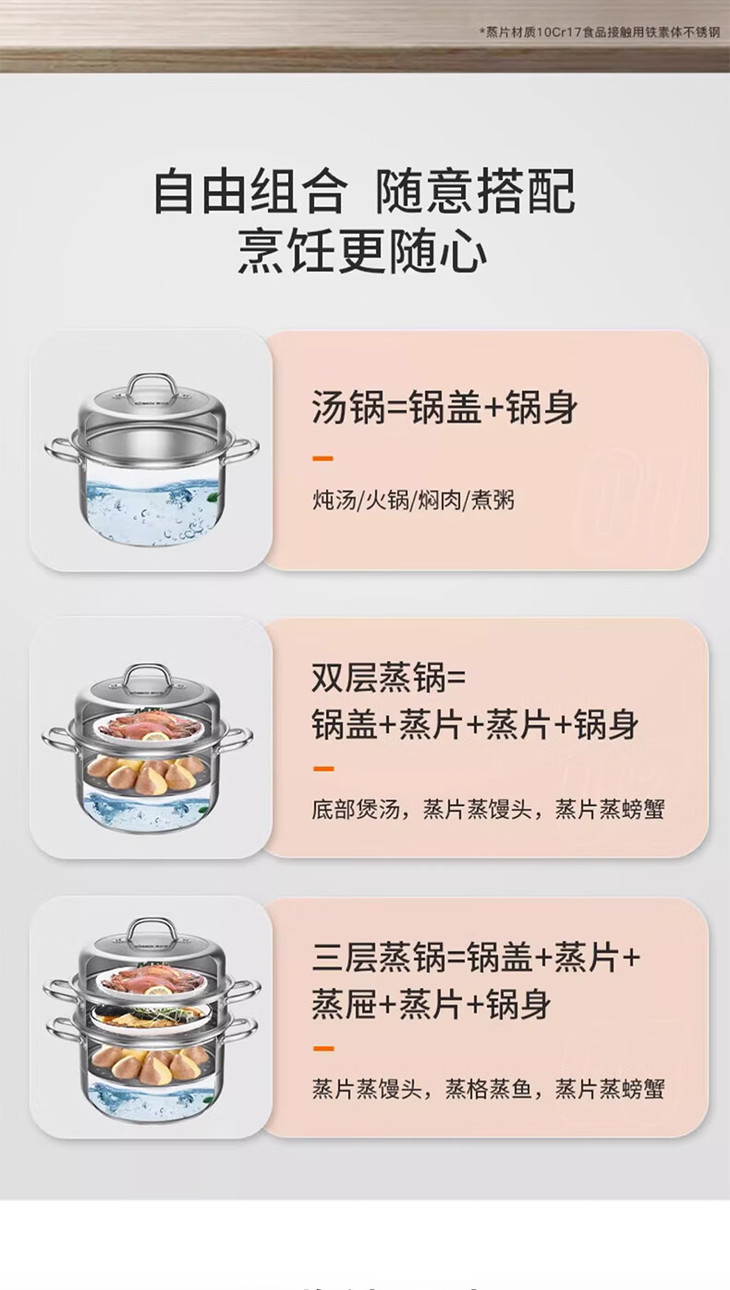 康巴赫-304不锈钢加厚三层蒸锅32cm大容量蒸包子蒸鱼家用锅电磁炉燃气KBH32TB1