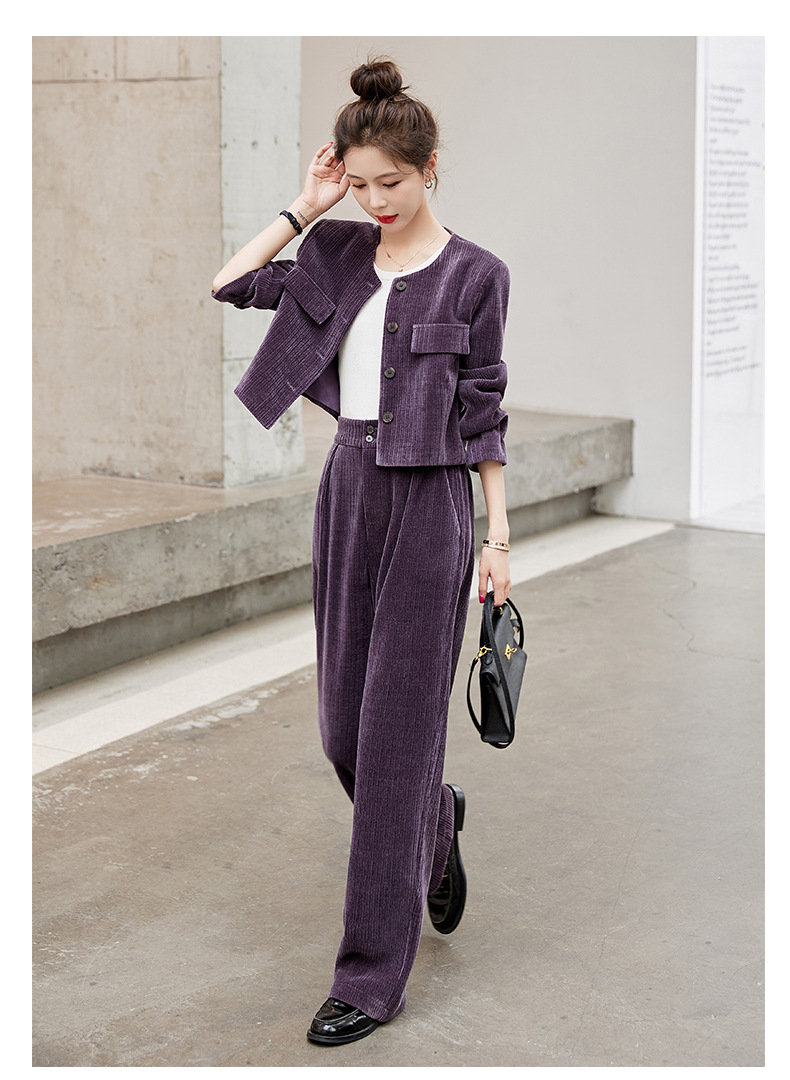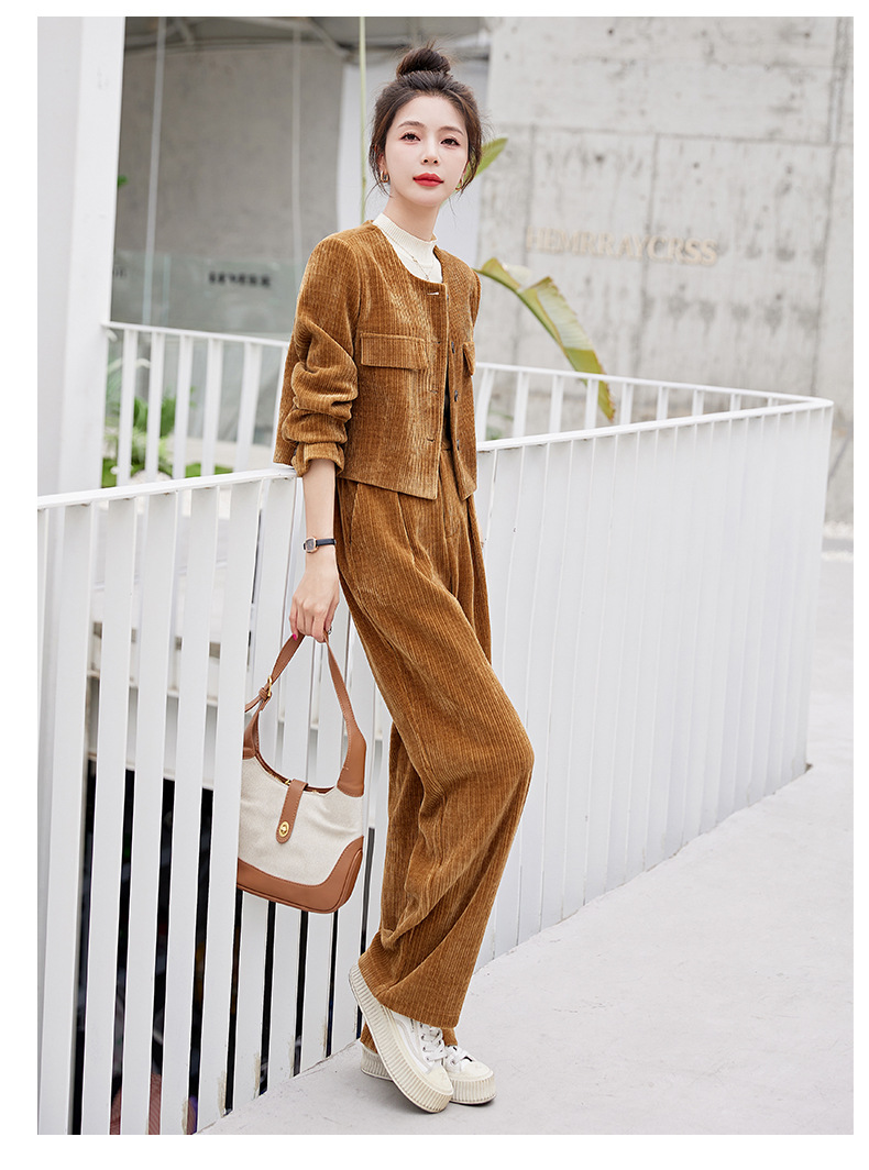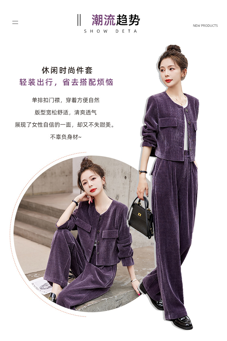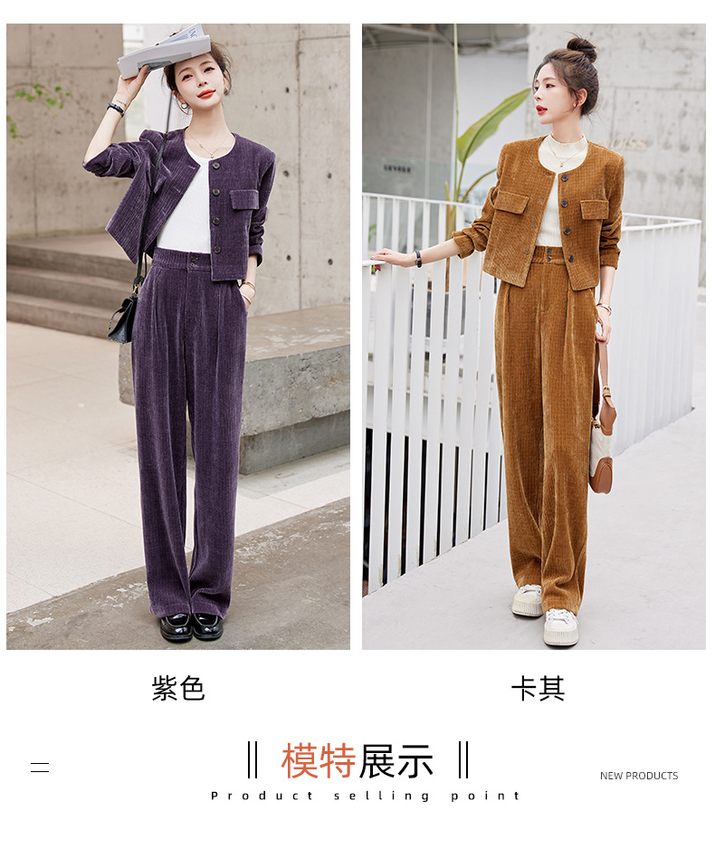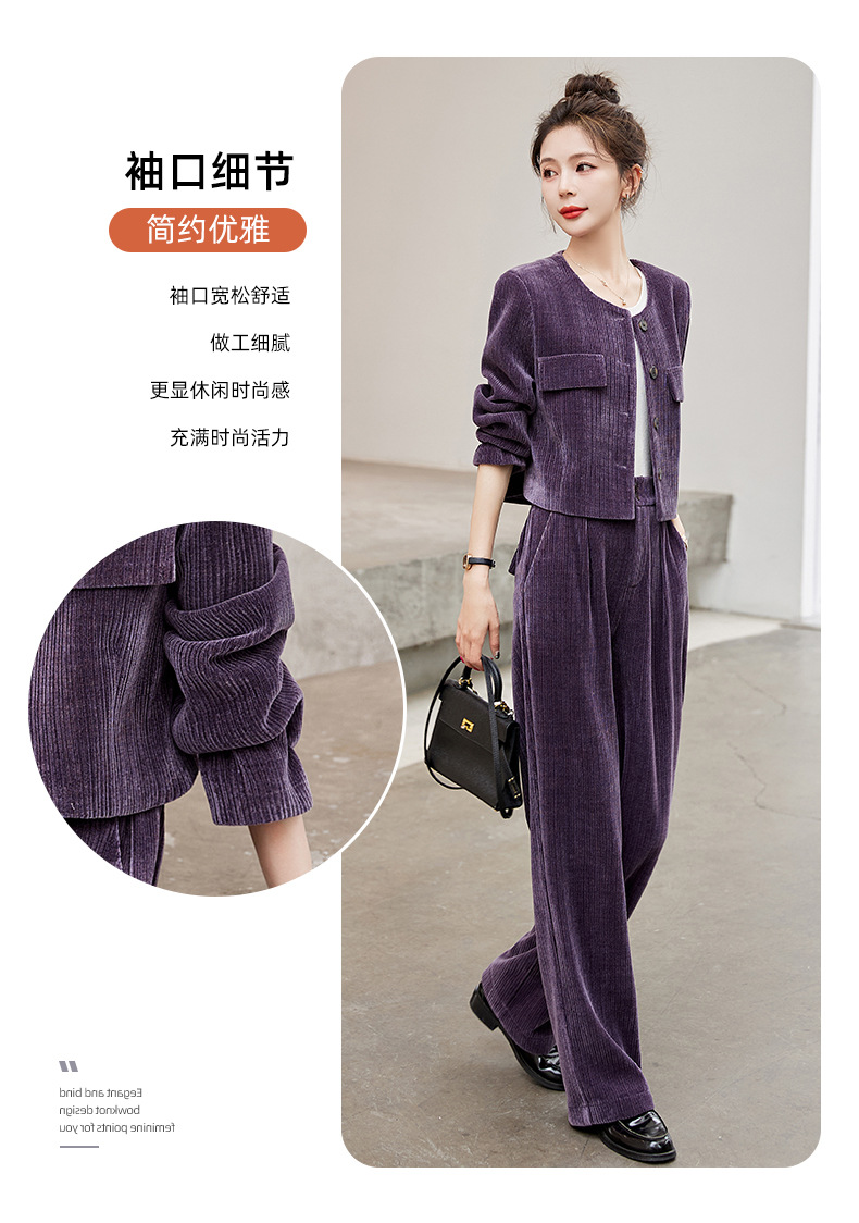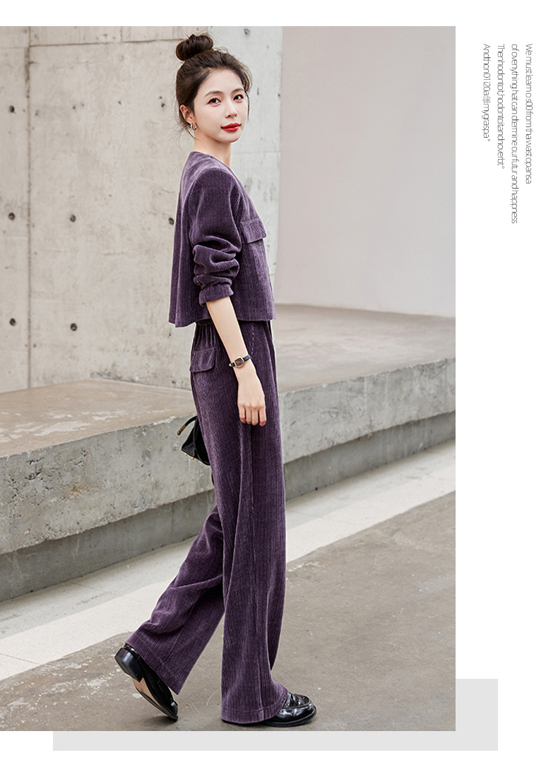 名媛气质时尚减龄显瘦,雪尼尔裤装两件套HR-GJC2312