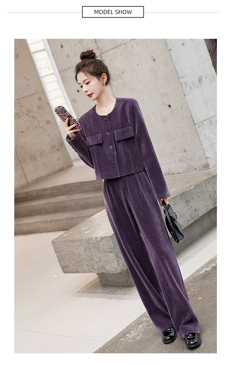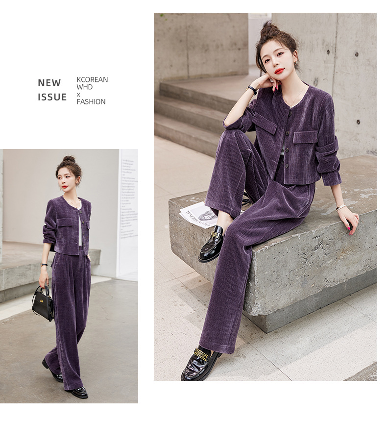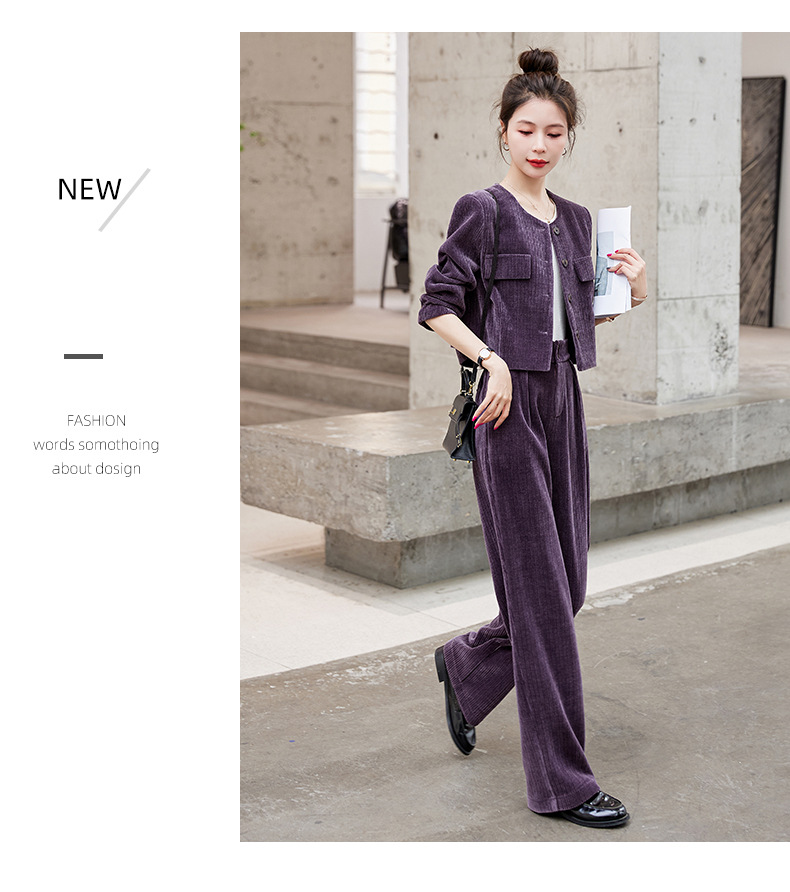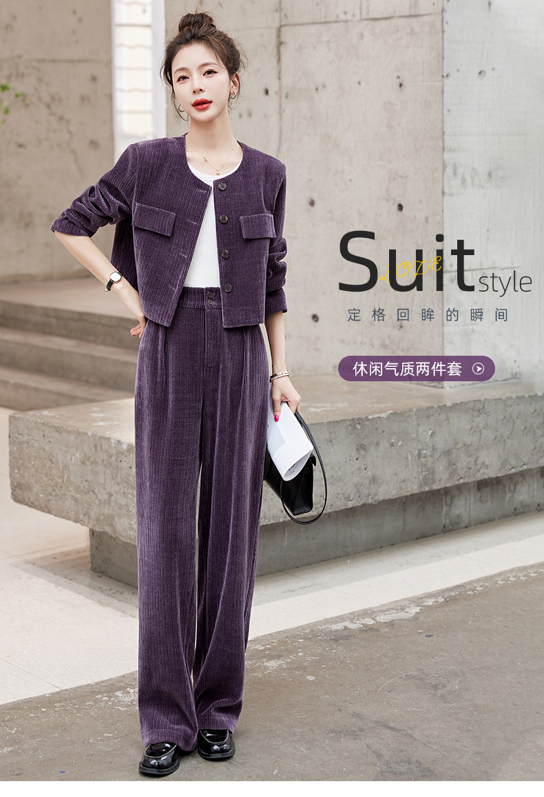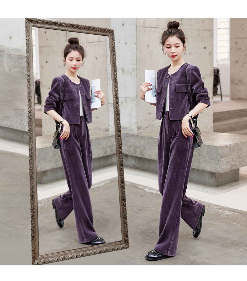 名媛气质时尚减龄显瘦,雪尼尔裤装两件套HR-GJC2312
