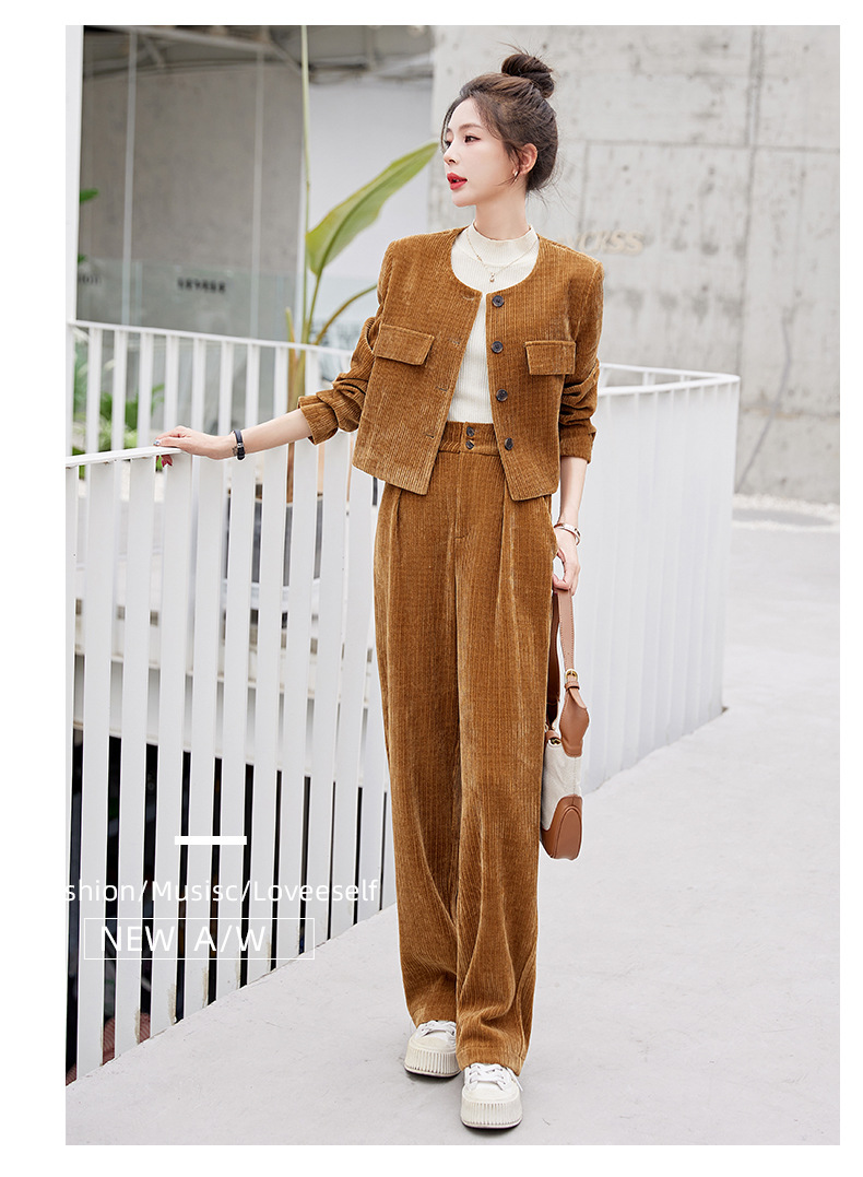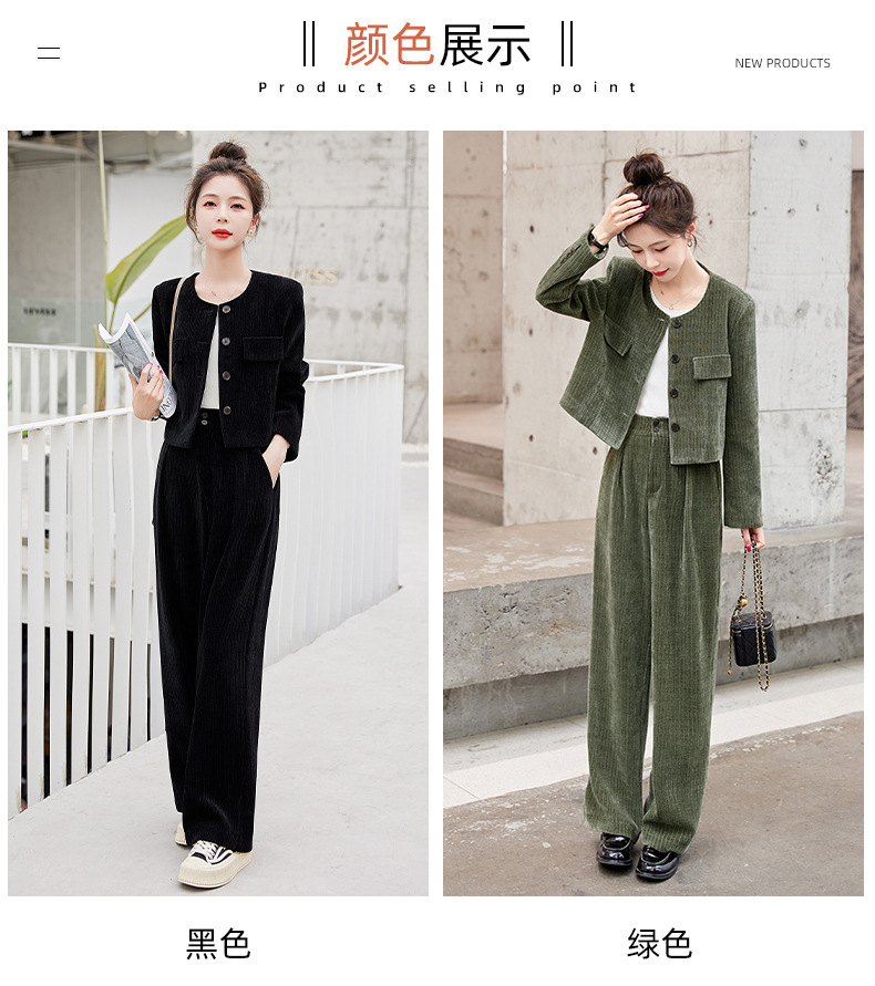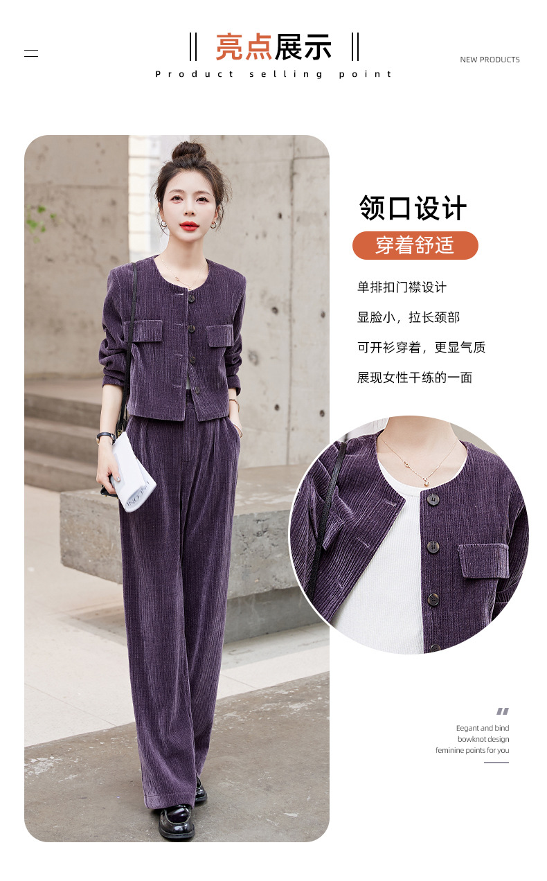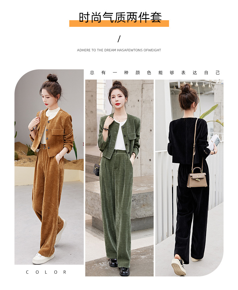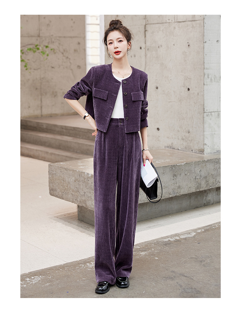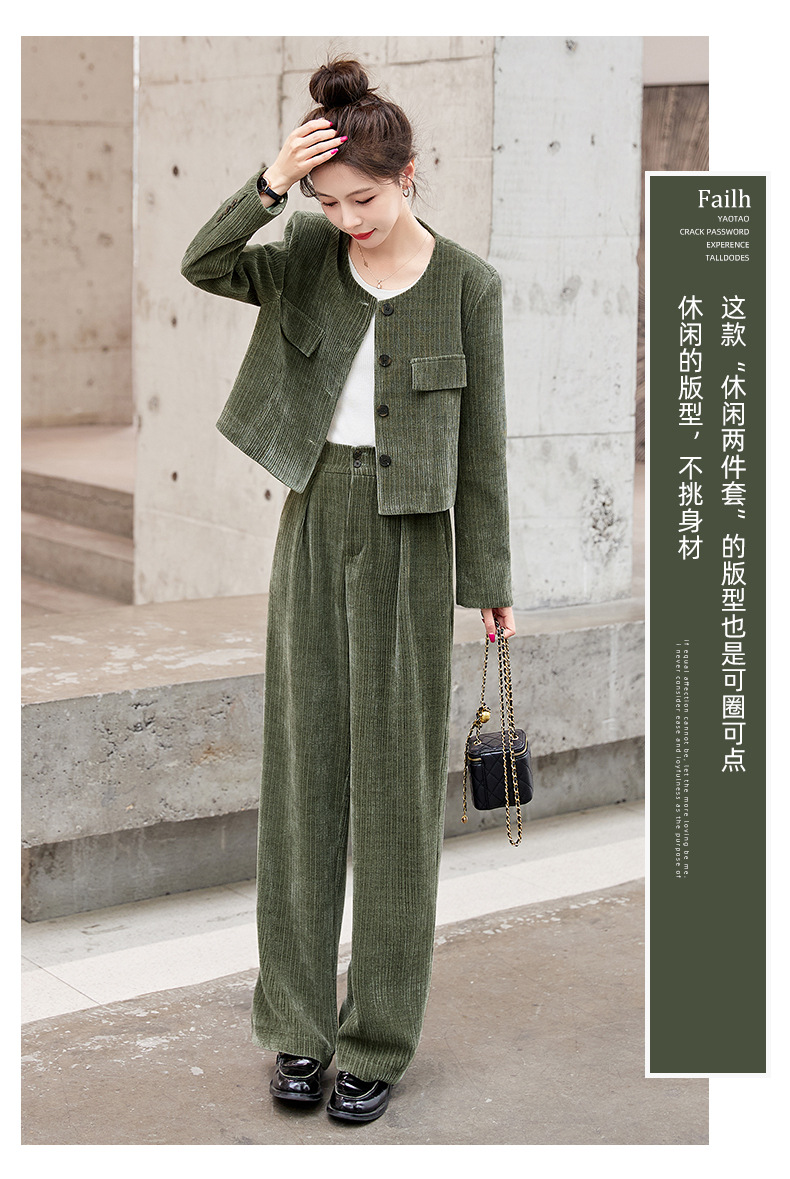 名媛气质时尚减龄显瘦,雪尼尔裤装两件套HR-GJC2312