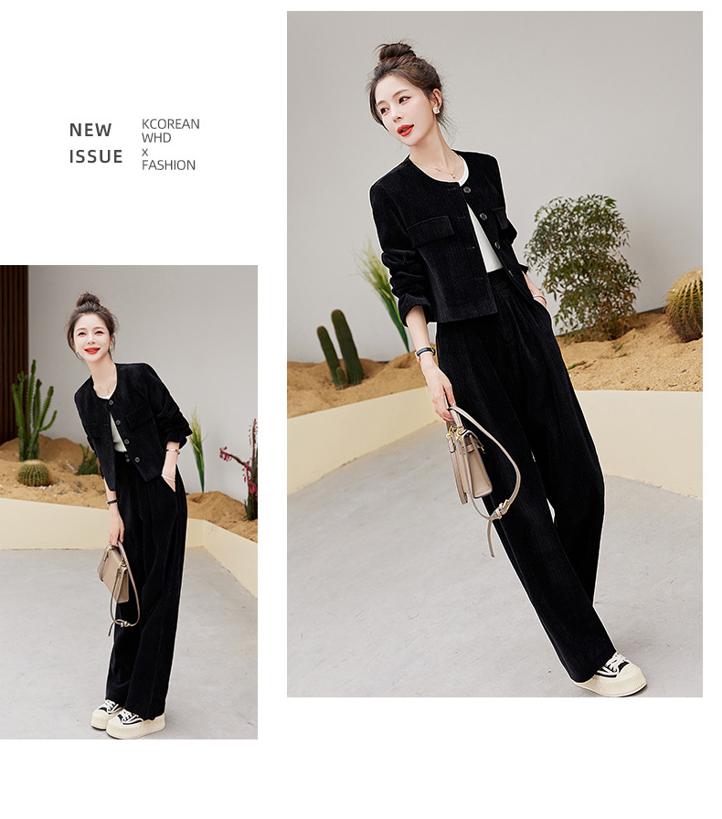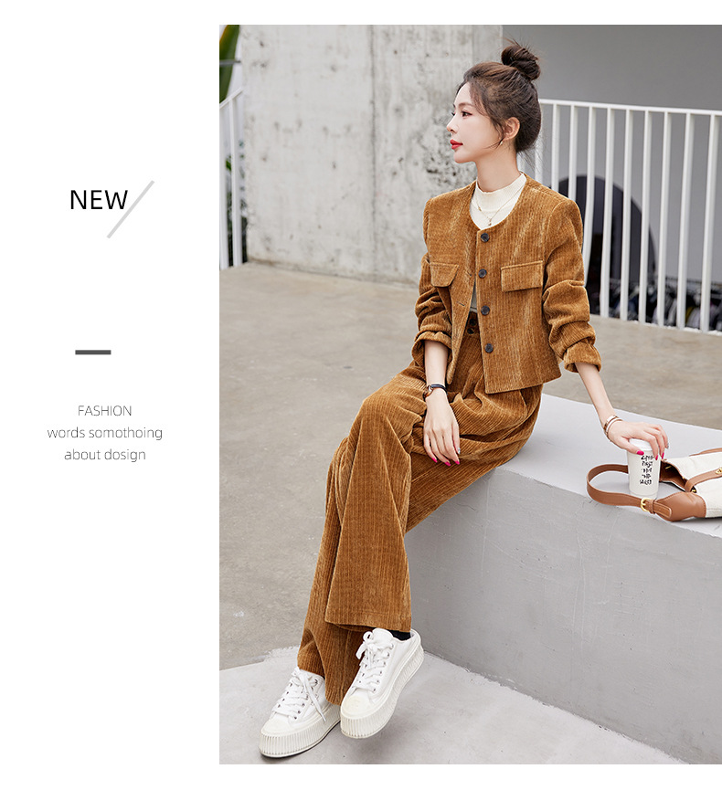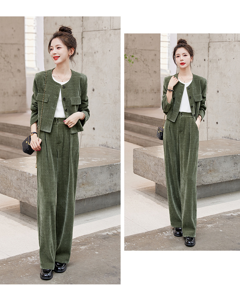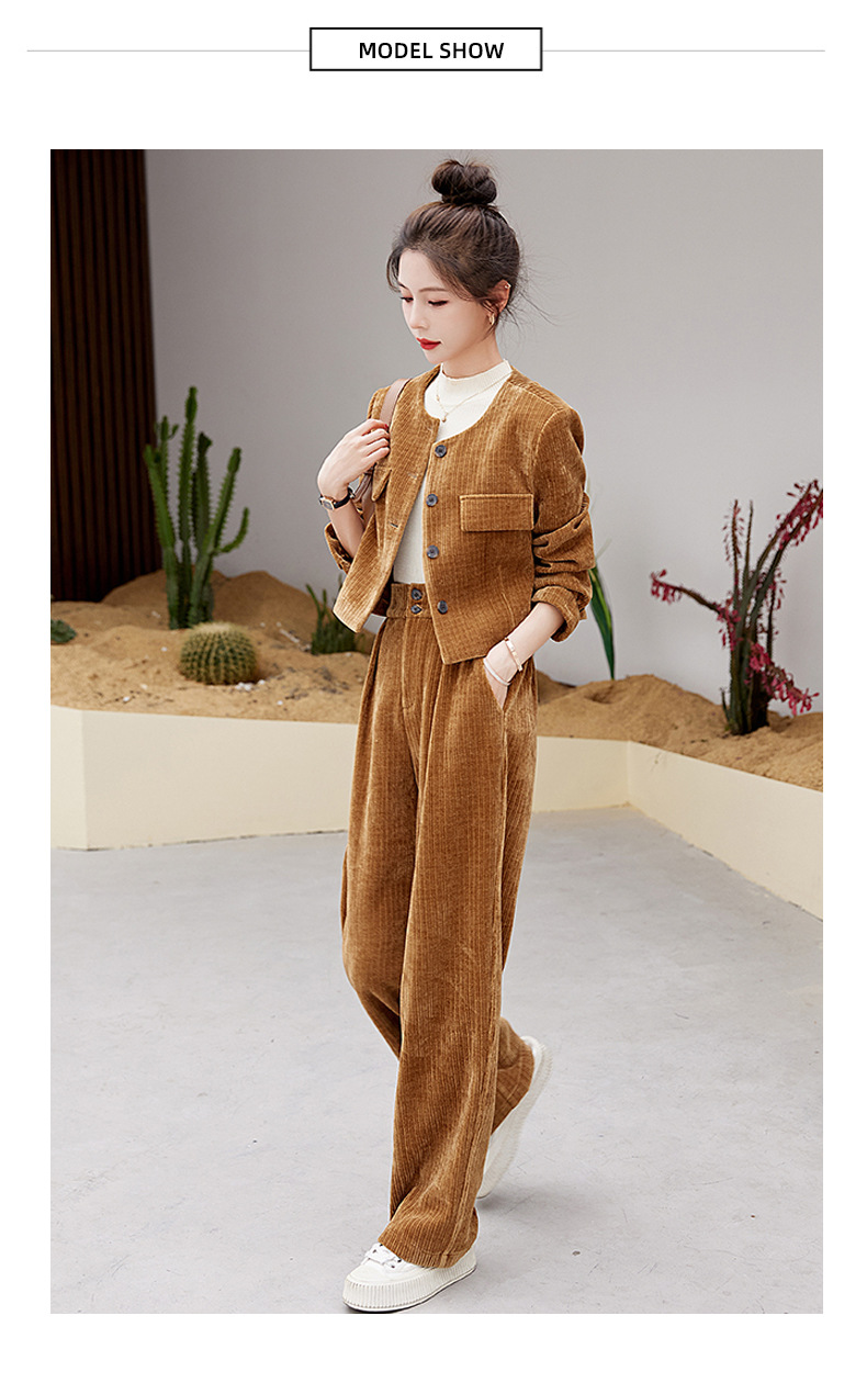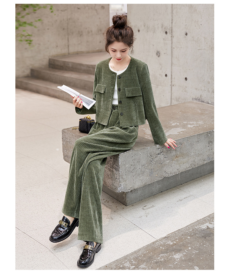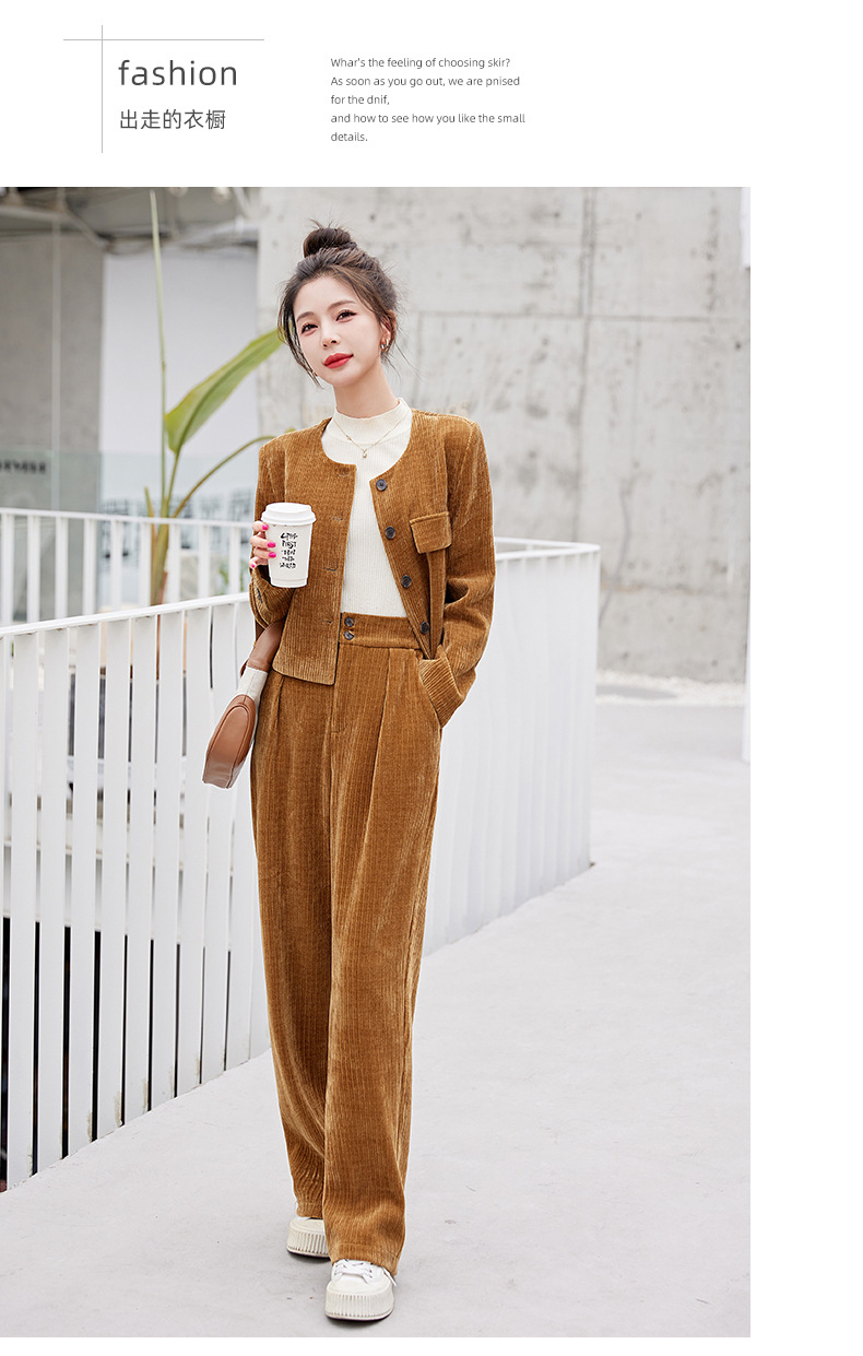 名媛气质时尚减龄显瘦,雪尼尔裤装两件套HR-GJC2312