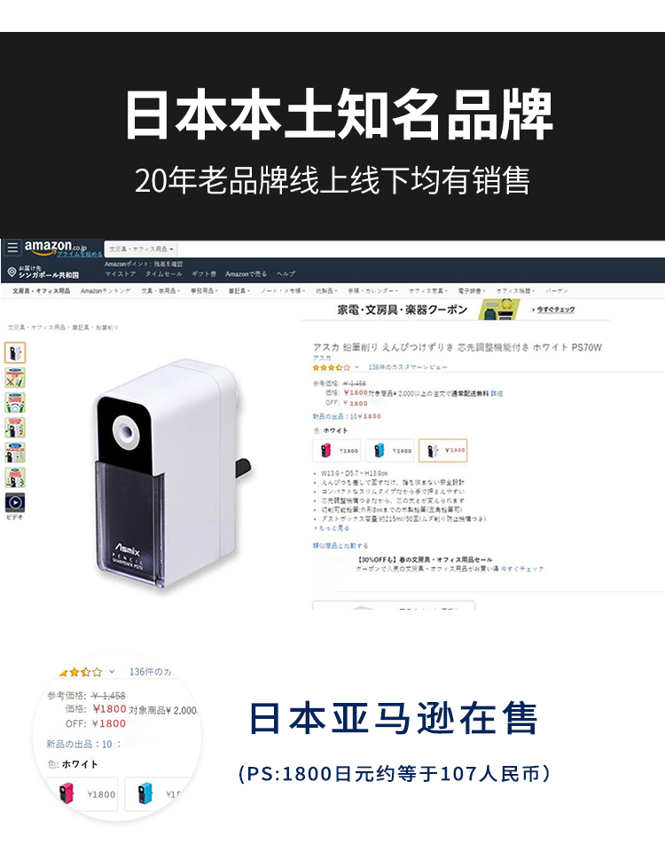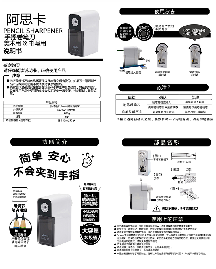 日本Asmix阿思卡手摇卷笔刀速写素描美术生画画专用炭笔铅笔旋笔刀