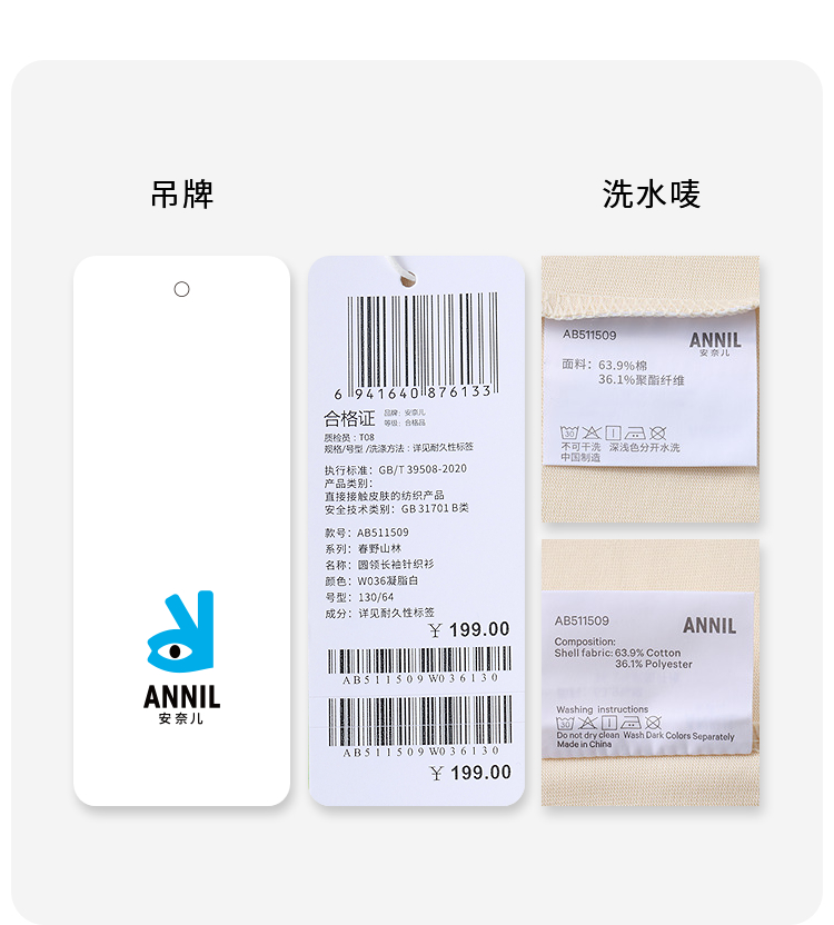 男童圆领长袖针织衫春季新款安奈儿童装实体店同款AB511509