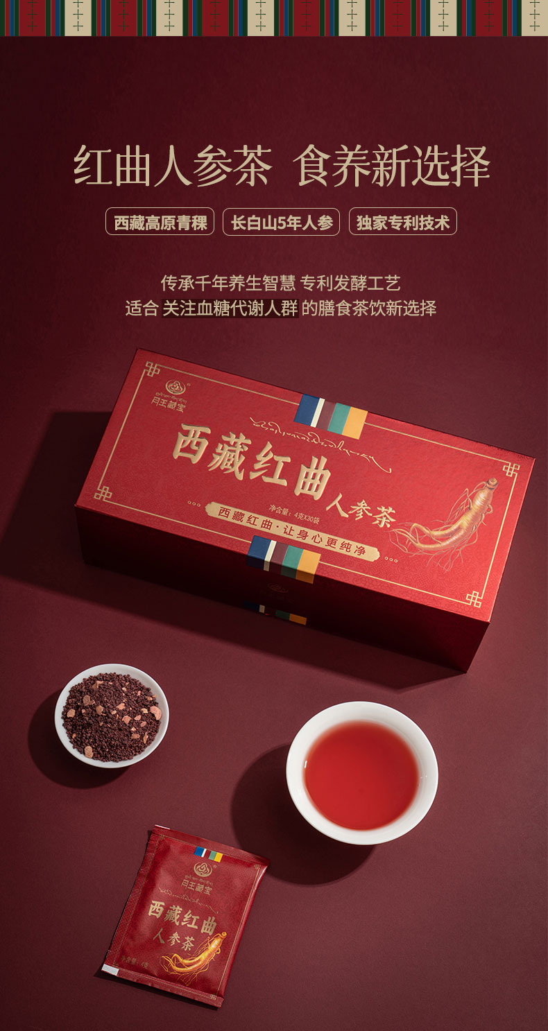 杞冠严选 | 月王藏宝西藏红曲茶人参茶4gx30袋/4gx8袋 长白山人参青稞红曲茶饮礼盒装 拍一发一