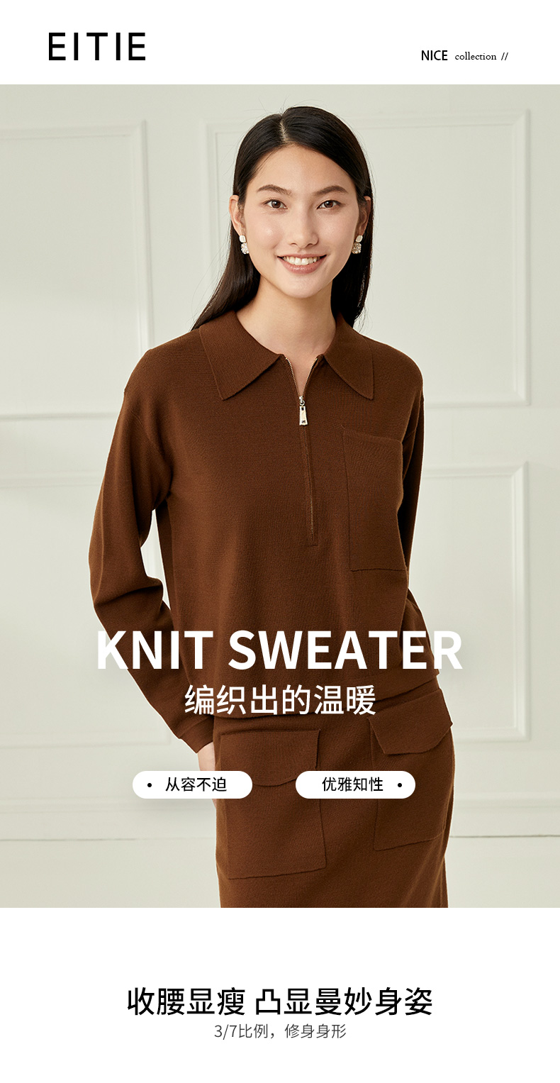 EITIE爱特爱秋冬新款时尚百搭显瘦修身保暖针织衫上衣女6701405