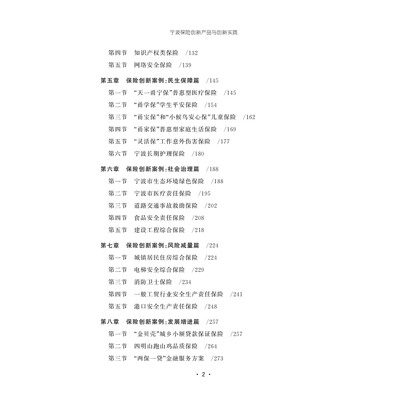 本书是第一本对宁波国家保险创新试验区成立十年来的改革发展探索做出全景式总结和展示的专业书籍,清晰展现了宁波市十年来保险领域中出现的理论创新、制度创新、实践创新不同阶段和发展脉络,对宁波保险创新经验的传播和借鉴具有积极意义。书稿分为三部分,共9章。1-2章介绍风险管理理论和保险创新理论;3-8章为宁波保险创新产品,分为财产损失、科技创新、民生保障、社会治理、风险减量、发展增进6章,从创新背景、创新难点、创新成效等几方面分析保险与相关产业风险管理需求相结合的创新实践;第9章回顾了宁波设立国家保险创新试验区后创新探索,总结了十年来的经验和思考,并对未来创新发展做出展望。