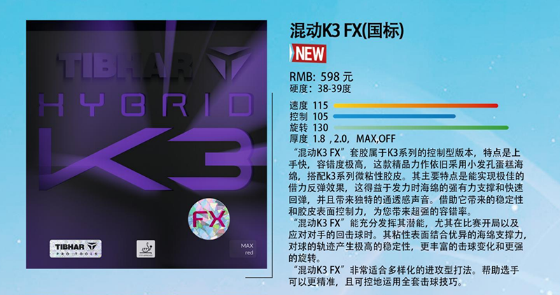 Tibhar挺拔混动K3/ K3PRO/K3FX 勒布伦兄弟同款专业粘性反胶套胶