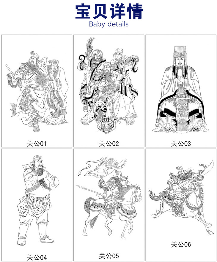 30幅关公白描合集 -无彩图-整套出售-DB36