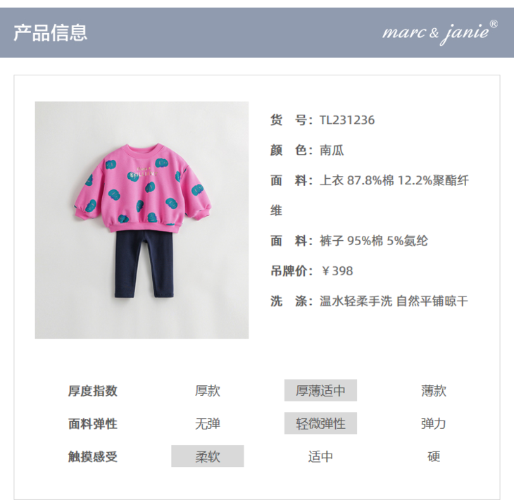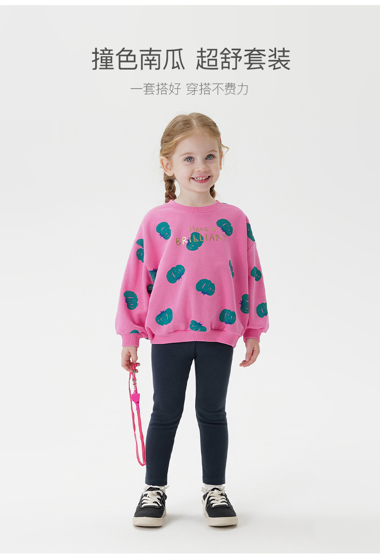 马克珍妮秋装新款 女童宽松卫衣弹力打底裤休闲套装231236