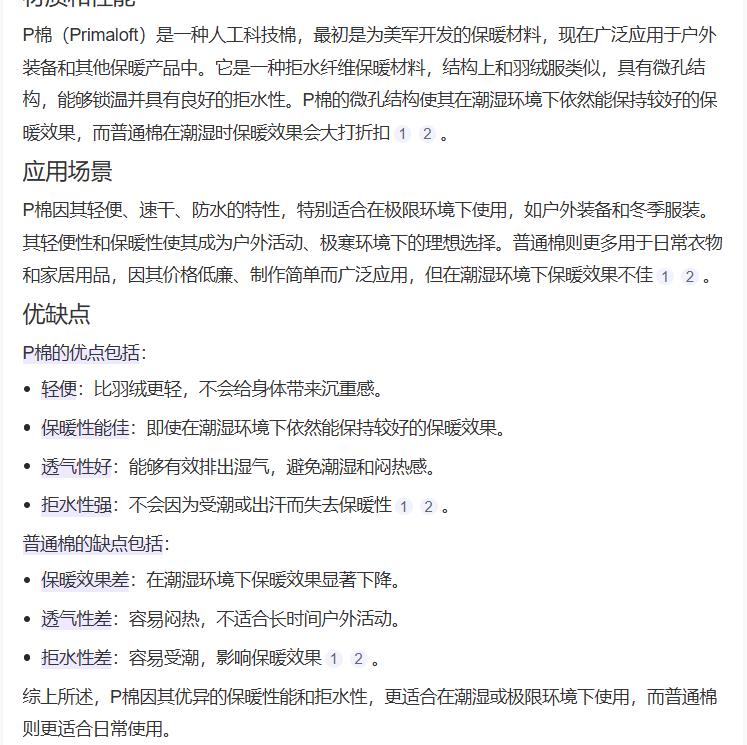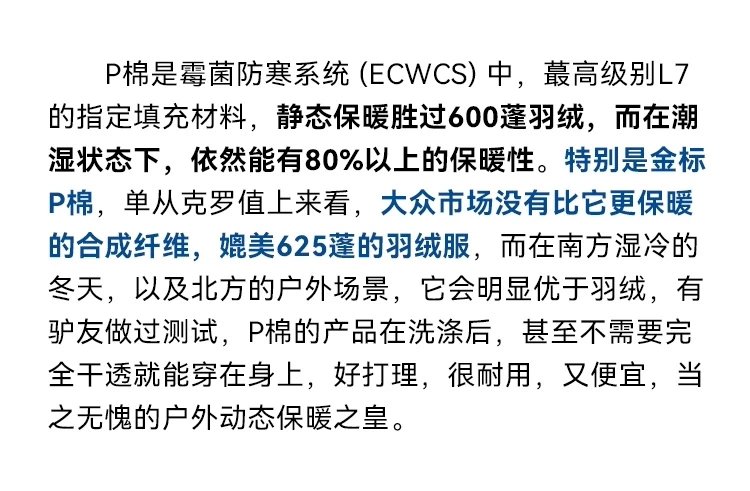 材料才是zui为重要的,P棉(Primaloft棉)作为新的保暖材料