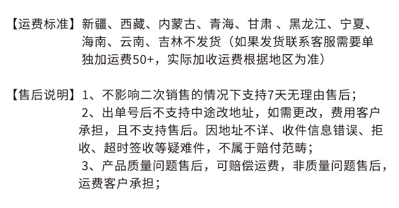 运费:新疆、西藏、内蒙古、青海、甘肃 、黑龙江、宁夏、海南、云南、吉林不发货