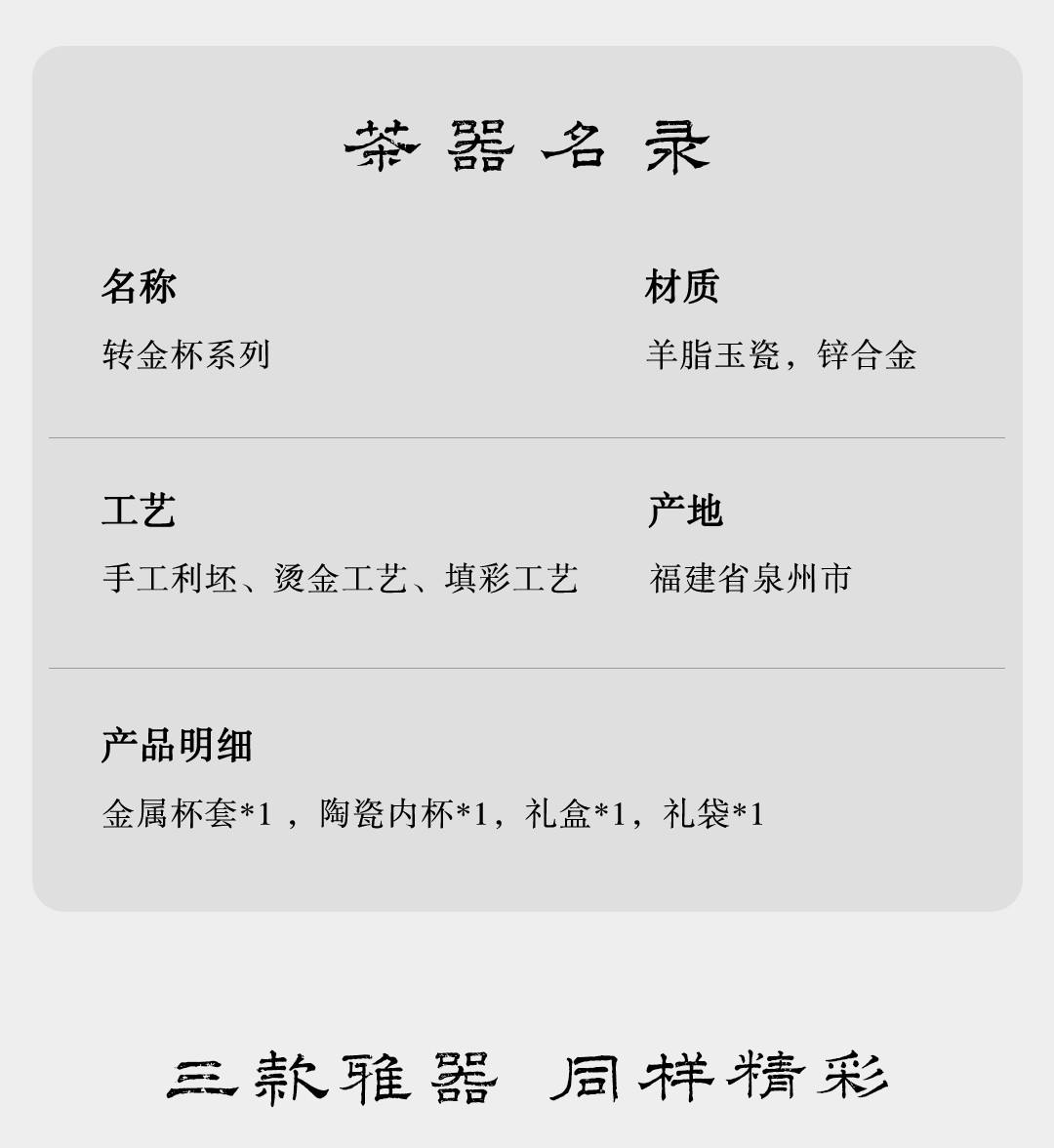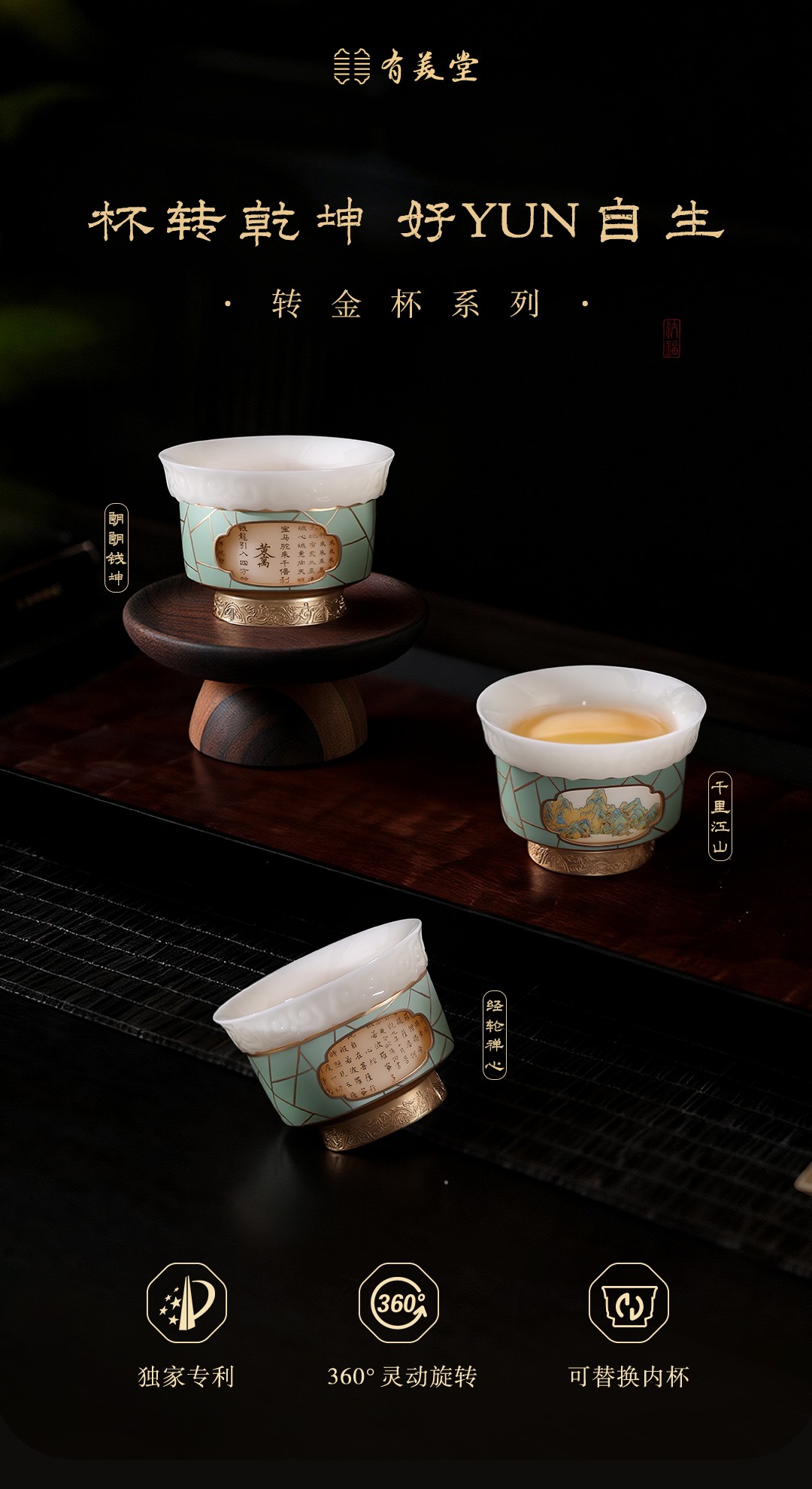 吴山有美·转金杯系列 非遗大师监制 认证专利 360°灵动旋转 可替换内杯