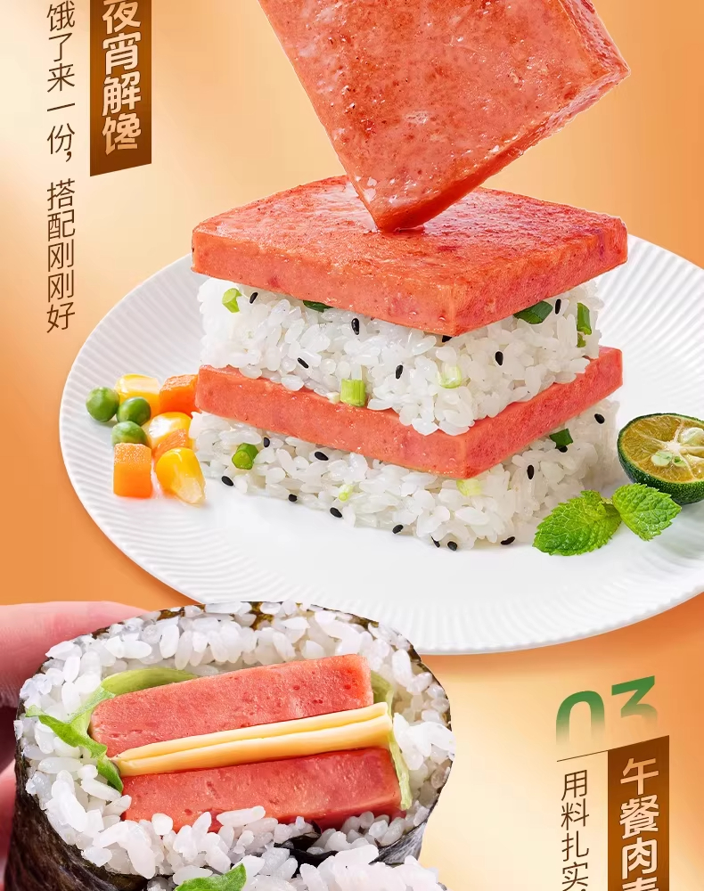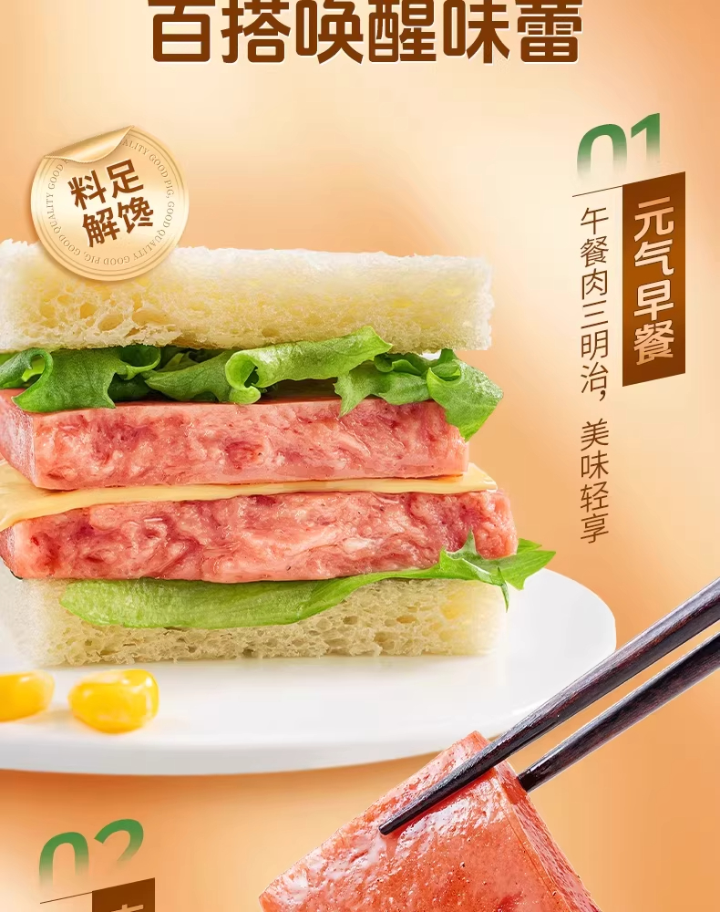 【组合】美珍香午餐肉400g单片包装+休闲烧烤牛肉200g即食早餐日常零食