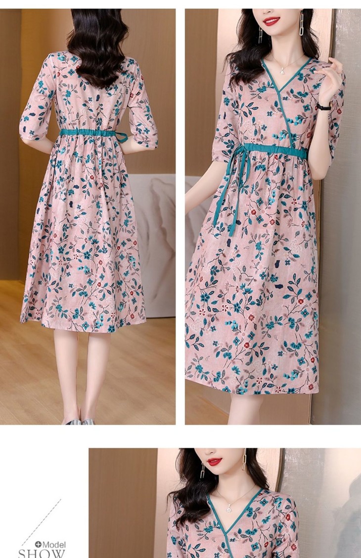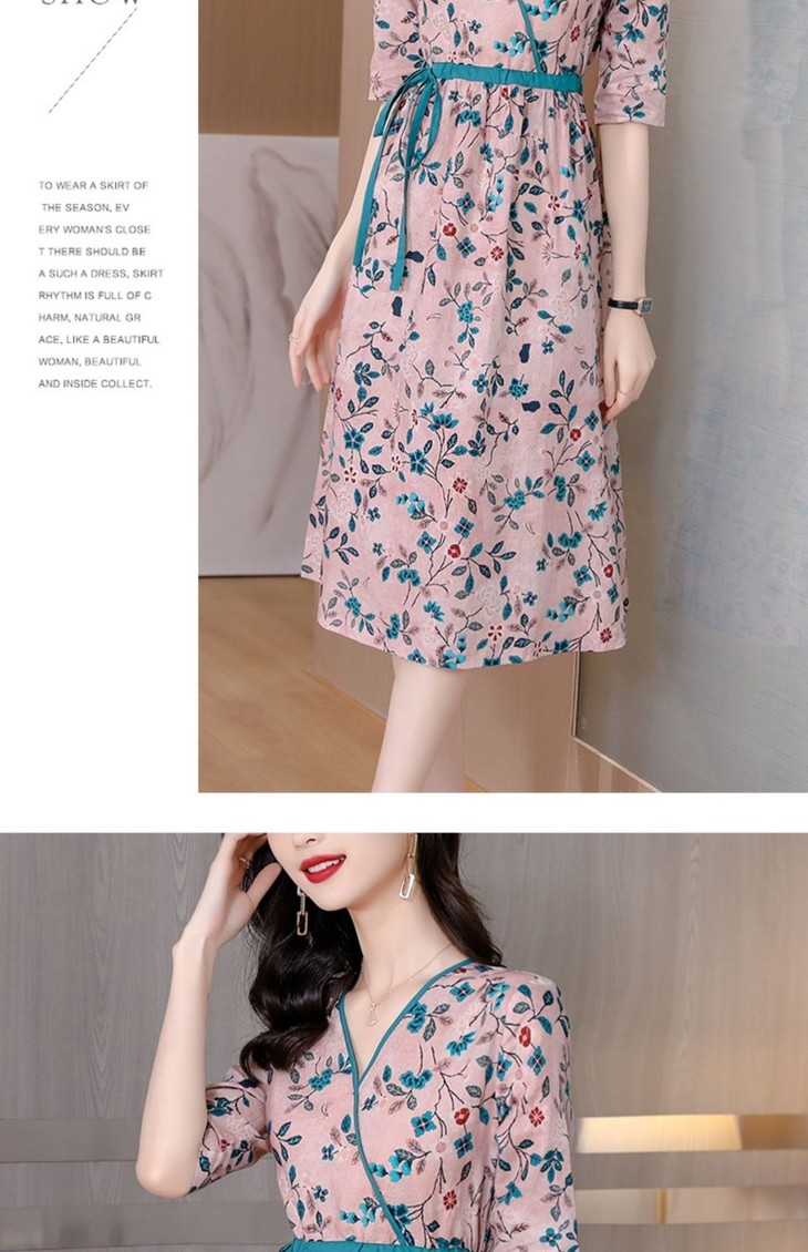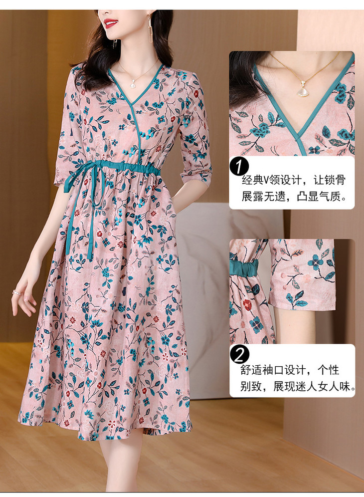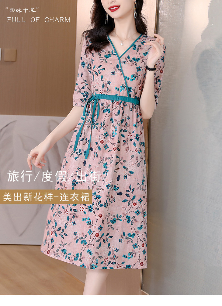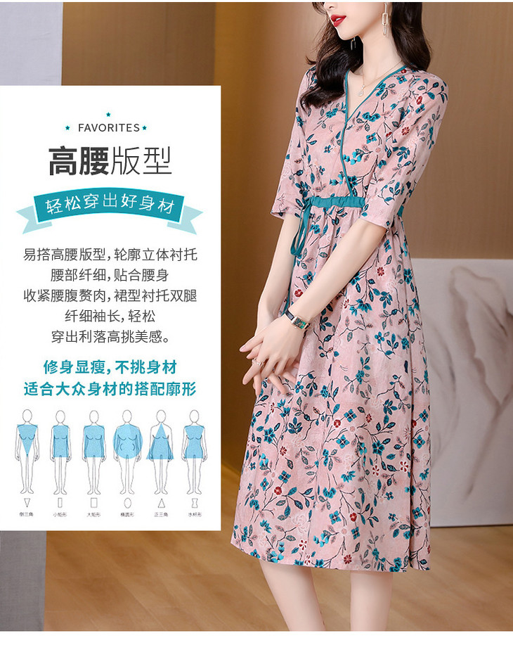 碎花连衣裙女夏季新款气质收腰v领小个子 DL6969