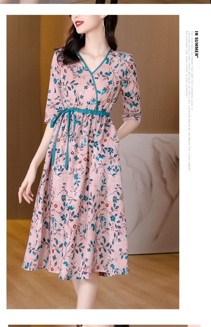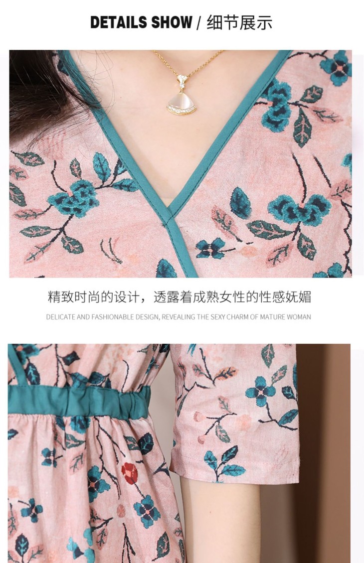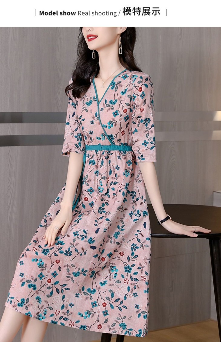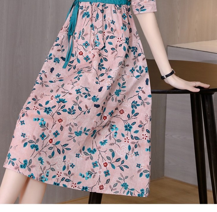 碎花连衣裙女夏季新款气质收腰v领小个子 DL6969