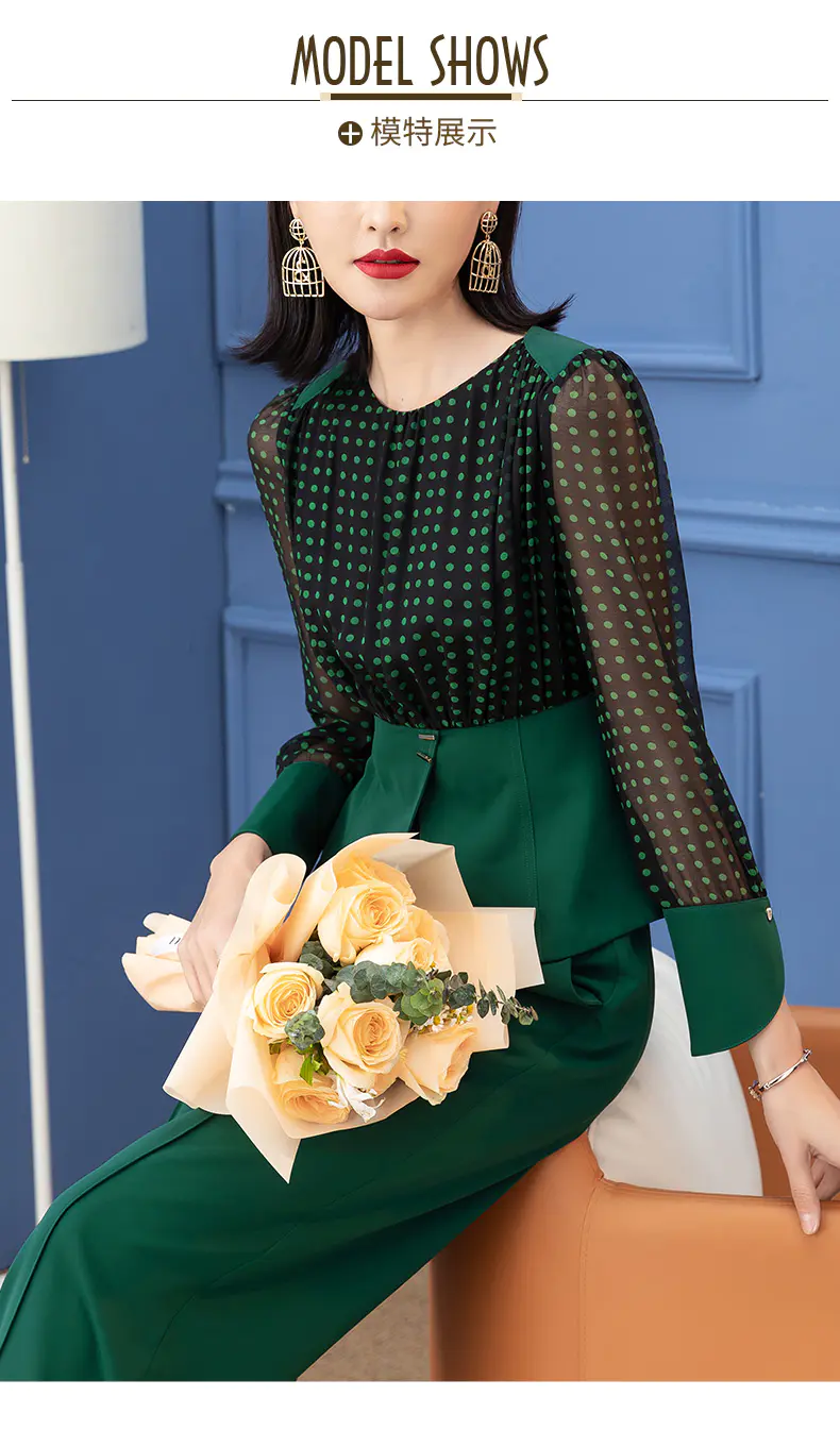 CQ HBLJR6016 春季新品翻领长袖纯色雪纺衫女式哈伦裤三件套