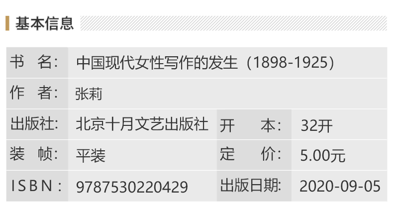 本书研究的既是中国现代女性写作者身份的发生史,也是中国现代女性写作传统的生成史。这是源头。百年现代女性文学的历史帷幕由此郑重拉开。