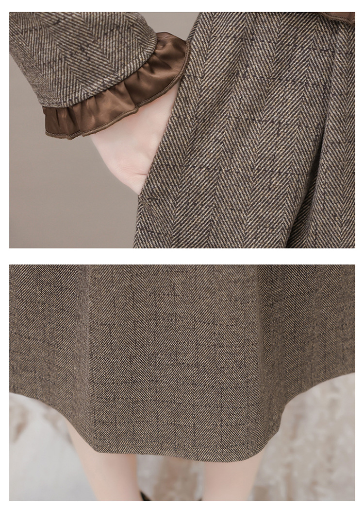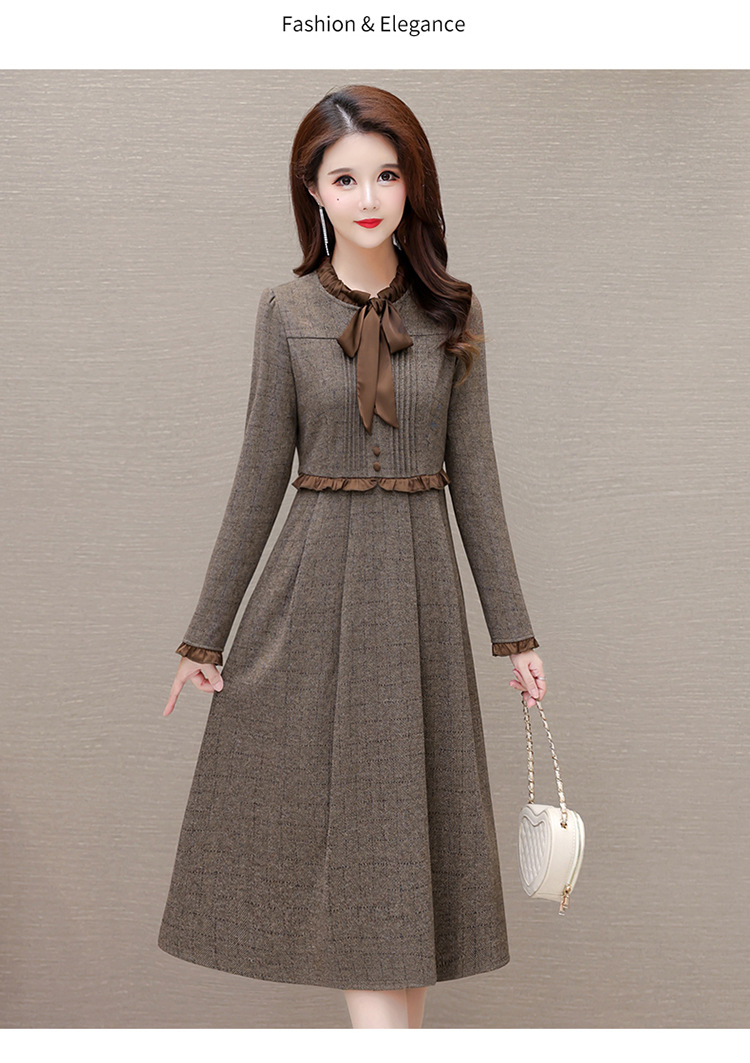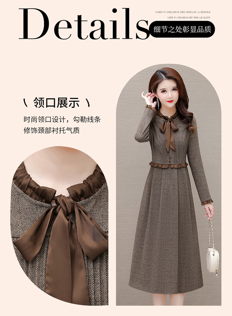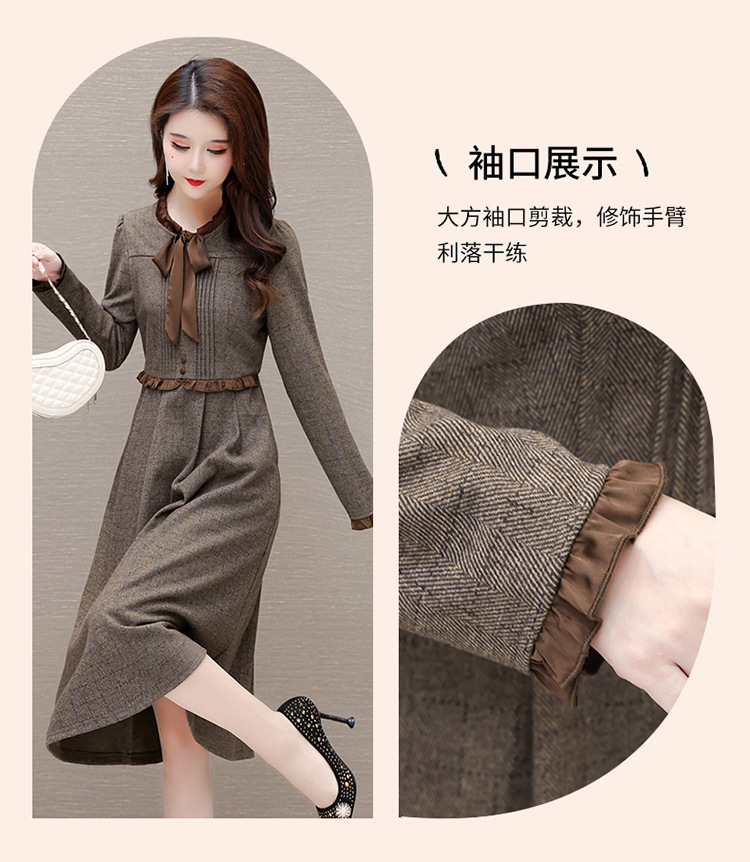 QYMHL-24A6638-Y 假两件厚款连衣裙女2024年春秋季新款木耳边拼结中长款A字裙 商品图4