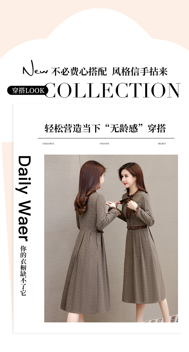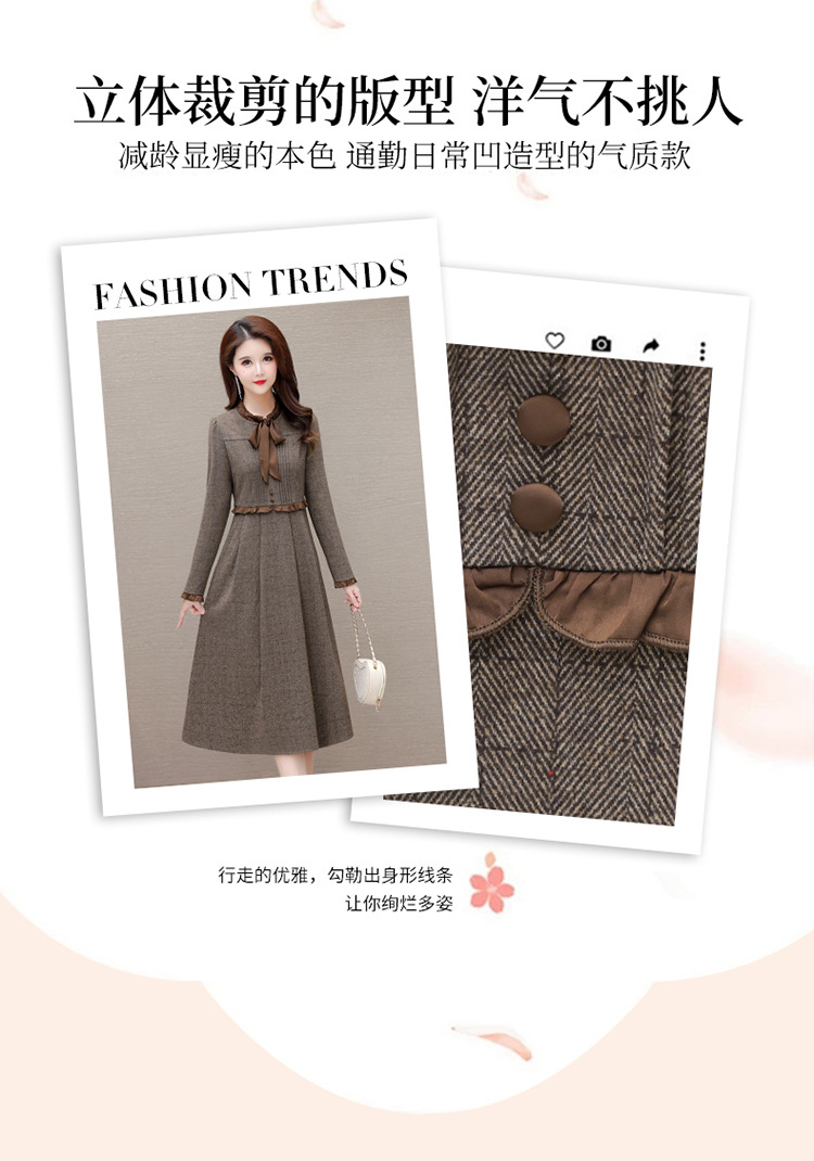 QYMHL-24A6638-Y 假两件厚款连衣裙女2024年春秋季新款木耳边拼结中长款A字裙 商品图2