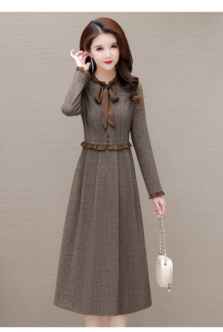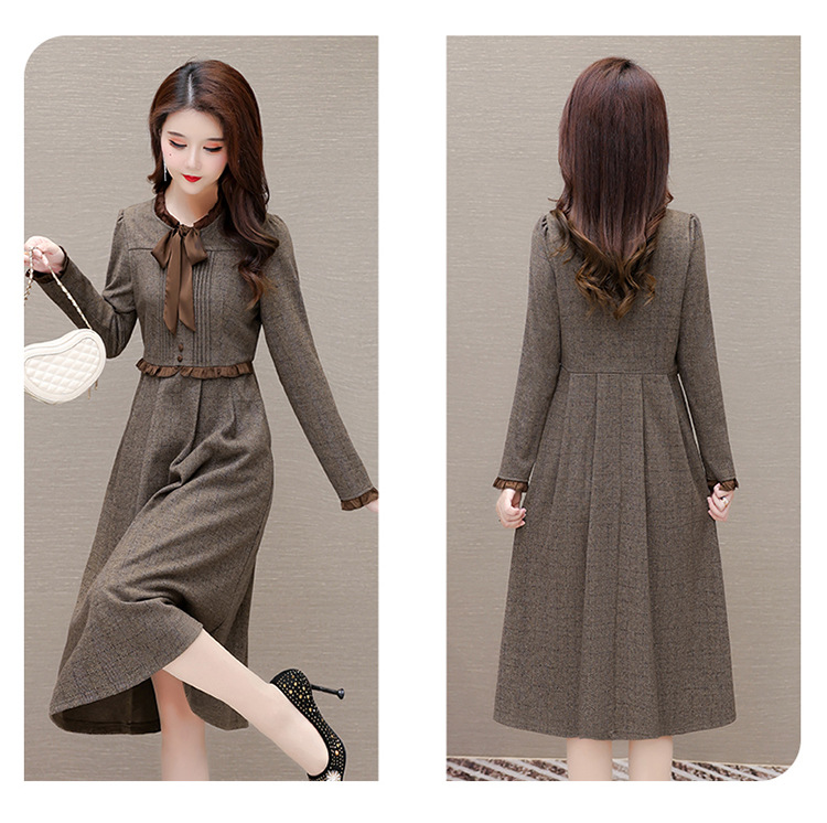 QYMHL-24A6638-Y 假两件厚款连衣裙女2024年春秋季新款木耳边拼结中长款A字裙 商品图1