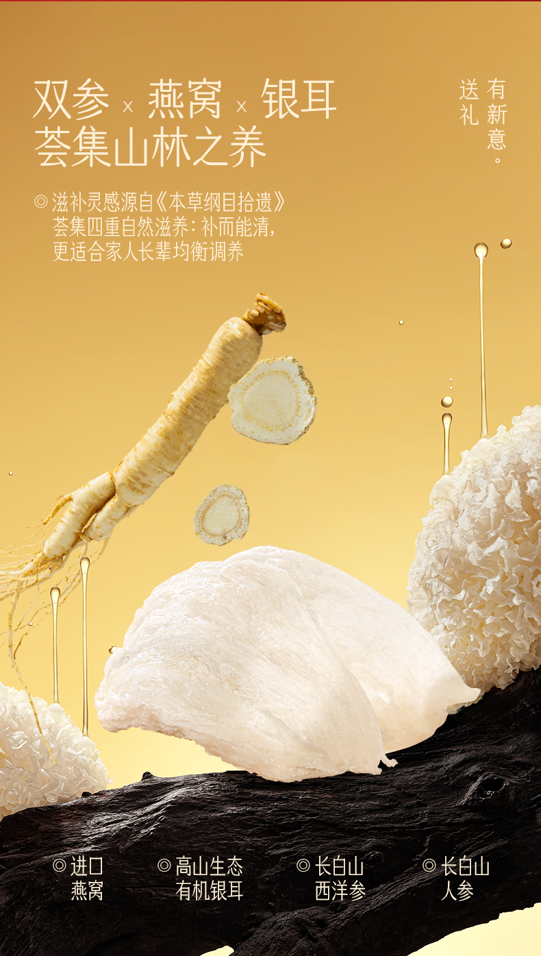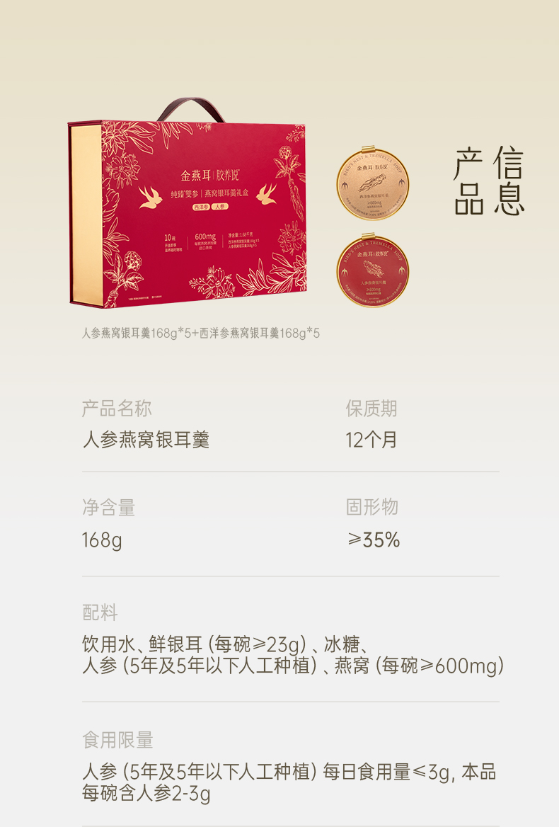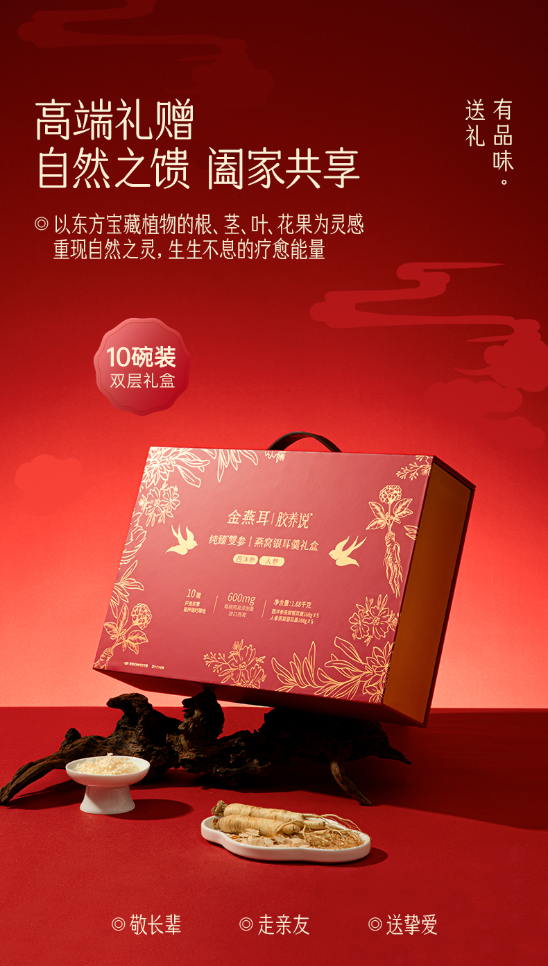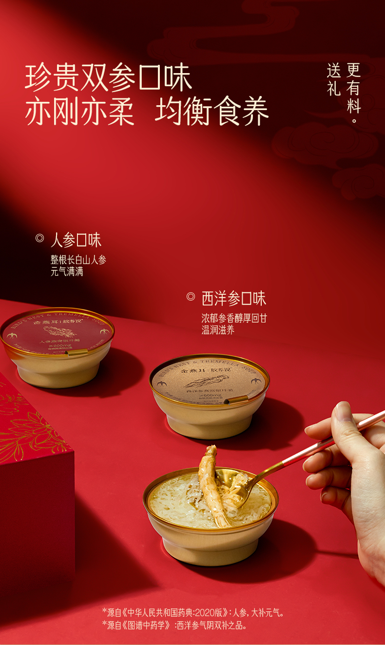 【滋补养生】金燕耳 纯臻雙参燕窝银耳羹礼盒 (内含:人参燕窝羹*5、西洋参燕窝羹*5)