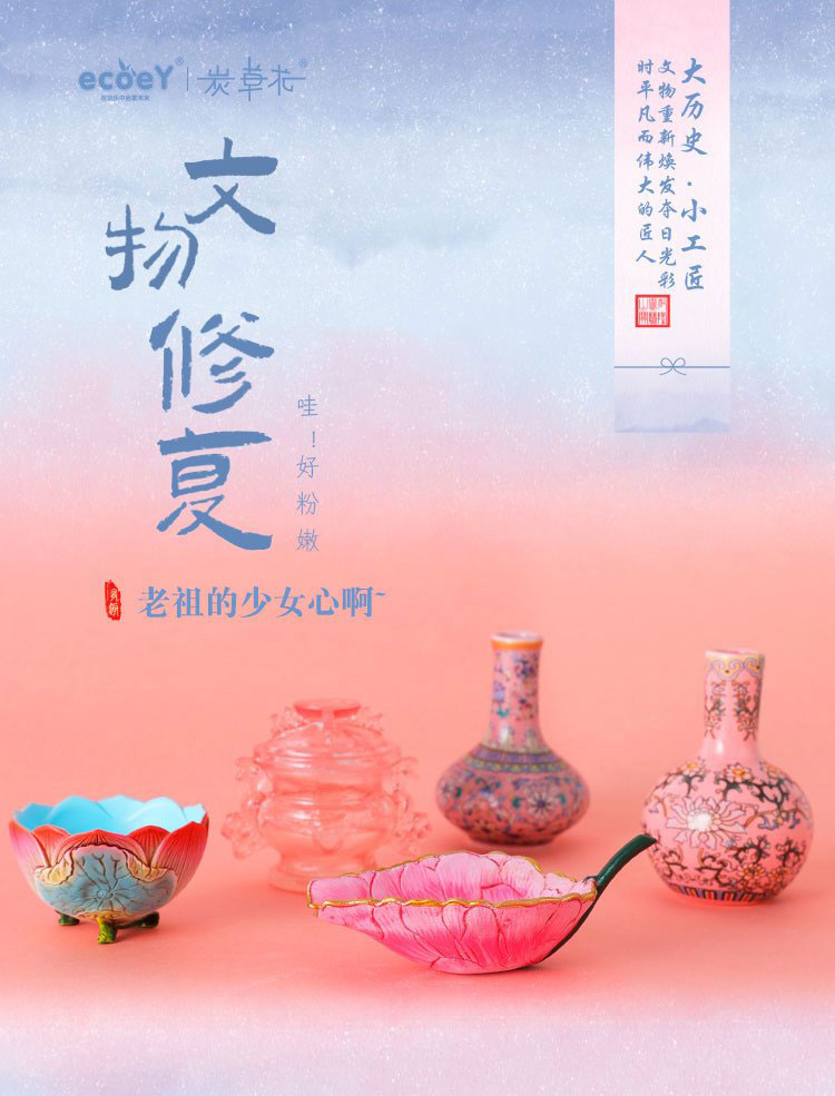 文物修复大师 手工DIY体验青花瓷红陶修复过程 新时期时代明永乐青花博物馆文创ecoey