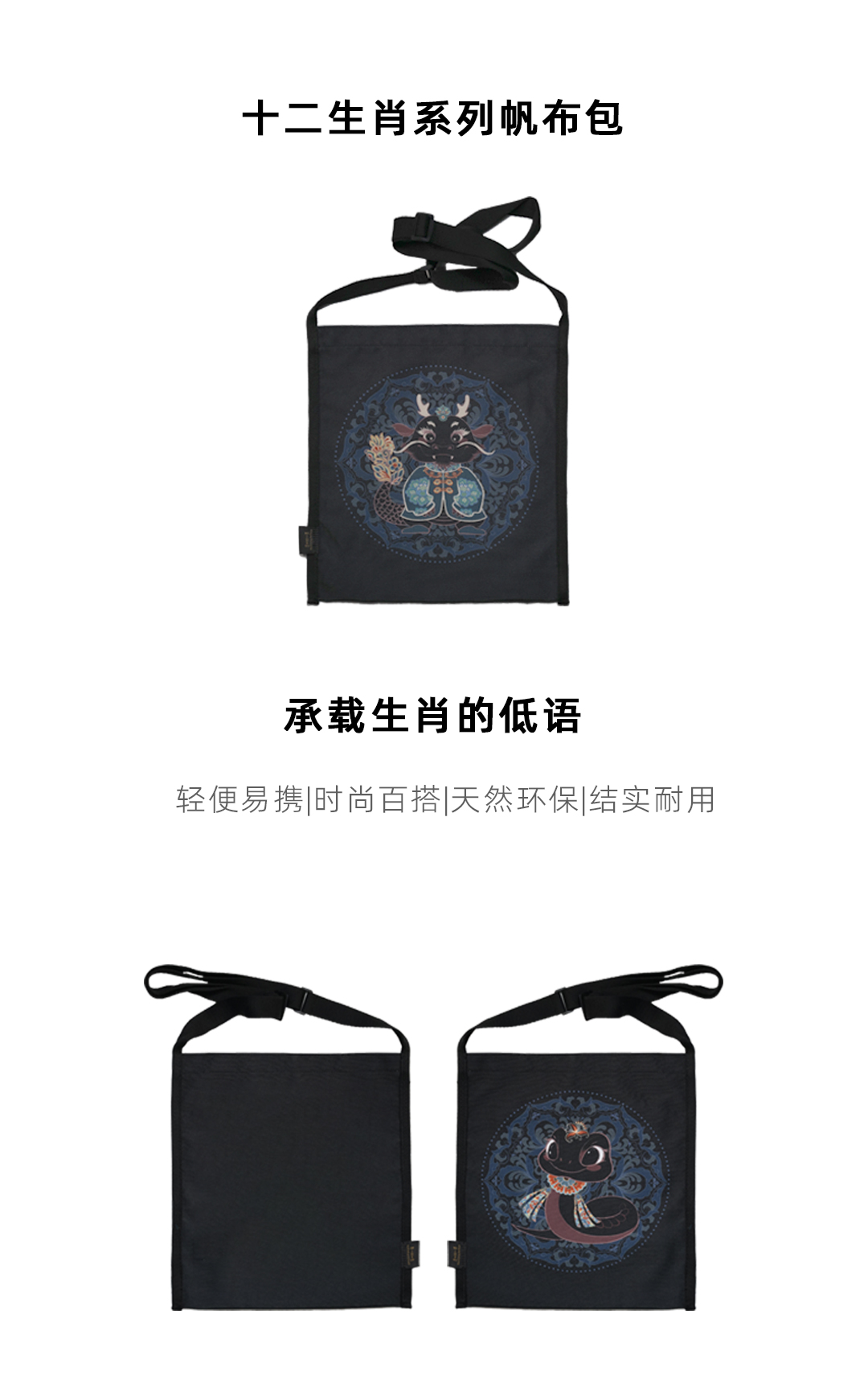 敦煌十二生肖帆布包(黑)