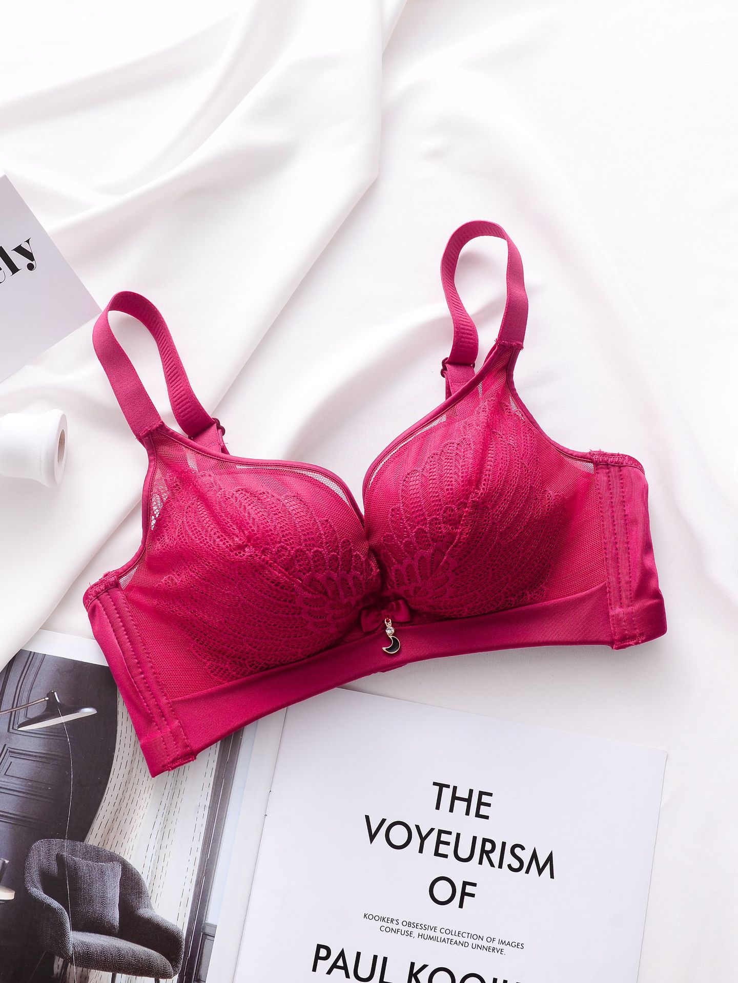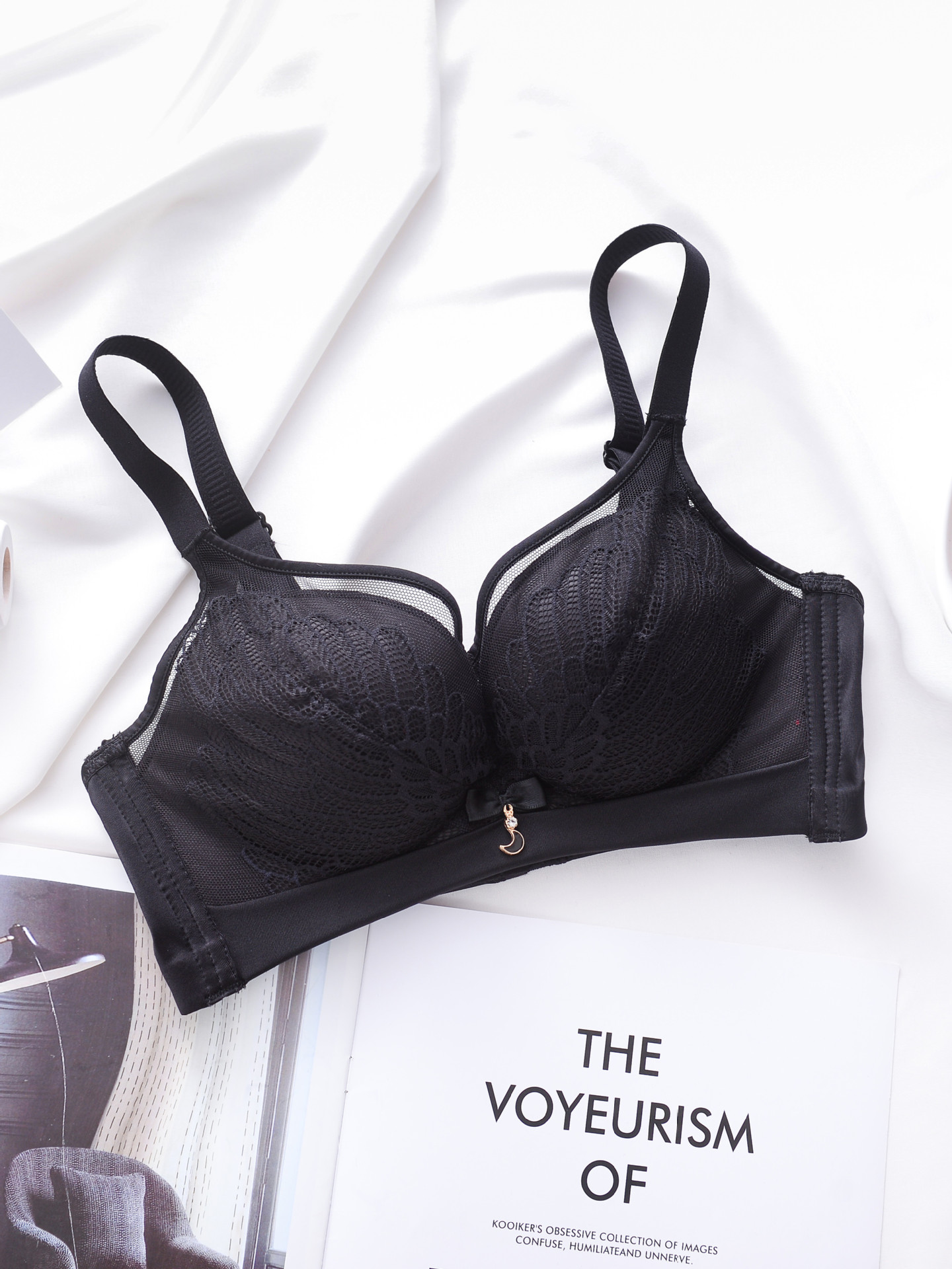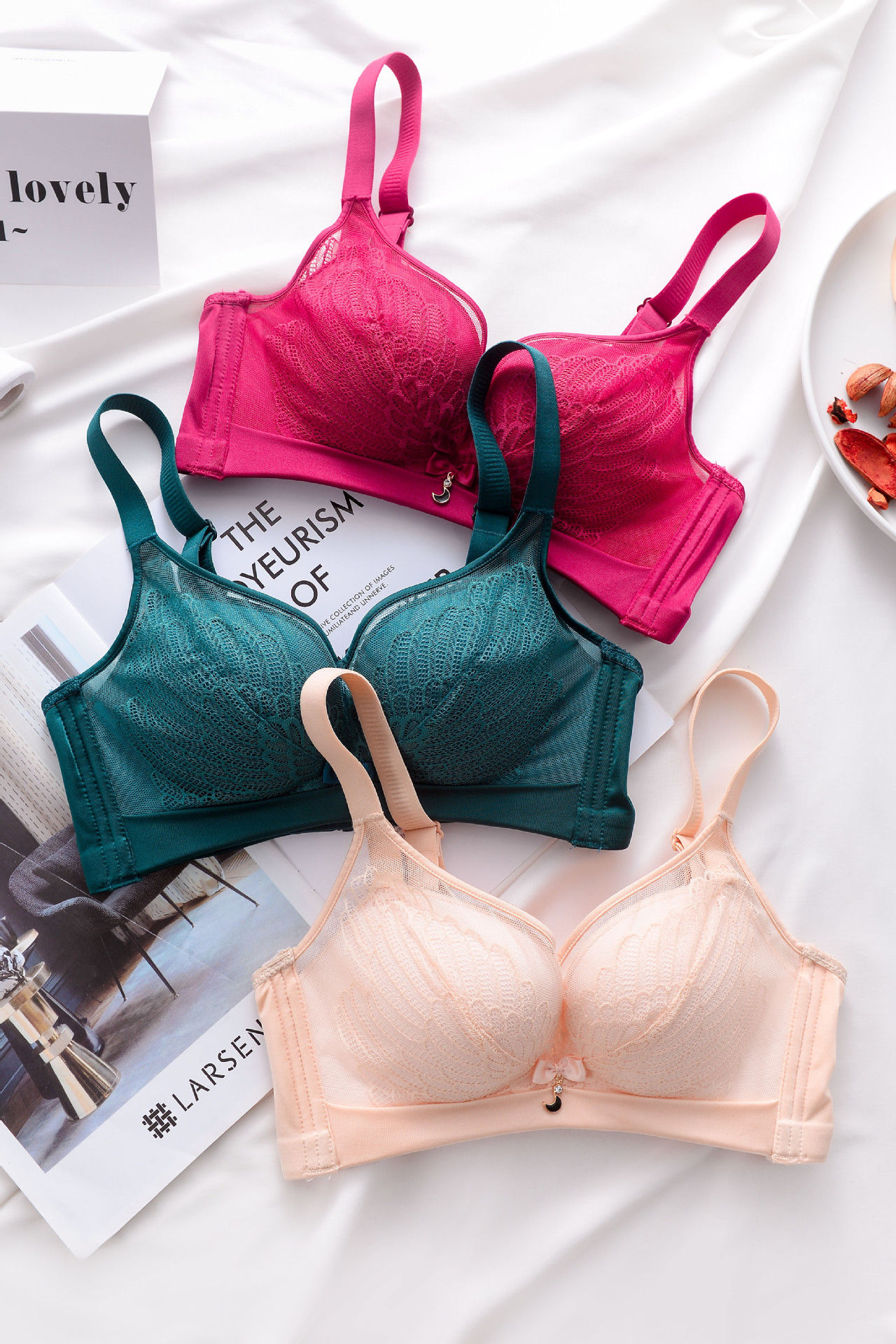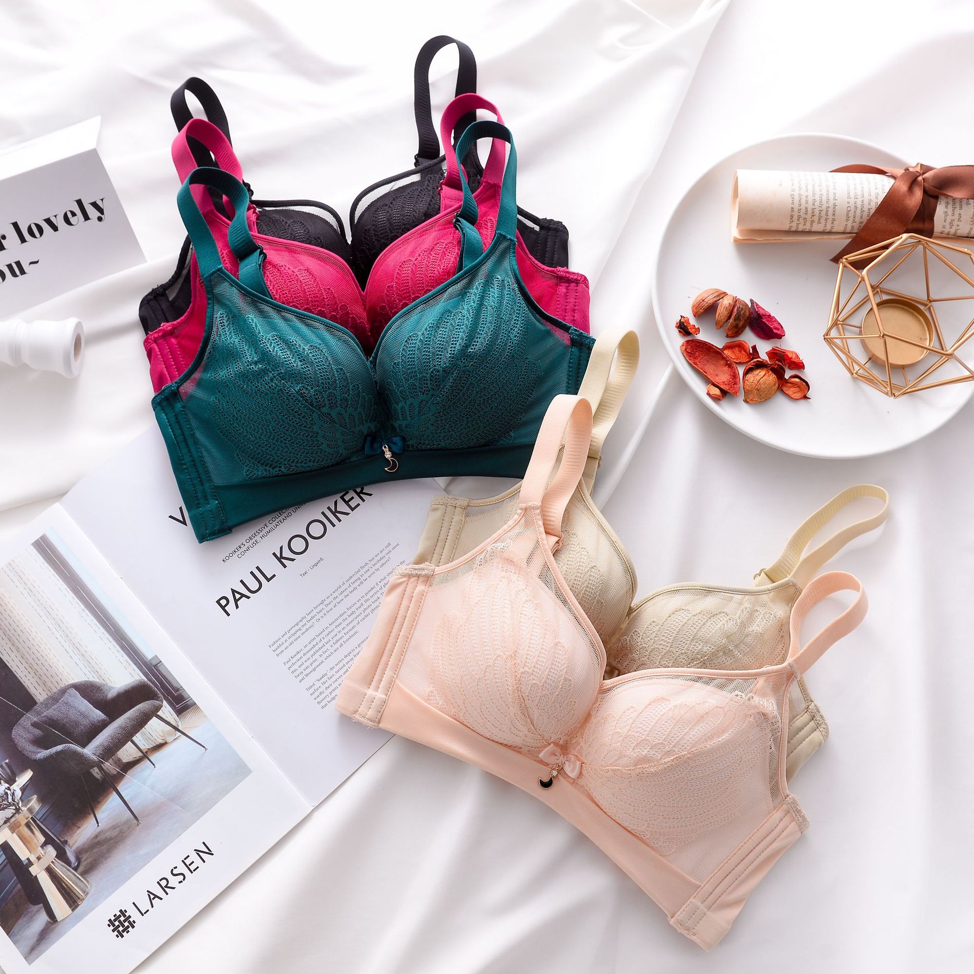 春夏薄杯大码内衣女无钢圈聚拢防走光性感蕾丝文胸ZXH