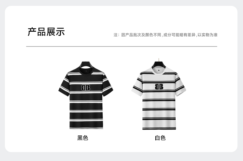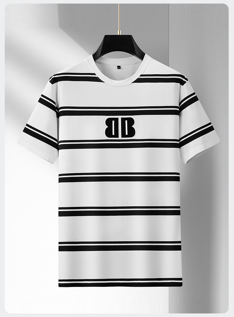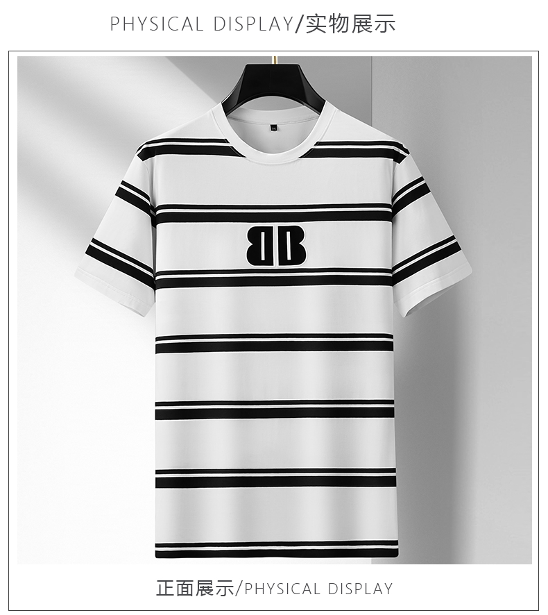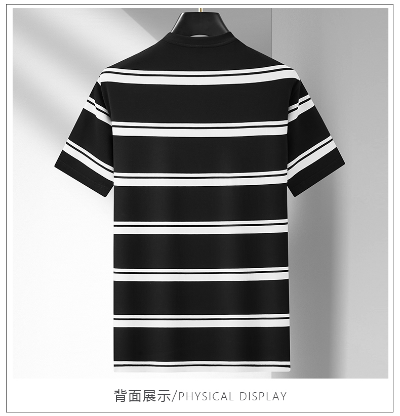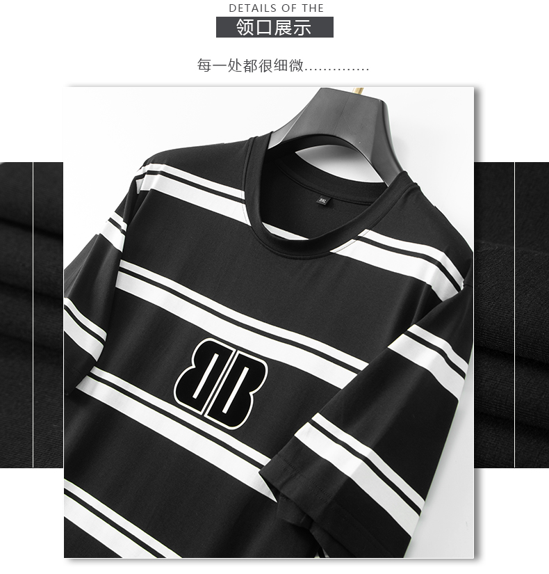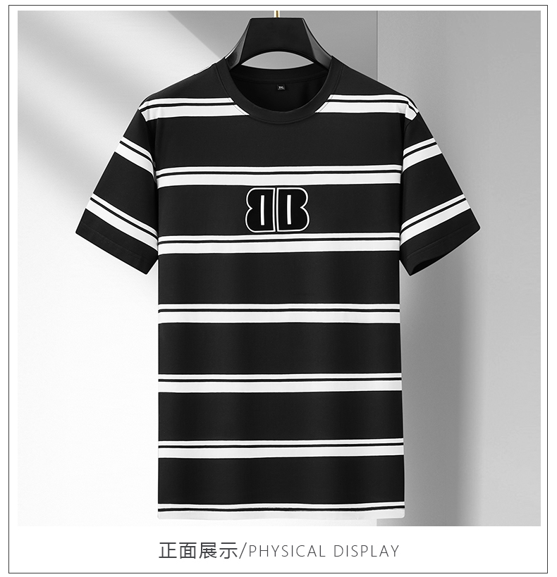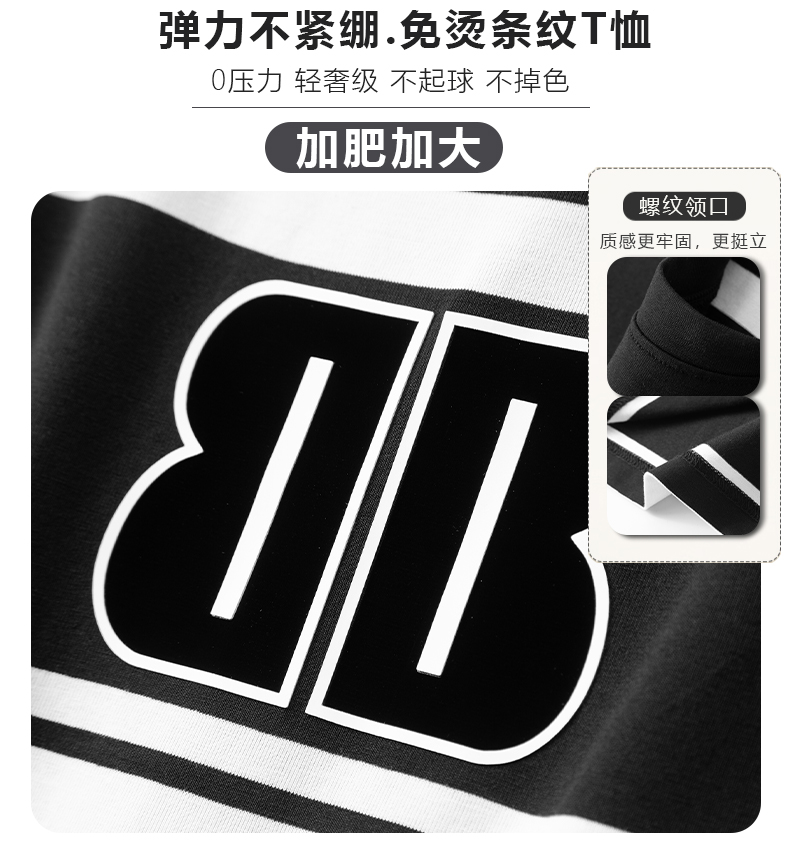 【纯棉】【新款DDA】大依优型大码条纹短袖T恤圆领加肥加大男装大号大码上衣男士休闲半袖夏季