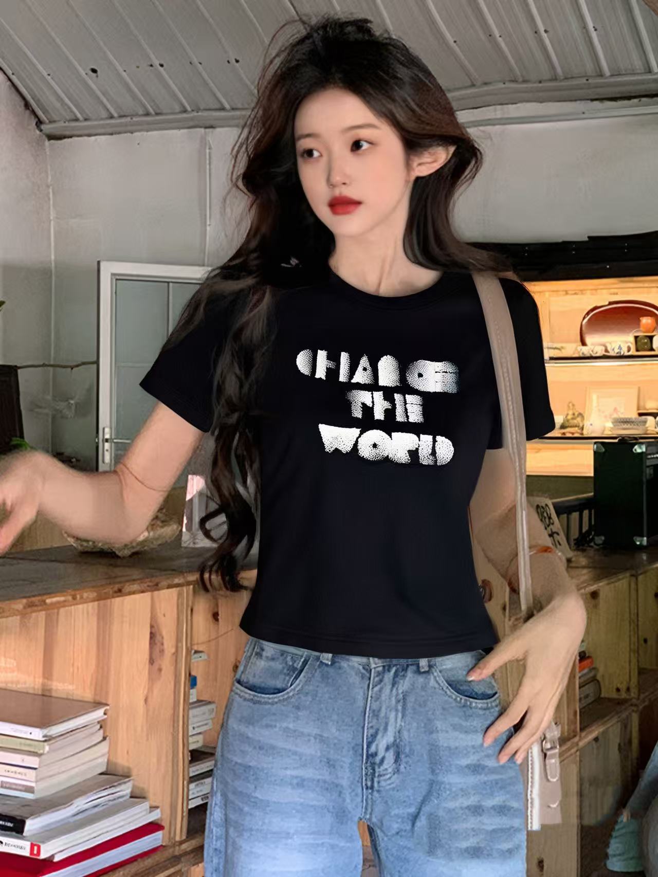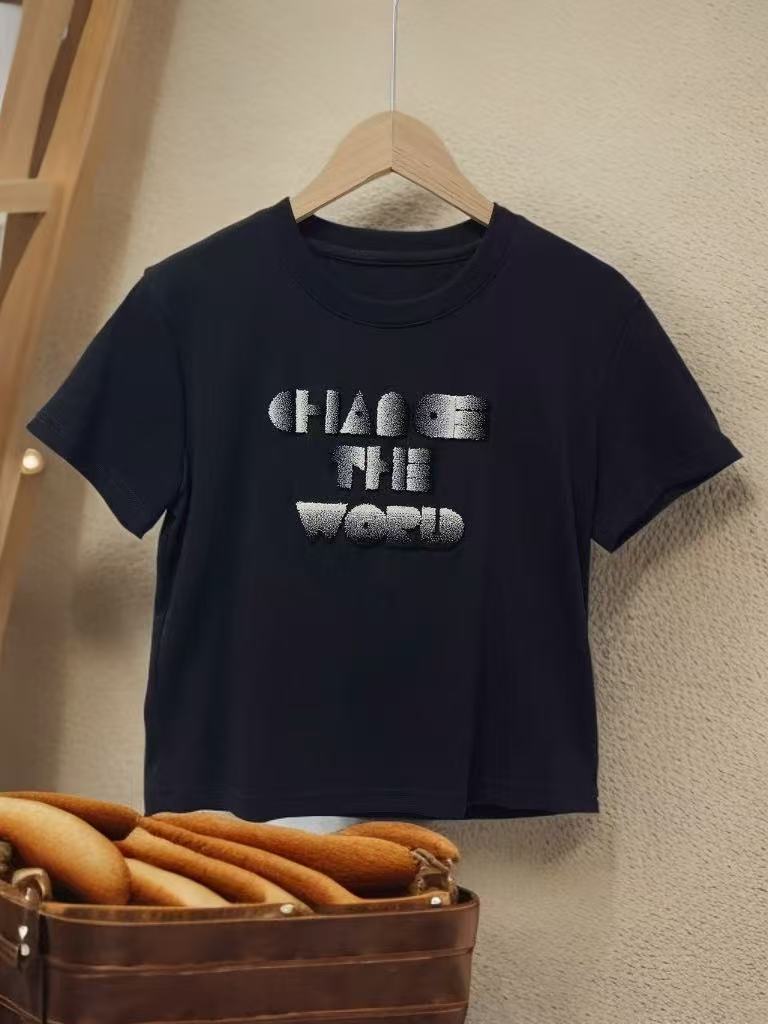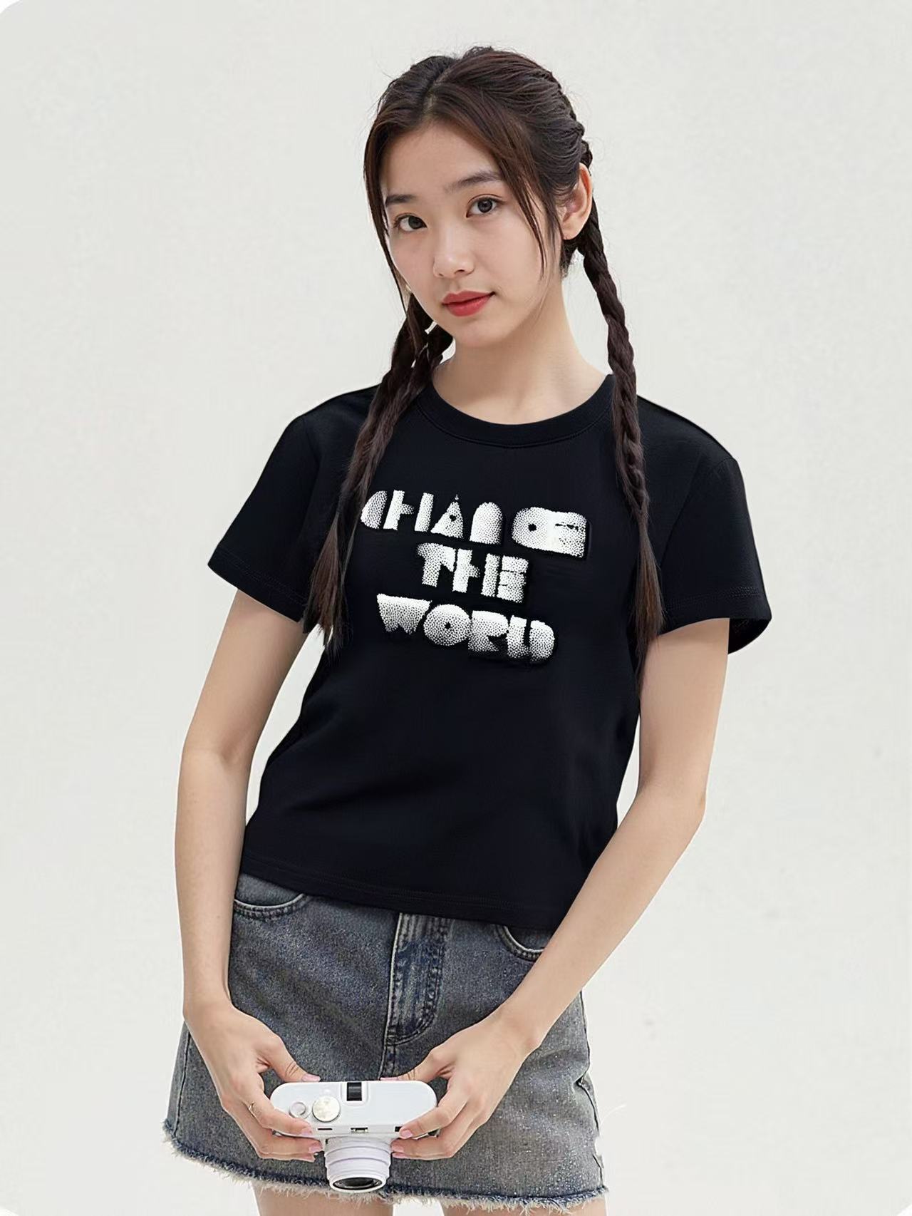 七夕福利-NO退~88133牙刷绣字母短款短袖T恤-喜出