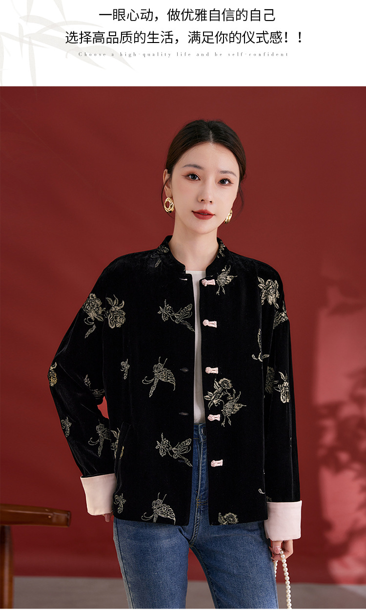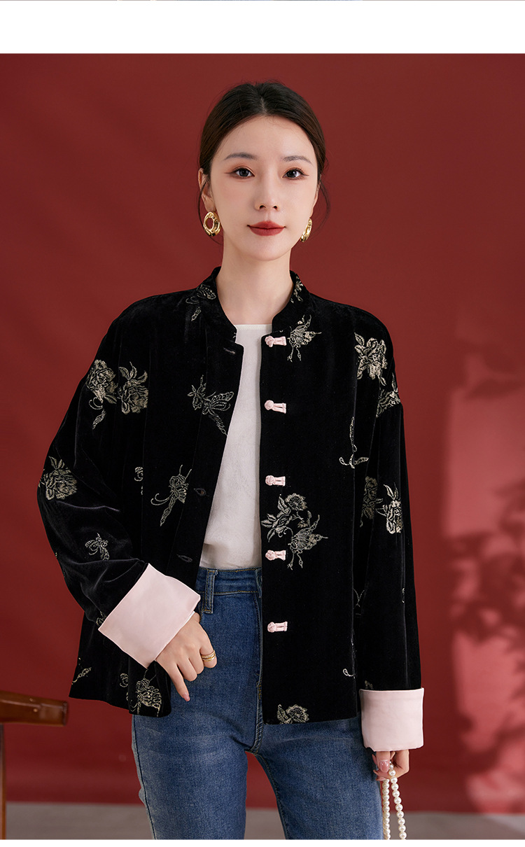 SM 1907桑蚕丝绣花新中式长袖外套宽松显瘦气质上衣 商品图3