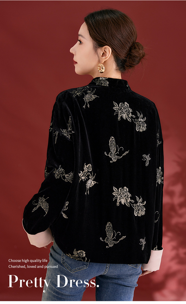 SM 1907桑蚕丝绣花新中式长袖外套宽松显瘦气质上衣 商品图4