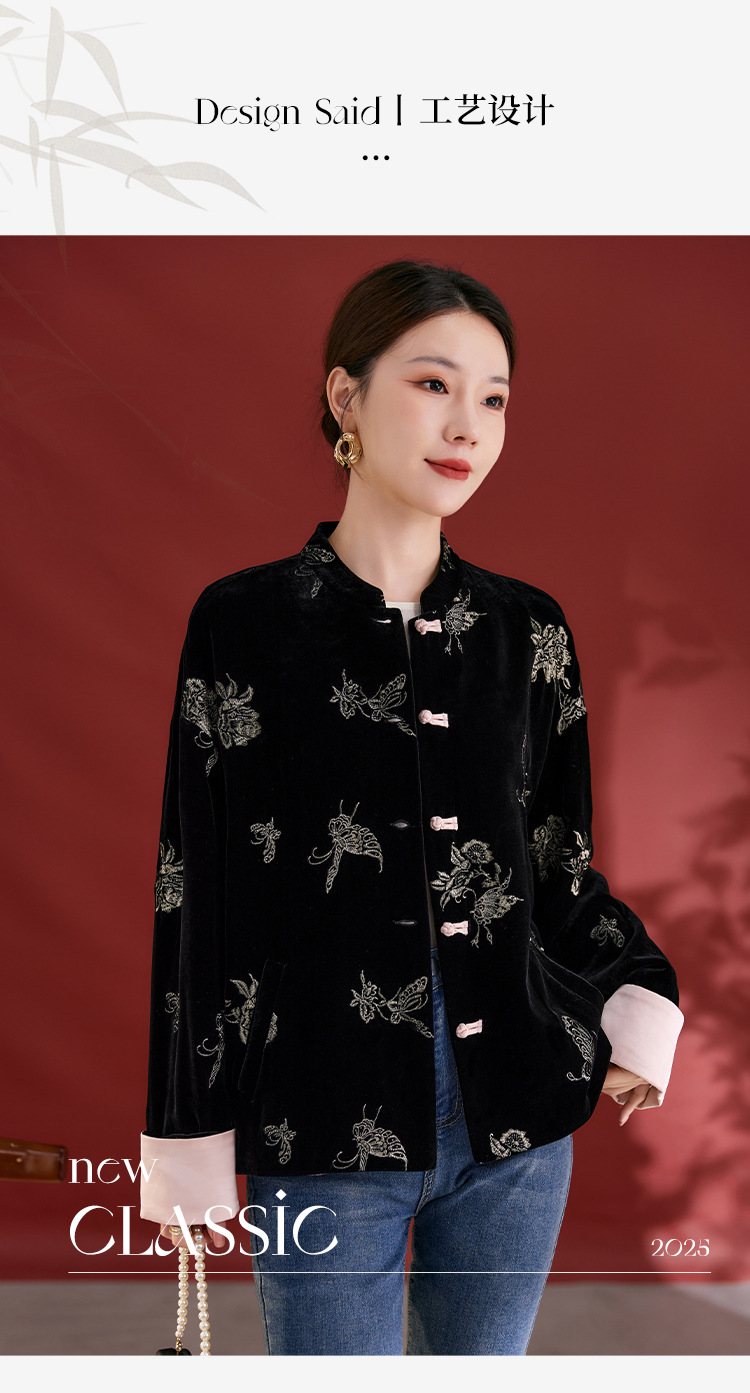 SM 1907桑蚕丝绣花新中式长袖外套宽松显瘦气质上衣 商品图0