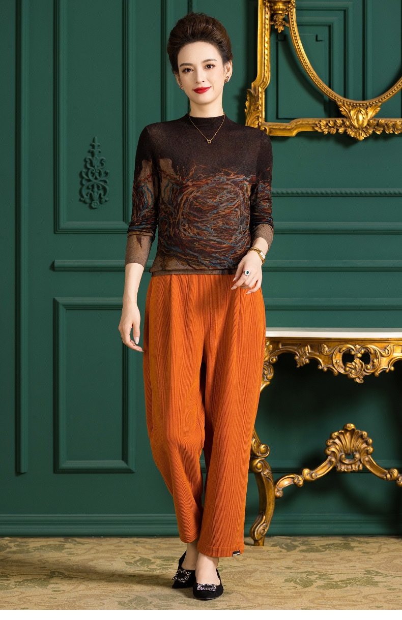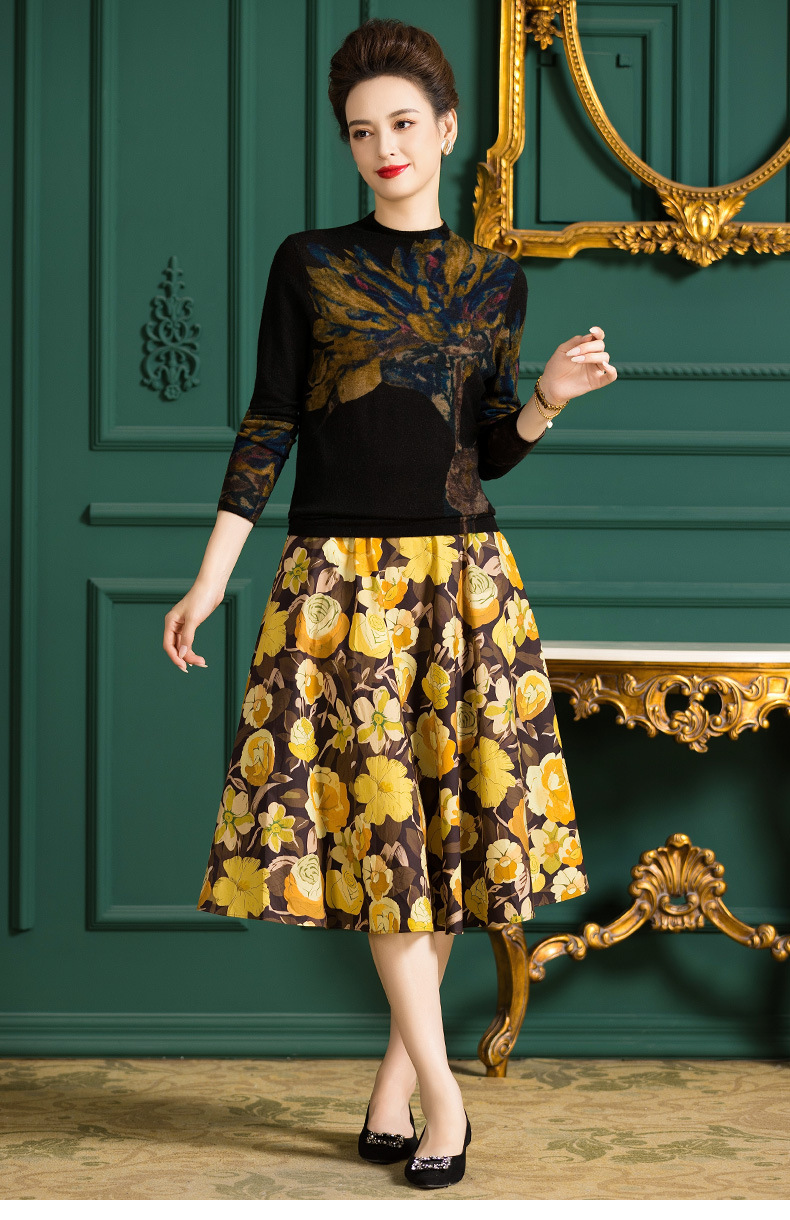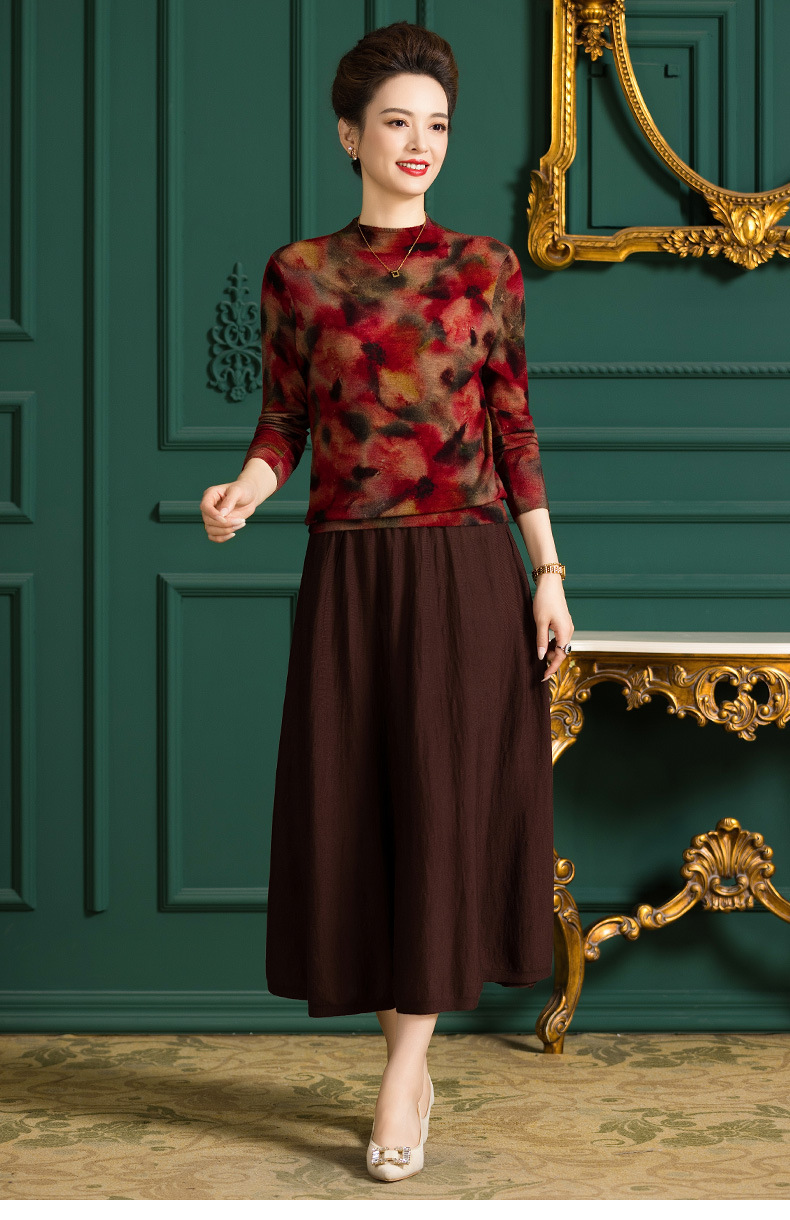 WW H2855水溶羊毛针织衫半高领印花上衣