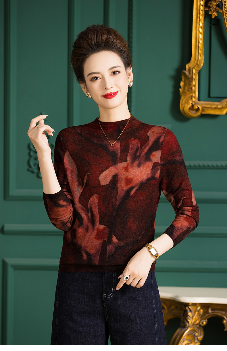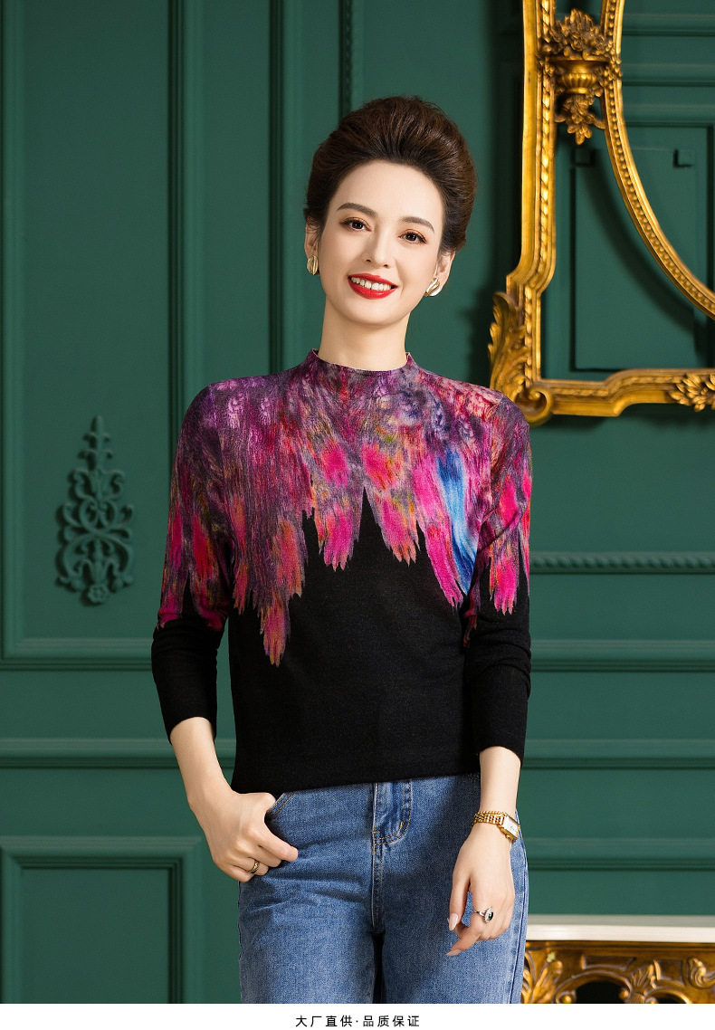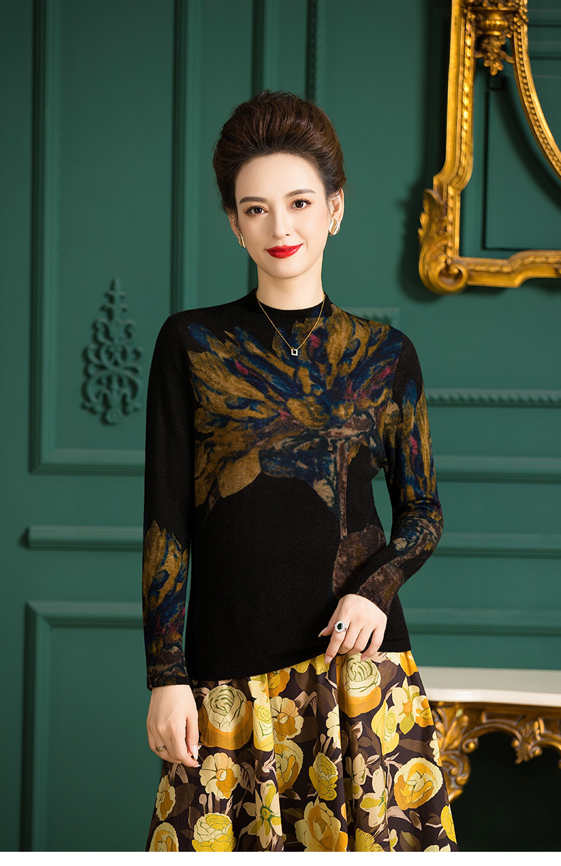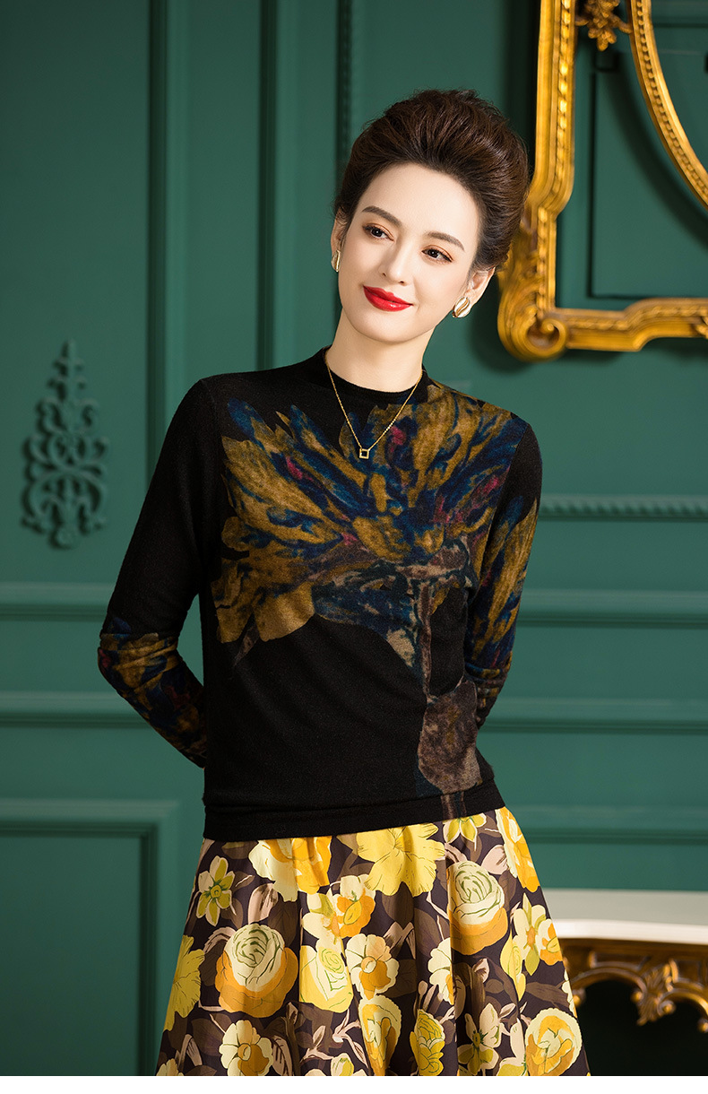 WW H2855水溶羊毛针织衫半高领印花上衣 商品图1