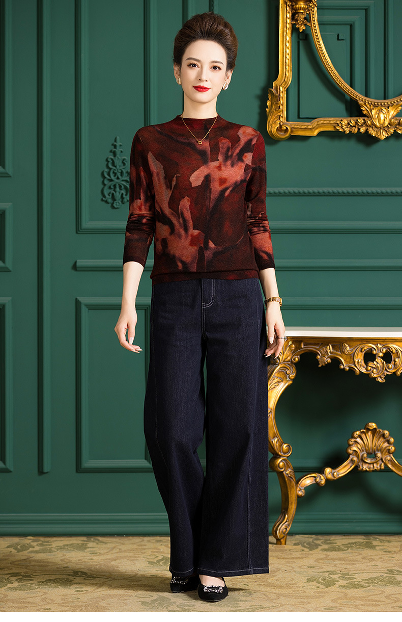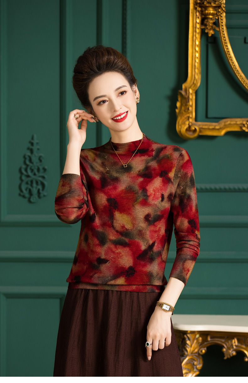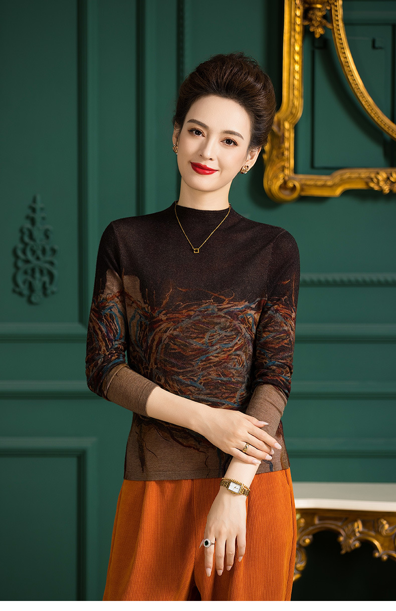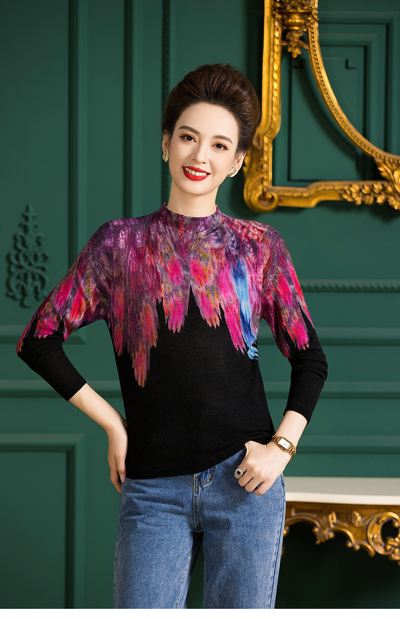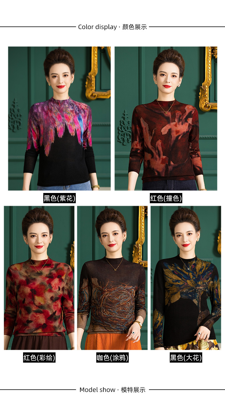 WW H2855水溶羊毛针织衫半高领印花上衣 商品图1