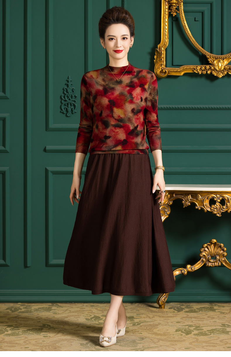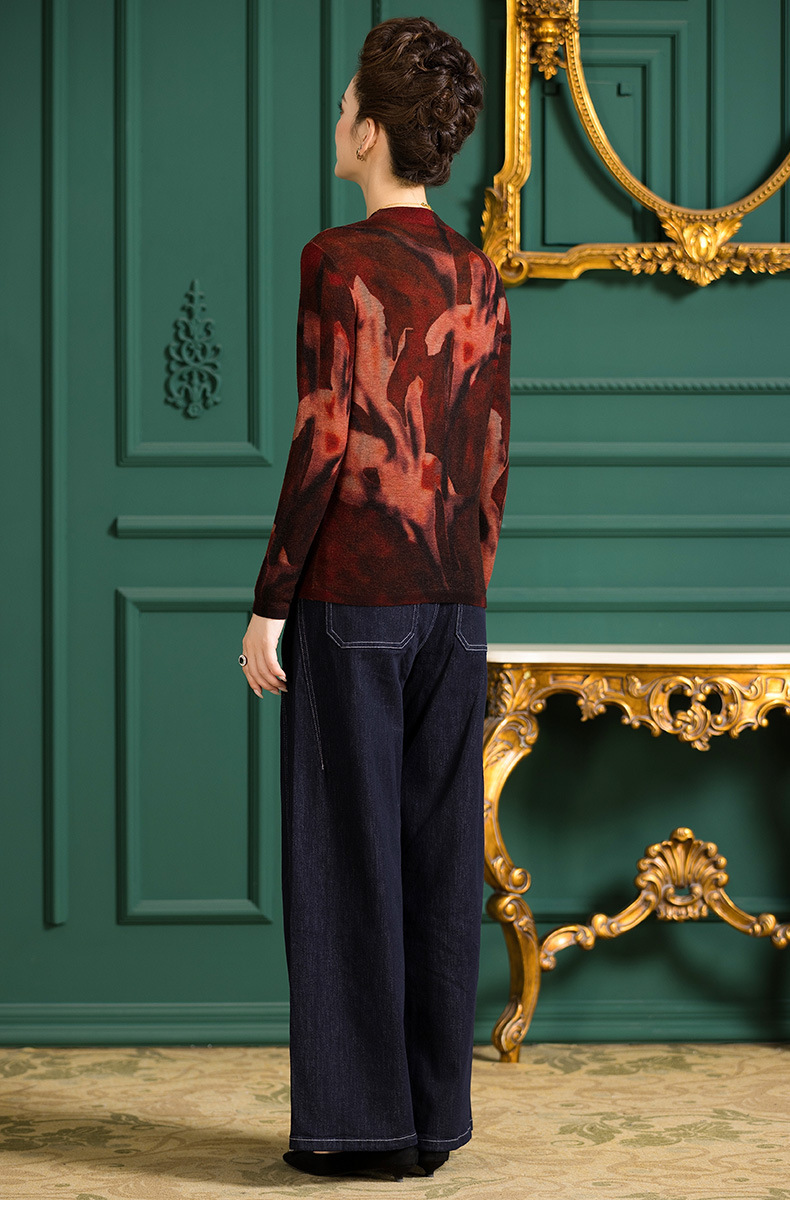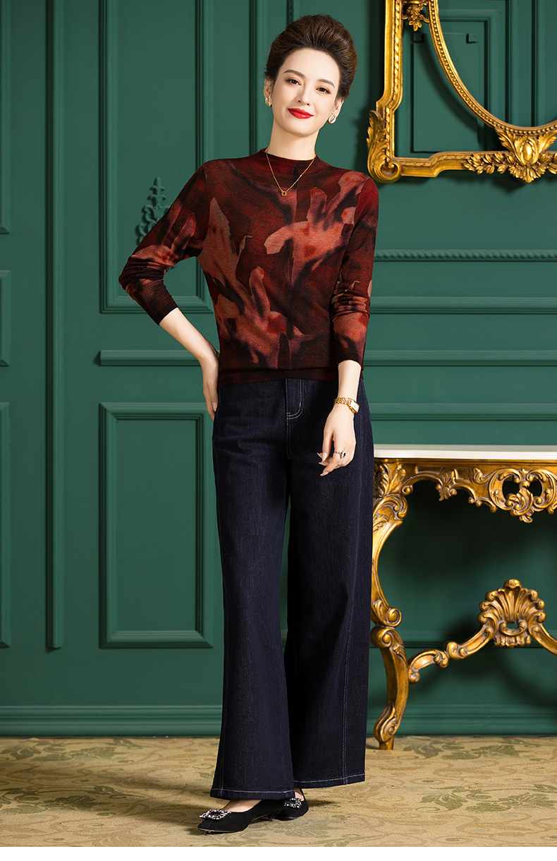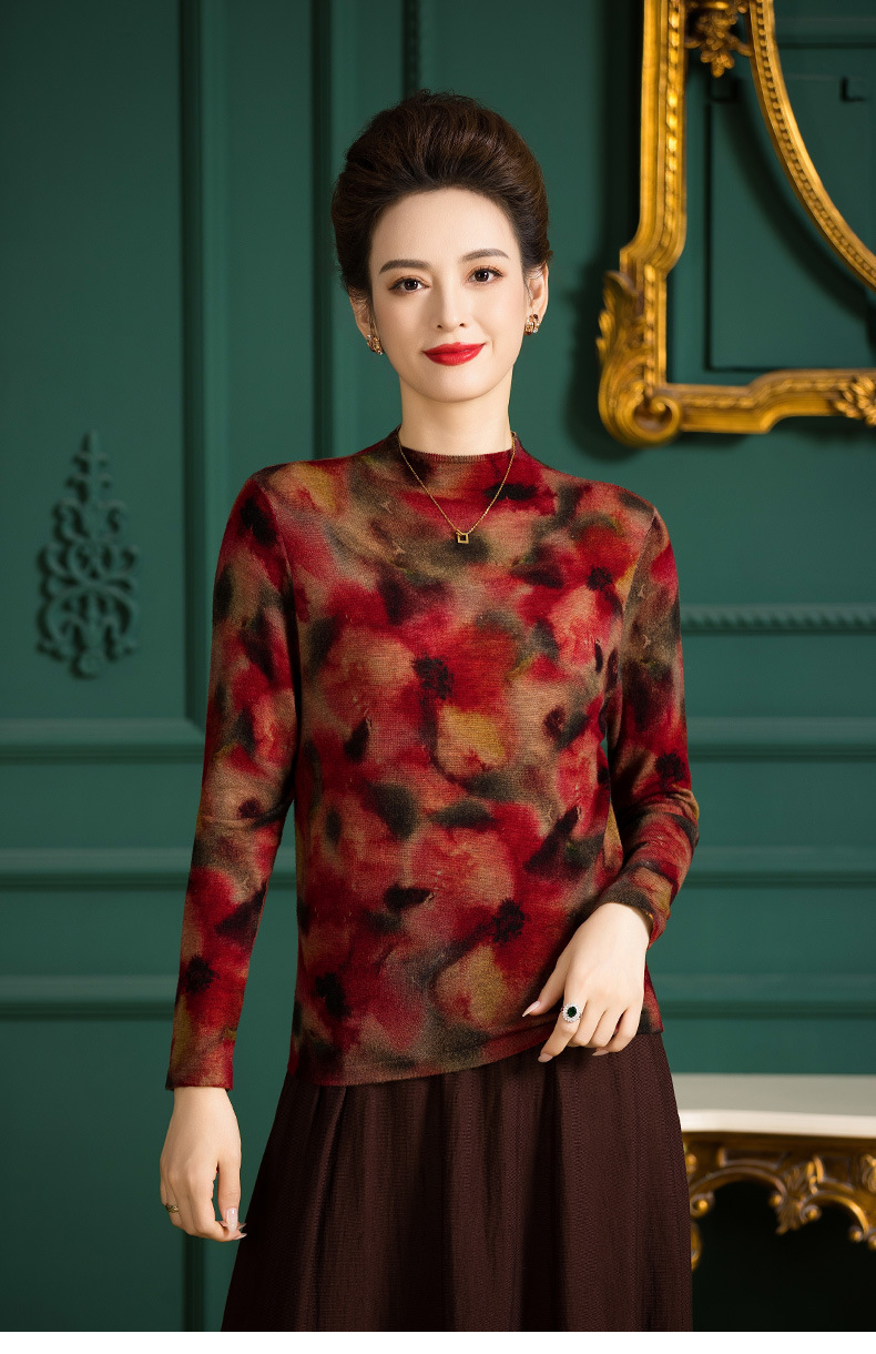 WW H2855水溶羊毛针织衫半高领印花上衣 商品图1