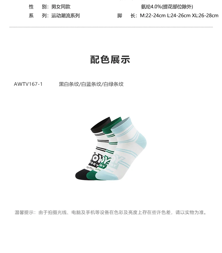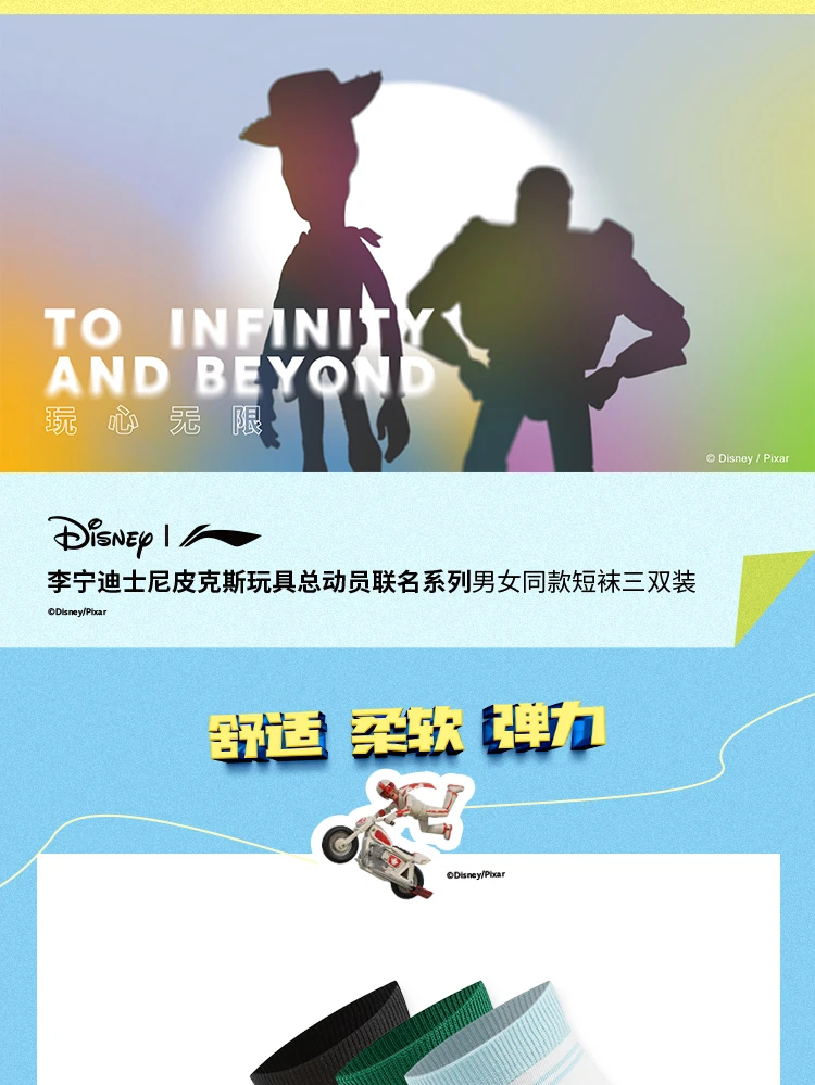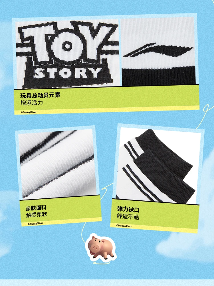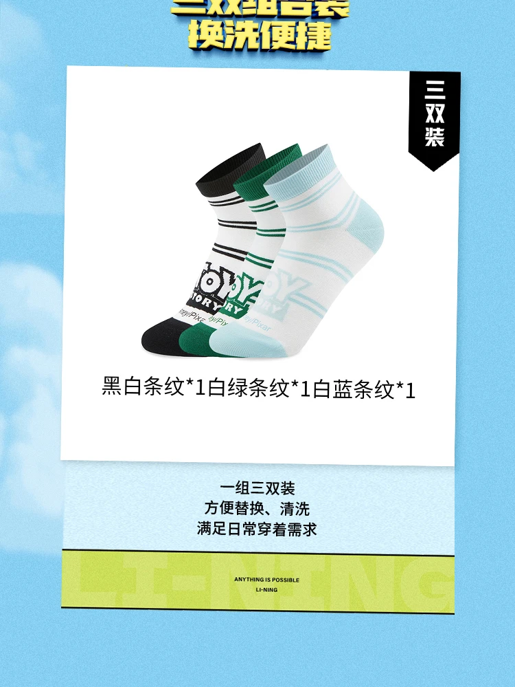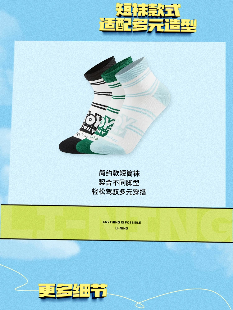 李宁迪士尼皮克斯玩具总动员联名系列短袜三双装AWTV167