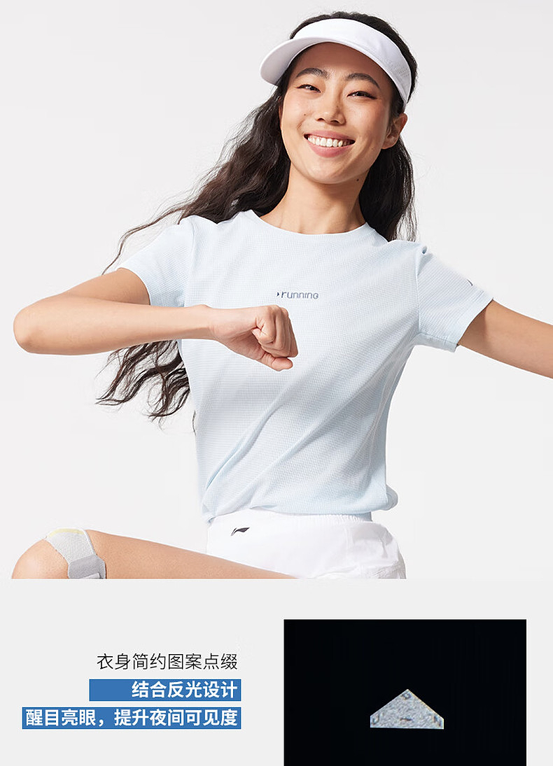 李宁专业跑步系列女子反光速干透气短袖T恤ATSV098