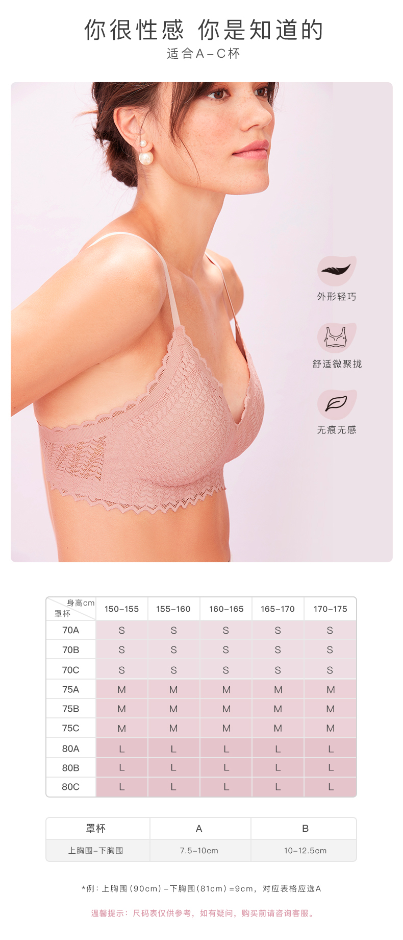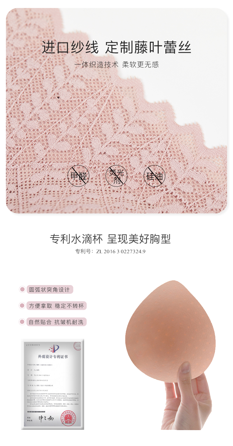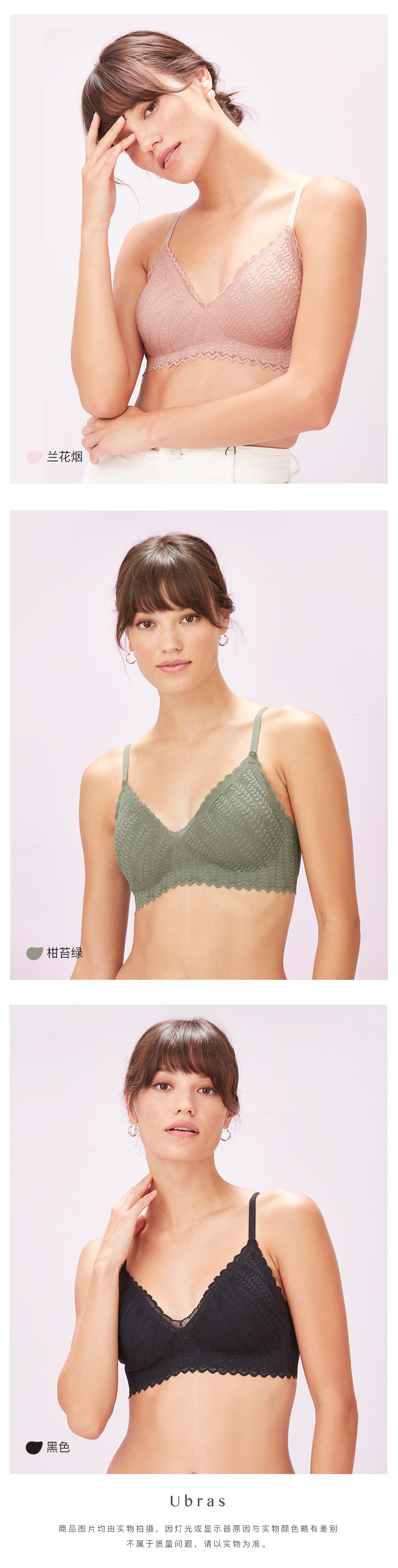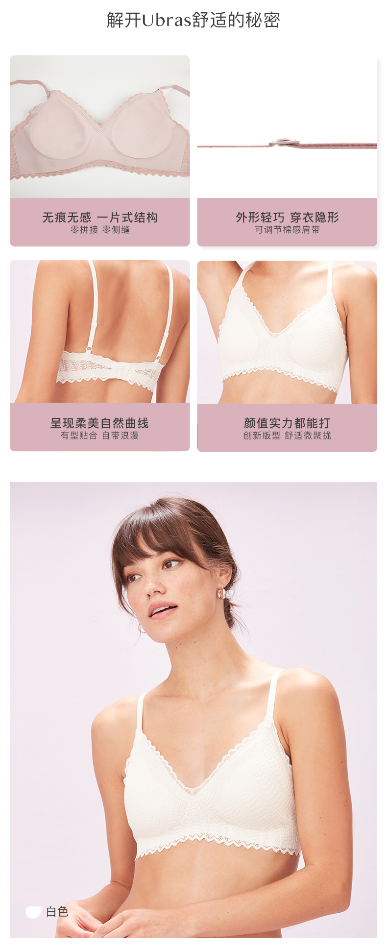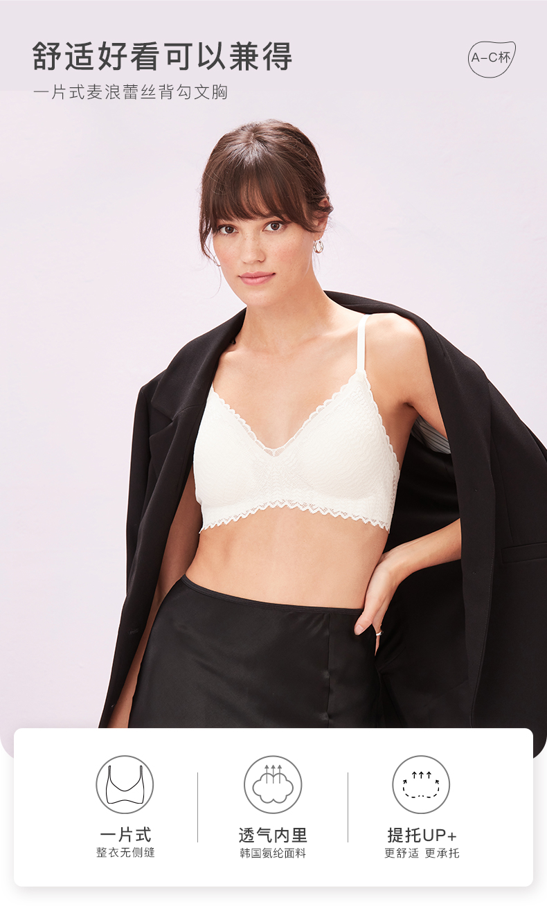Ubras一片式麦浪蕾丝背勾文胸无钢圈性感镂空透气轻薄女士内衣