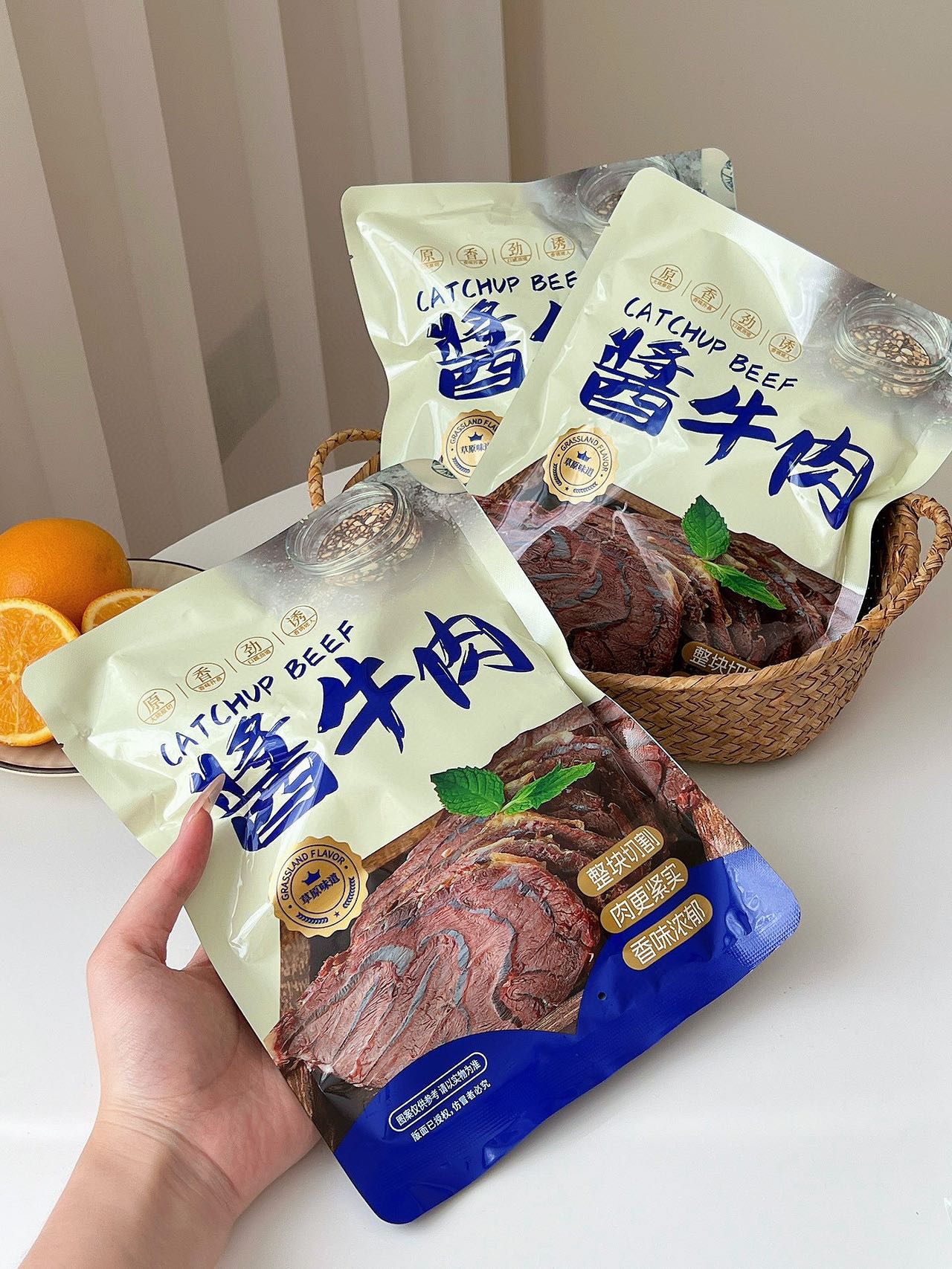 【潮牛元气--内蒙古草原整切酱牛肉】精选内蒙古黄牛肉 传统工艺精心烹制 纹理紧密的鲜嫩肉质 嚼劲十足 鲜香味美 回味无穷 营养丰富 妥妥的“舌尖充电宝”鲜嫩多汁
