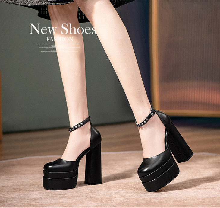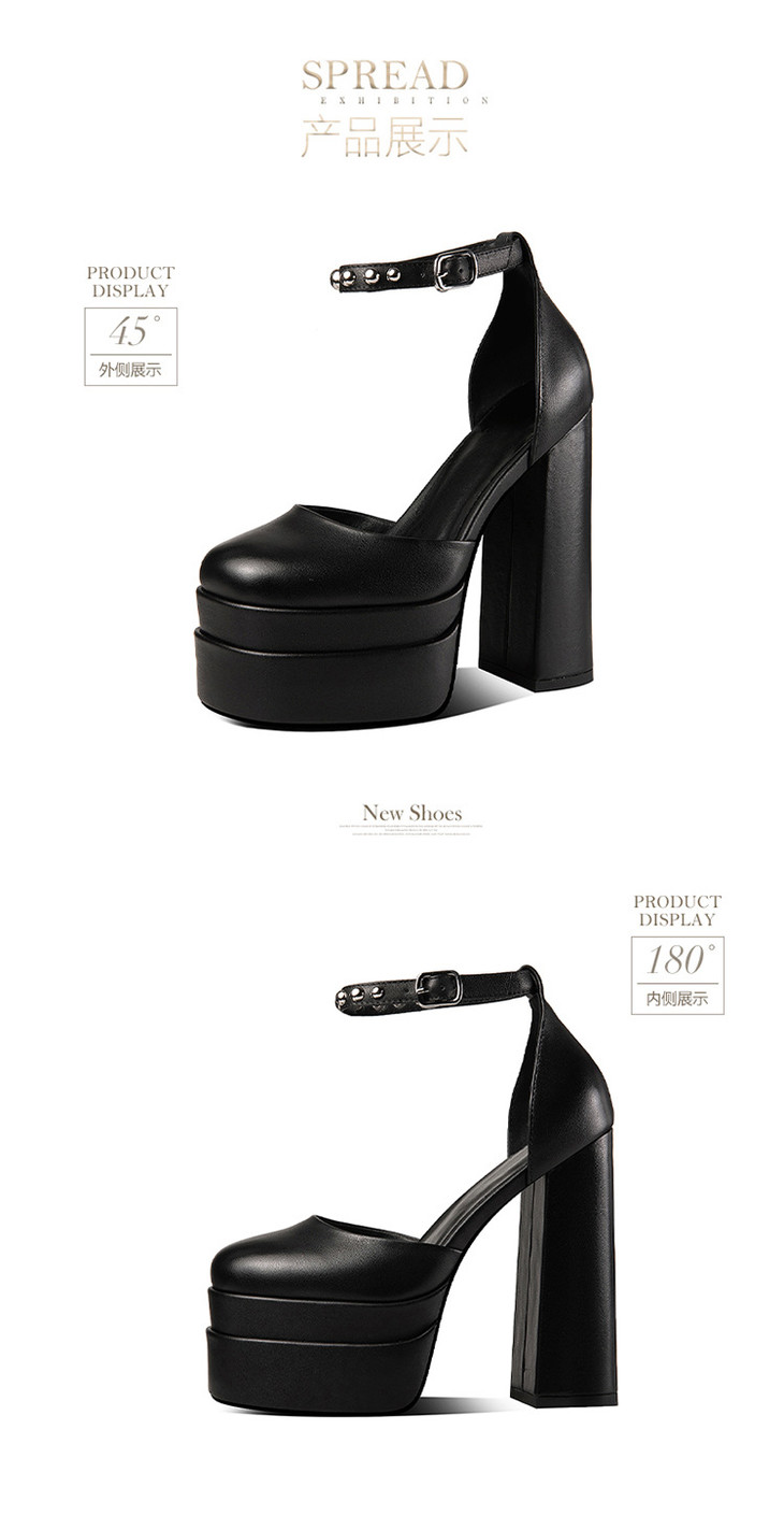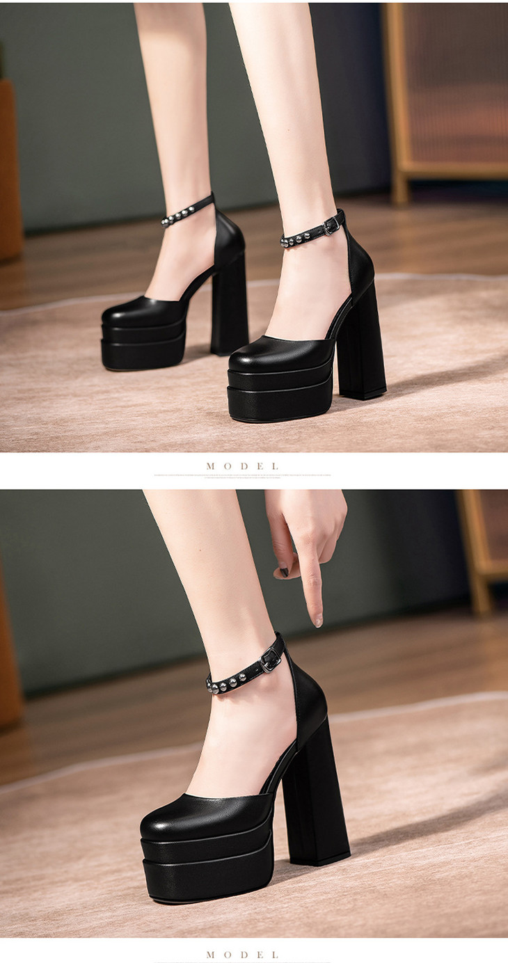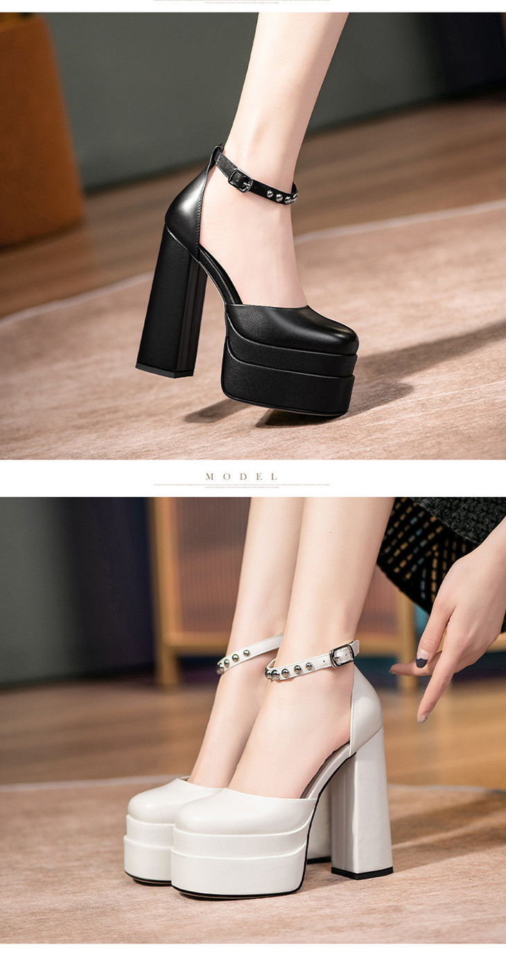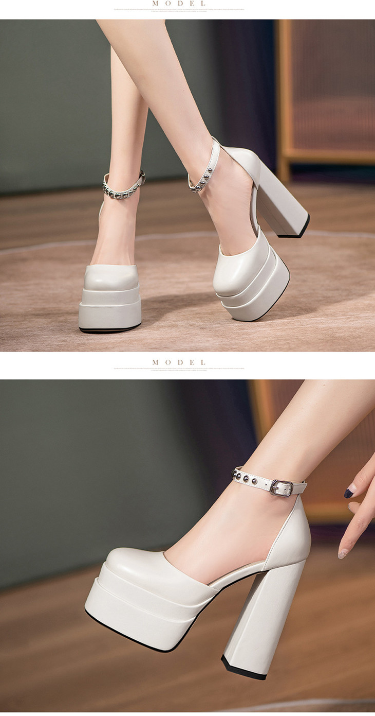 OLD-1831ddd 包头凉鞋女夏季一字带2022春秋新款圆头粗跟单鞋白色防水台高跟鞋