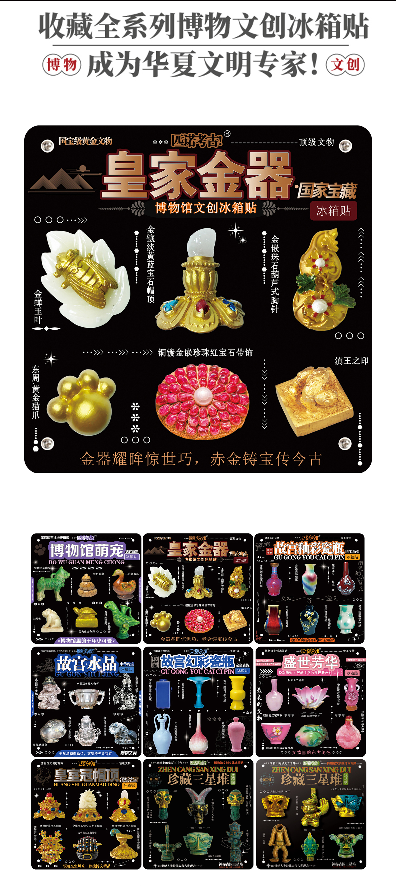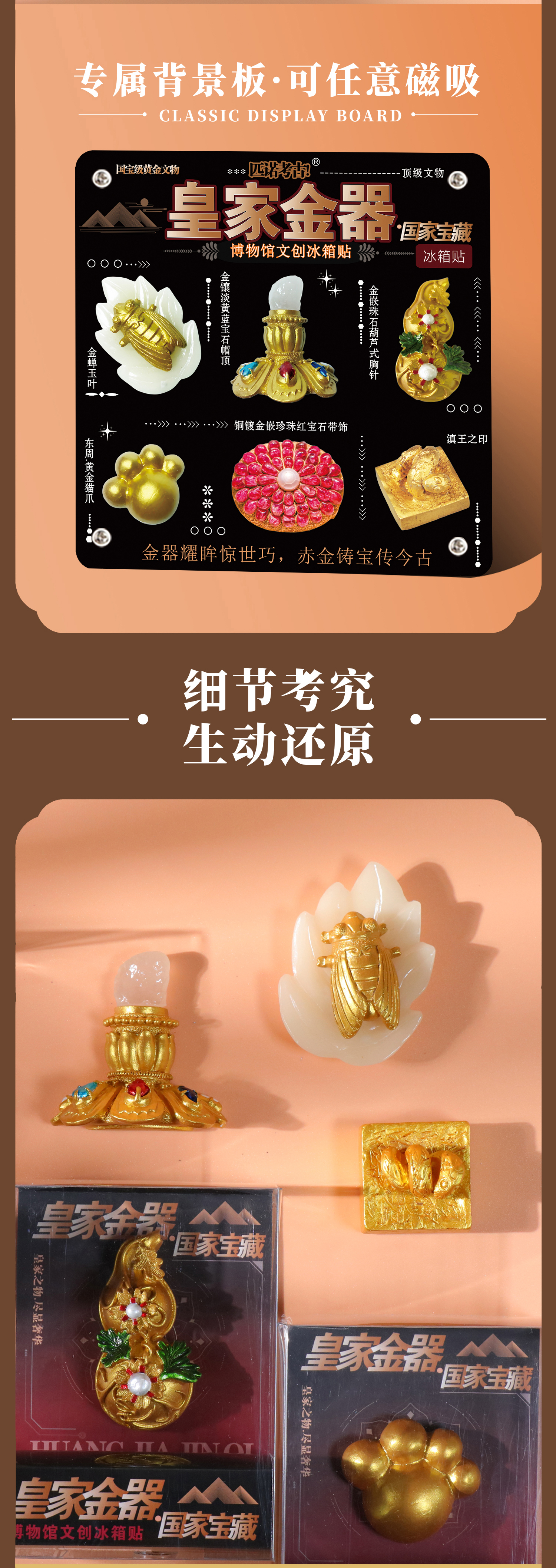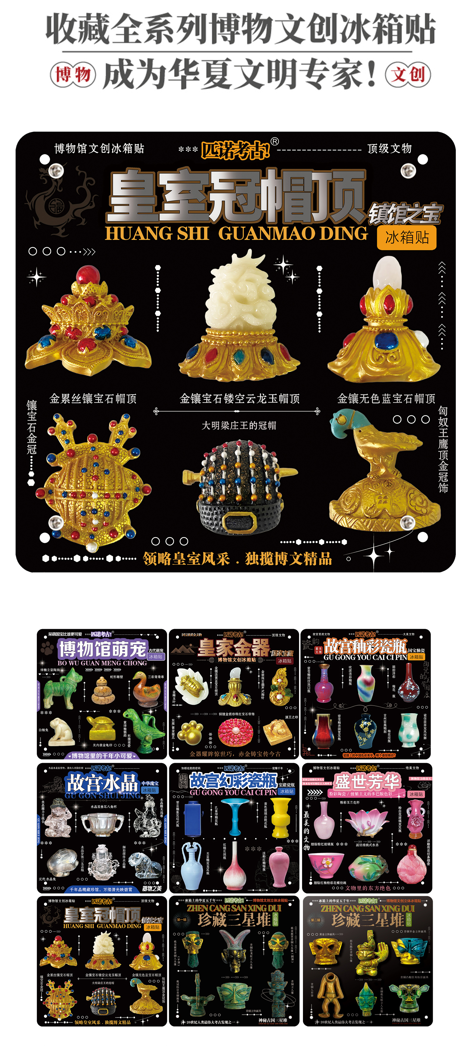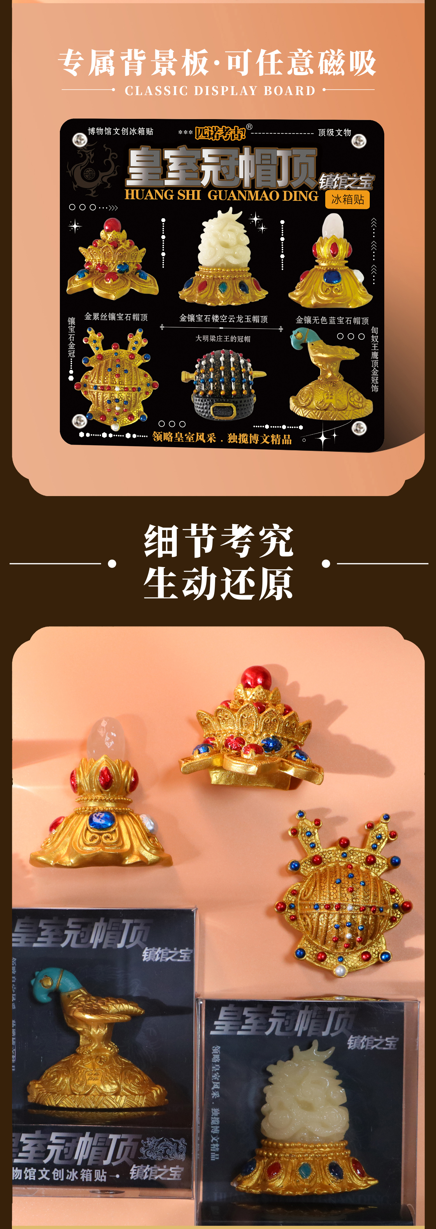 【皇家金器+皇室冠帽顶】国宝文物冰箱贴 可搭配背景板