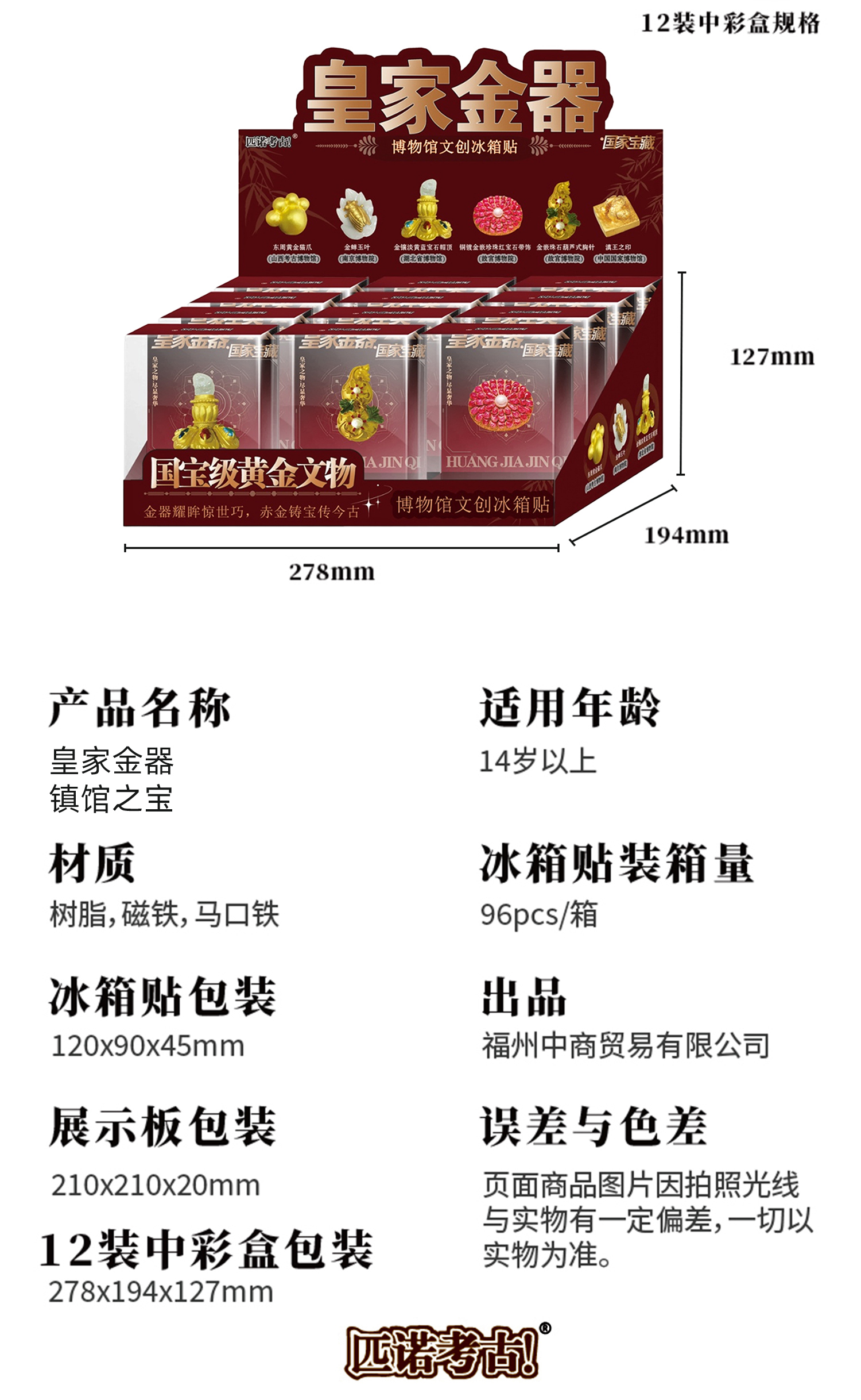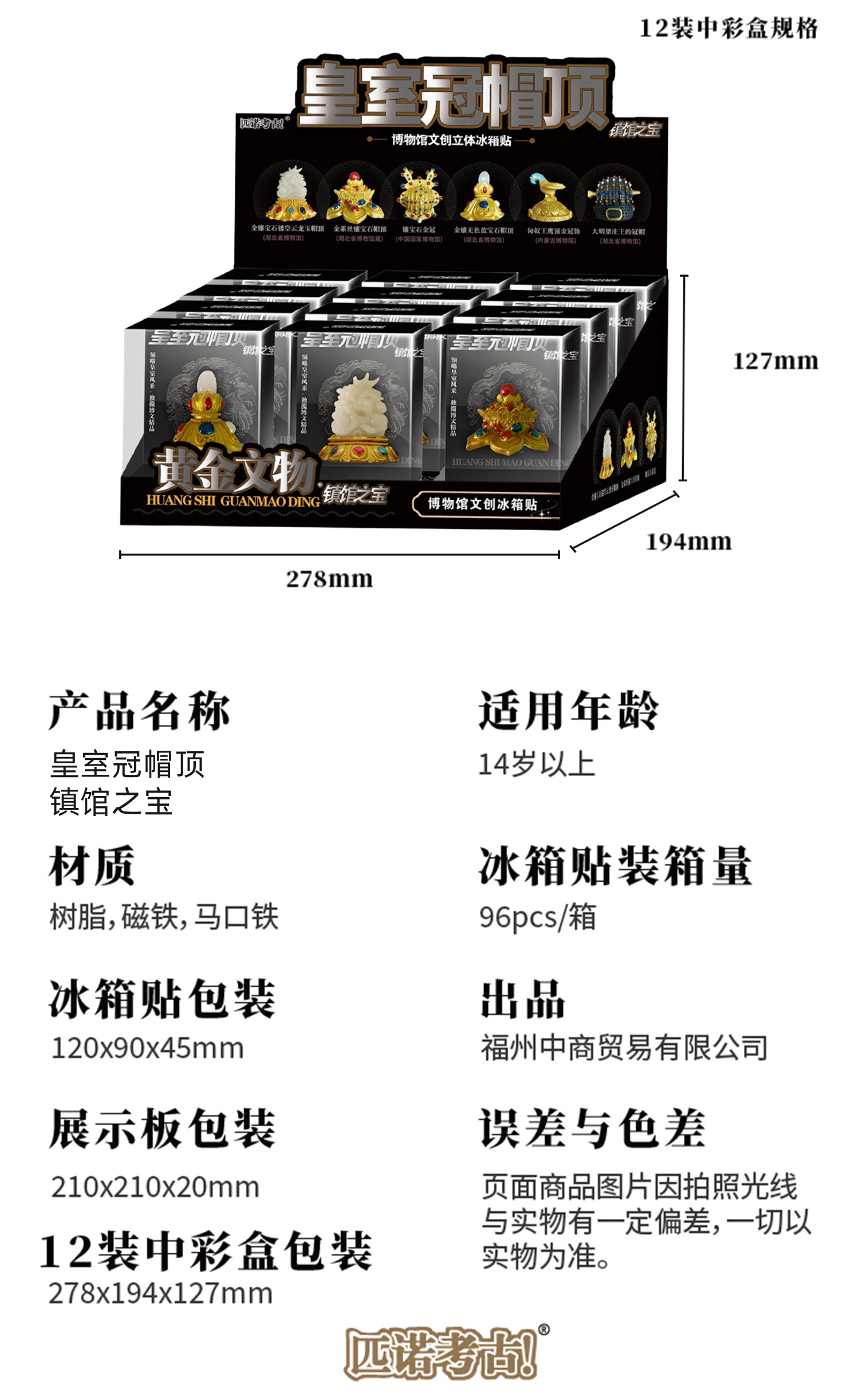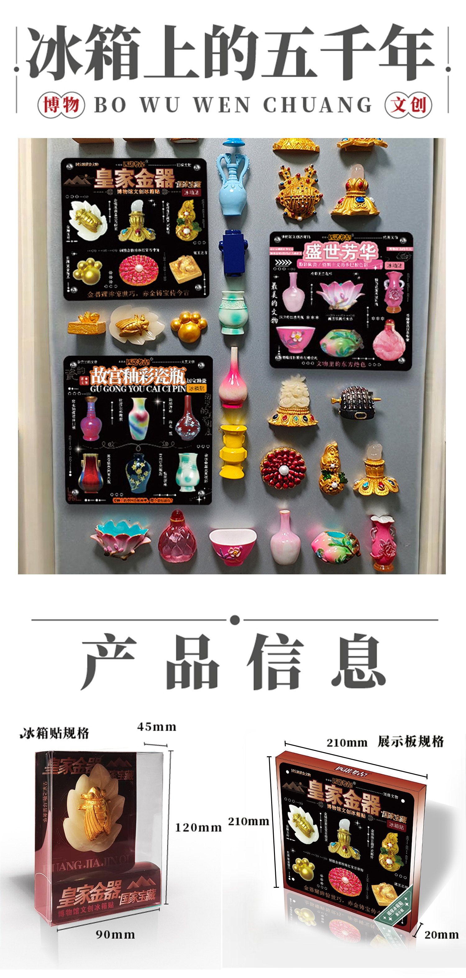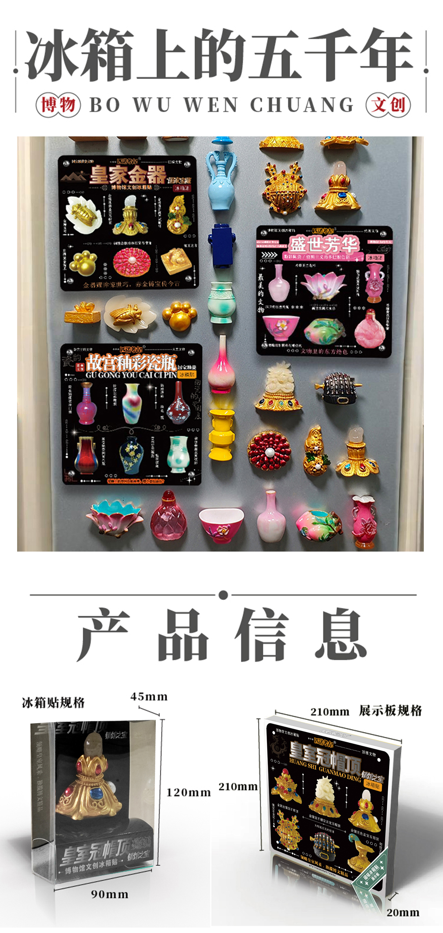 【皇家金器+皇室冠帽顶】国宝文物冰箱贴 可搭配背景板